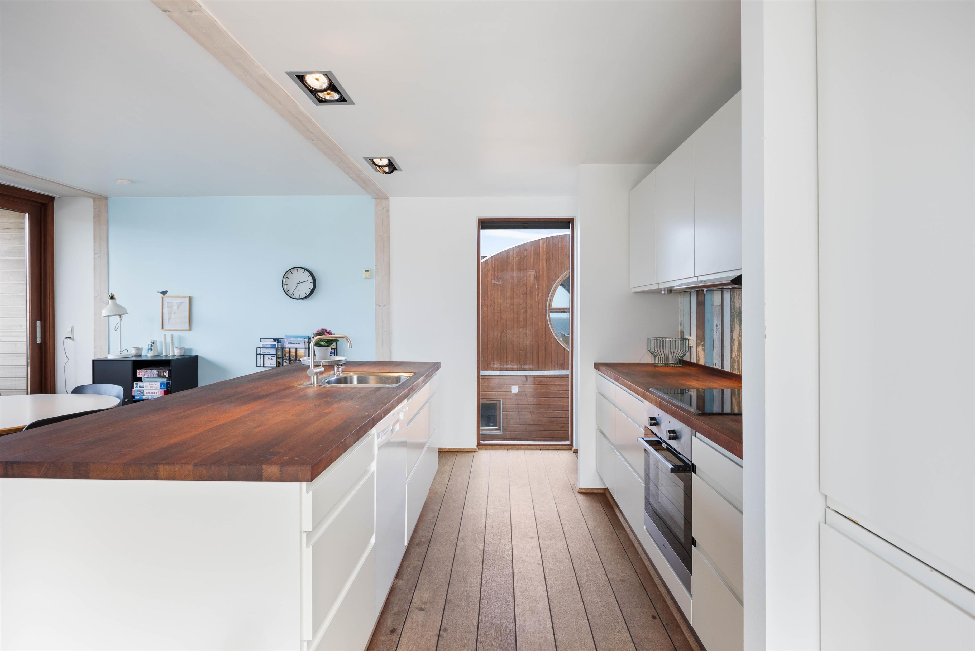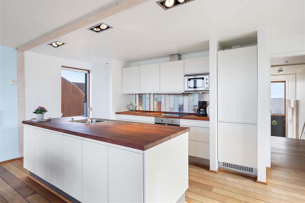There's also a beautiful kitchen where you can prepare delicious meals when you're not barbecuing or visiting one of the excellent restaurants in Hvide Sande. The houseboat features an energy-efficient heat pump system for heating.