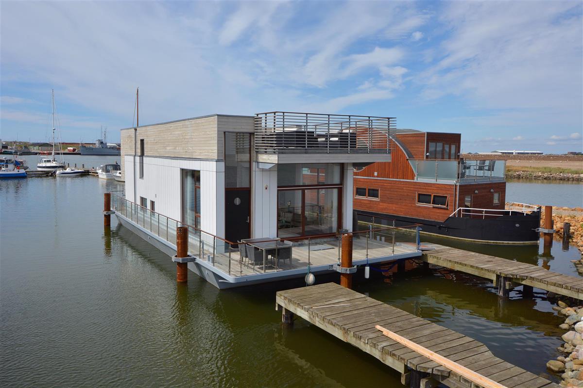 Stylish and modern houseboat offering unique opportunities for a relaxing waterside holiday. Fantastic location in Mamrelund, with beautiful views across the fjord, harbour and central Hvide Sande, whilst being close to the beach, shops and restaurants.