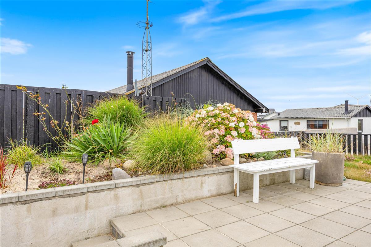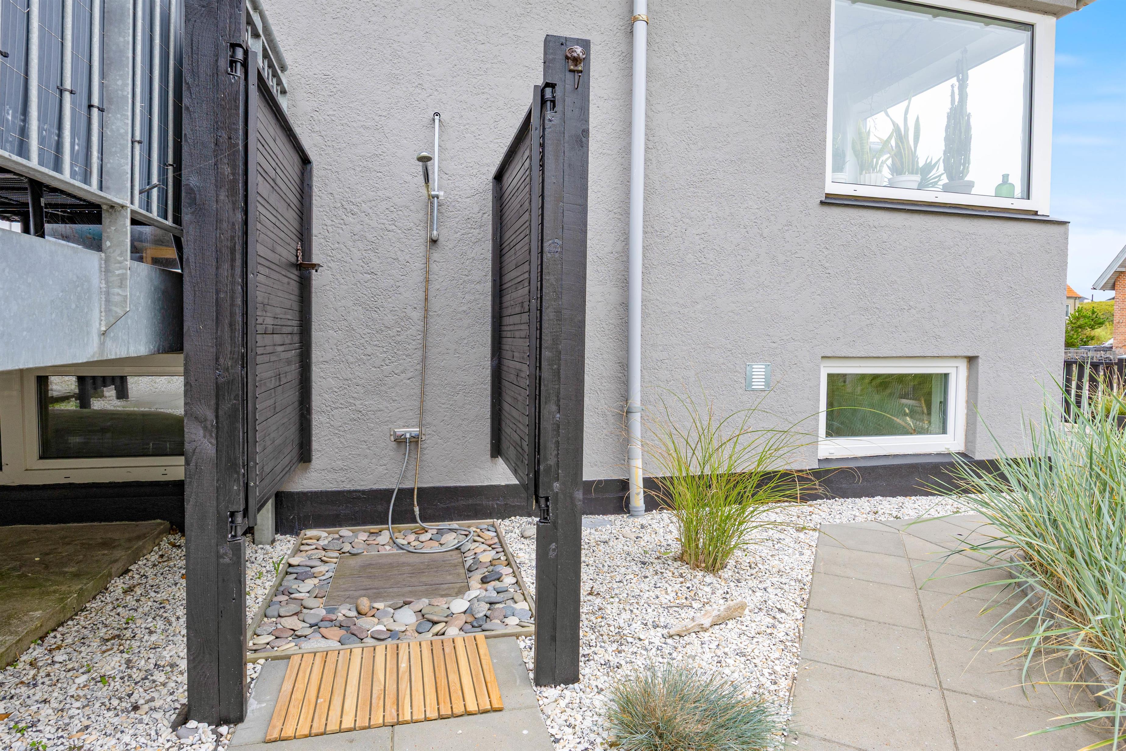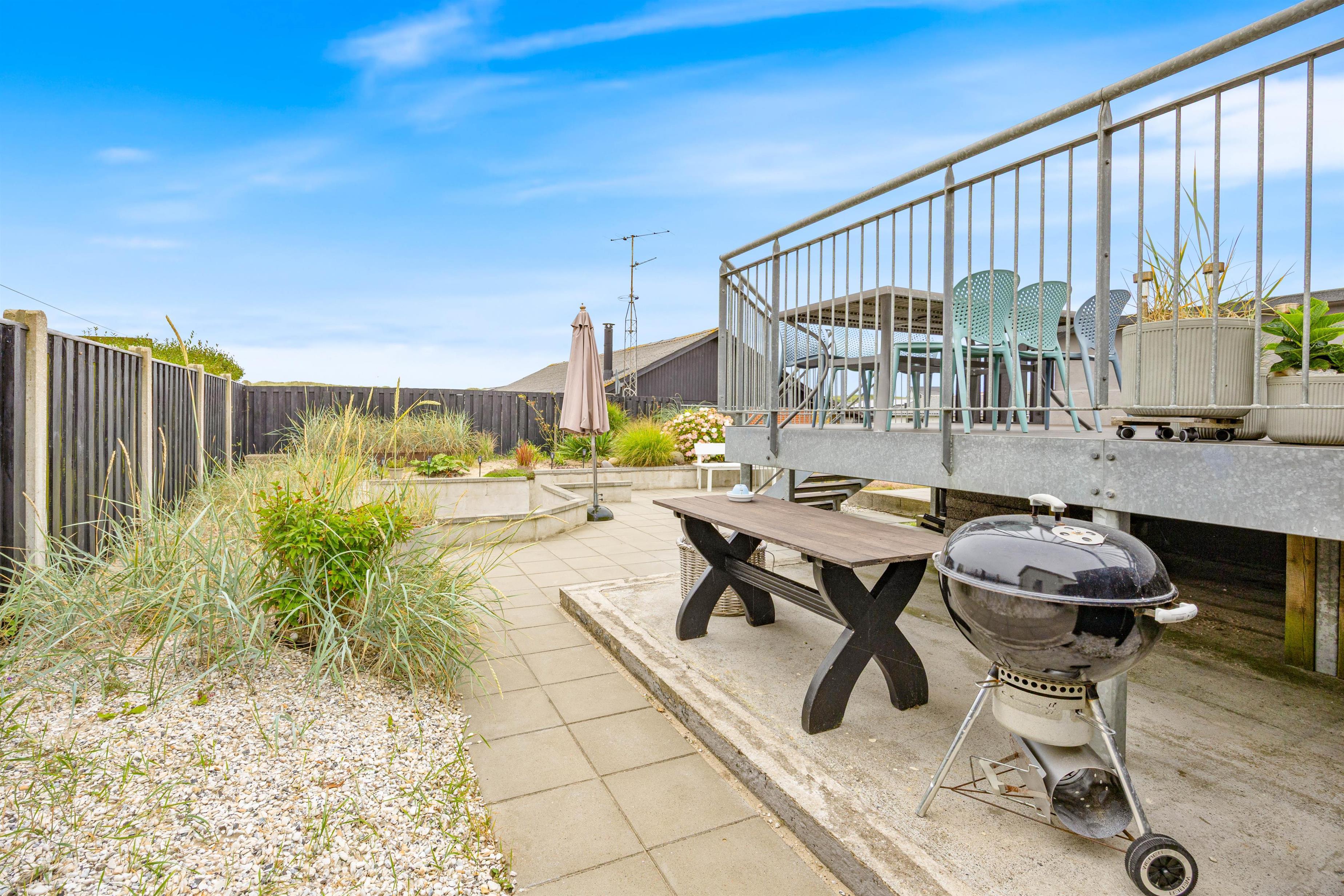 A special feature of this modern holiday home is the sheltered terrace, furnished with comfortable garden furniture. Here you can enjoy meals, soak up the sun and truly relax. The gas barbecue is perfect for enjoyable outdoor dining, and when temperatures drop, the gas patio heater creates a cosy atmosphere in true Danish 'hygge' style.