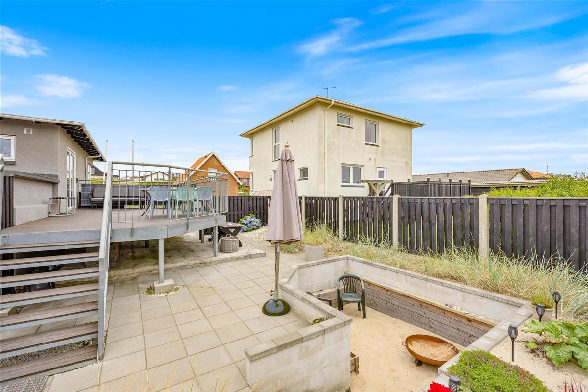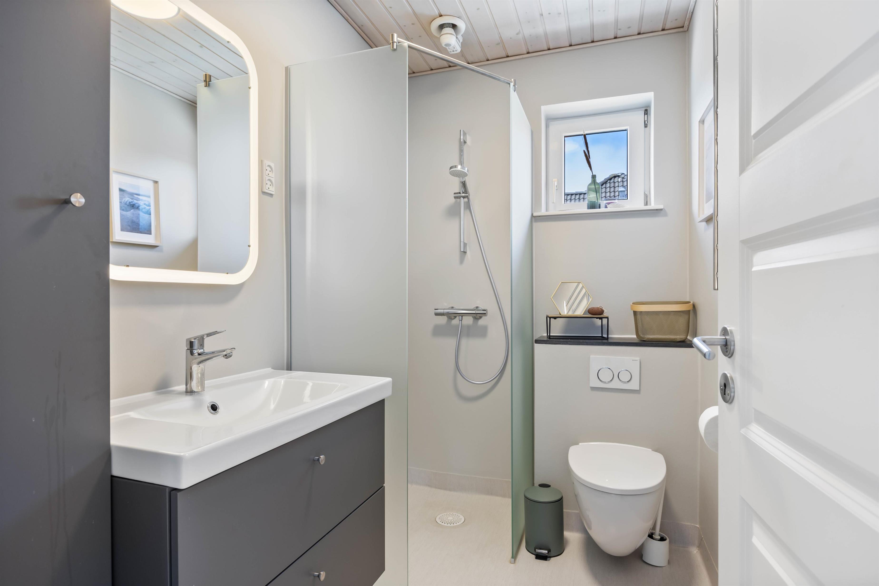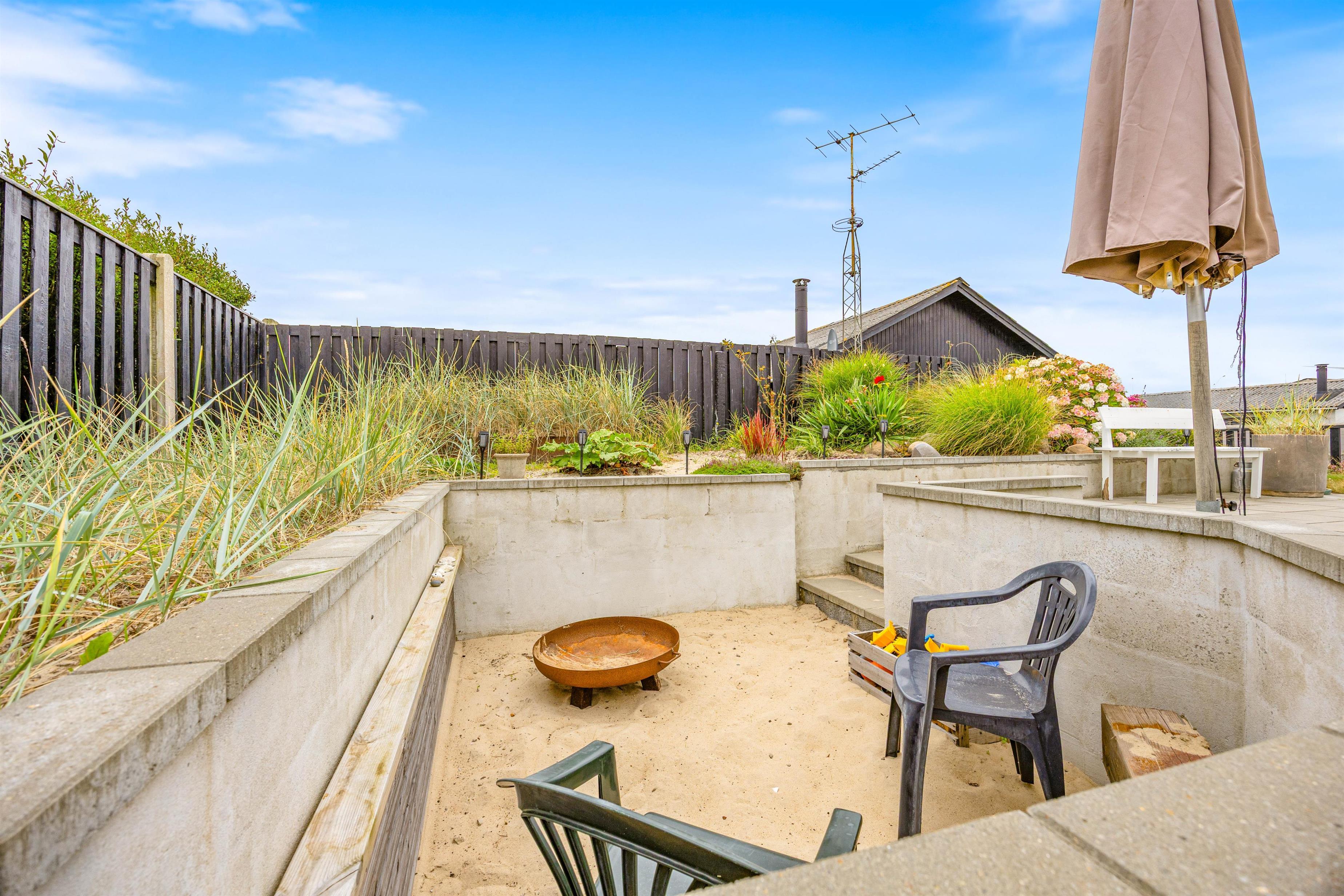 A special feature of this modern holiday home is the sheltered terrace, furnished with comfortable garden furniture. Here you can enjoy meals, soak up the sun and truly relax. The gas barbecue is perfect for enjoyable outdoor dining, and when temperatures drop, the gas patio heater creates a cosy atmosphere in true Danish 'hygge' style.