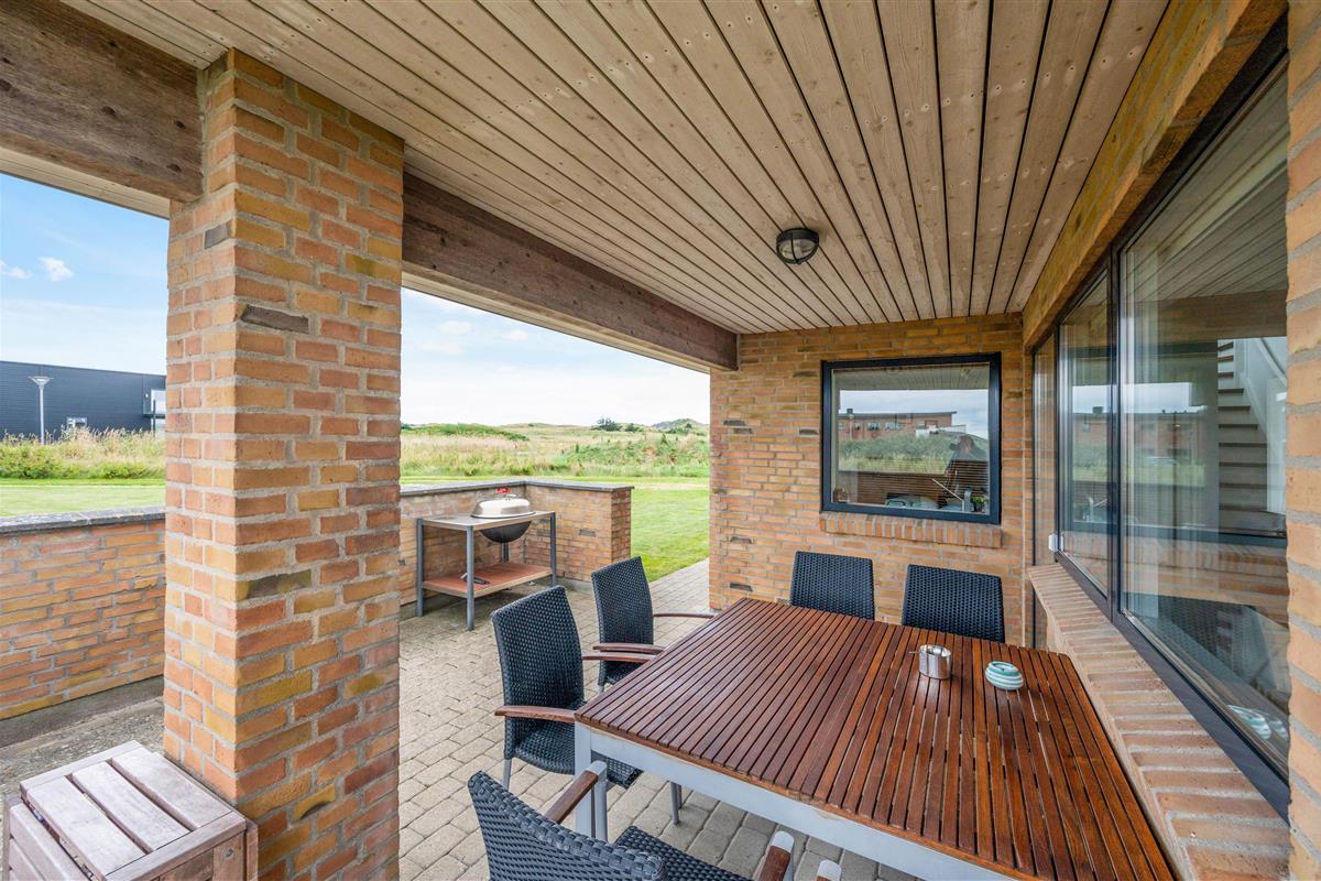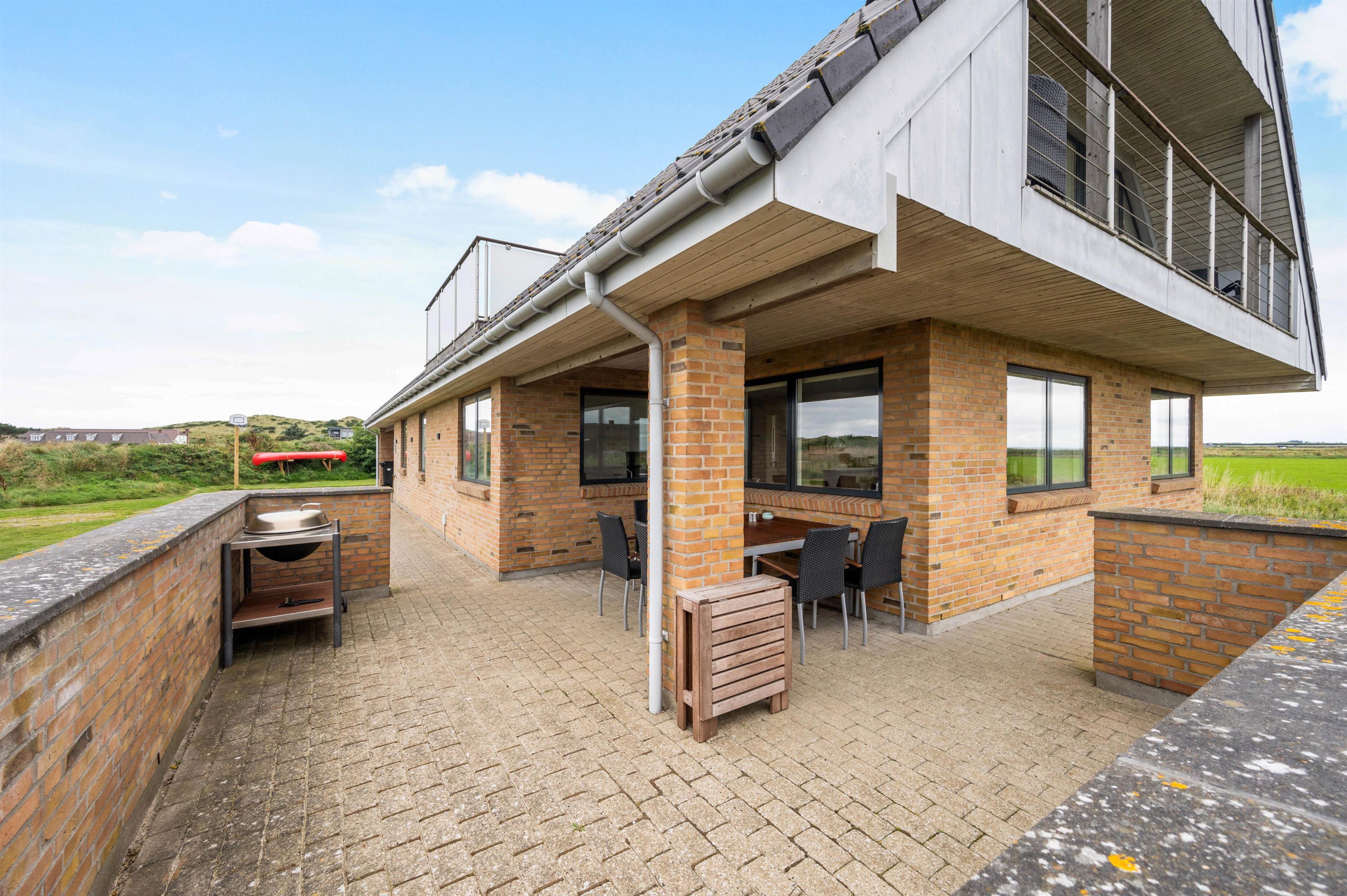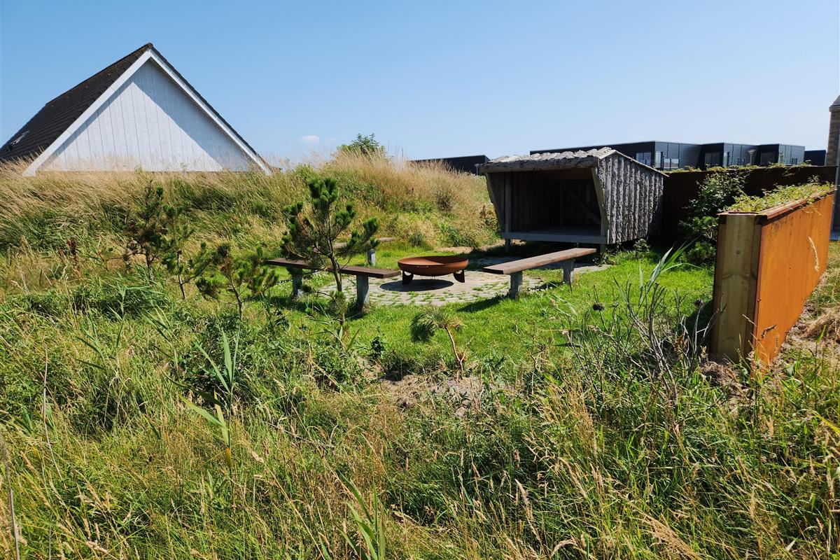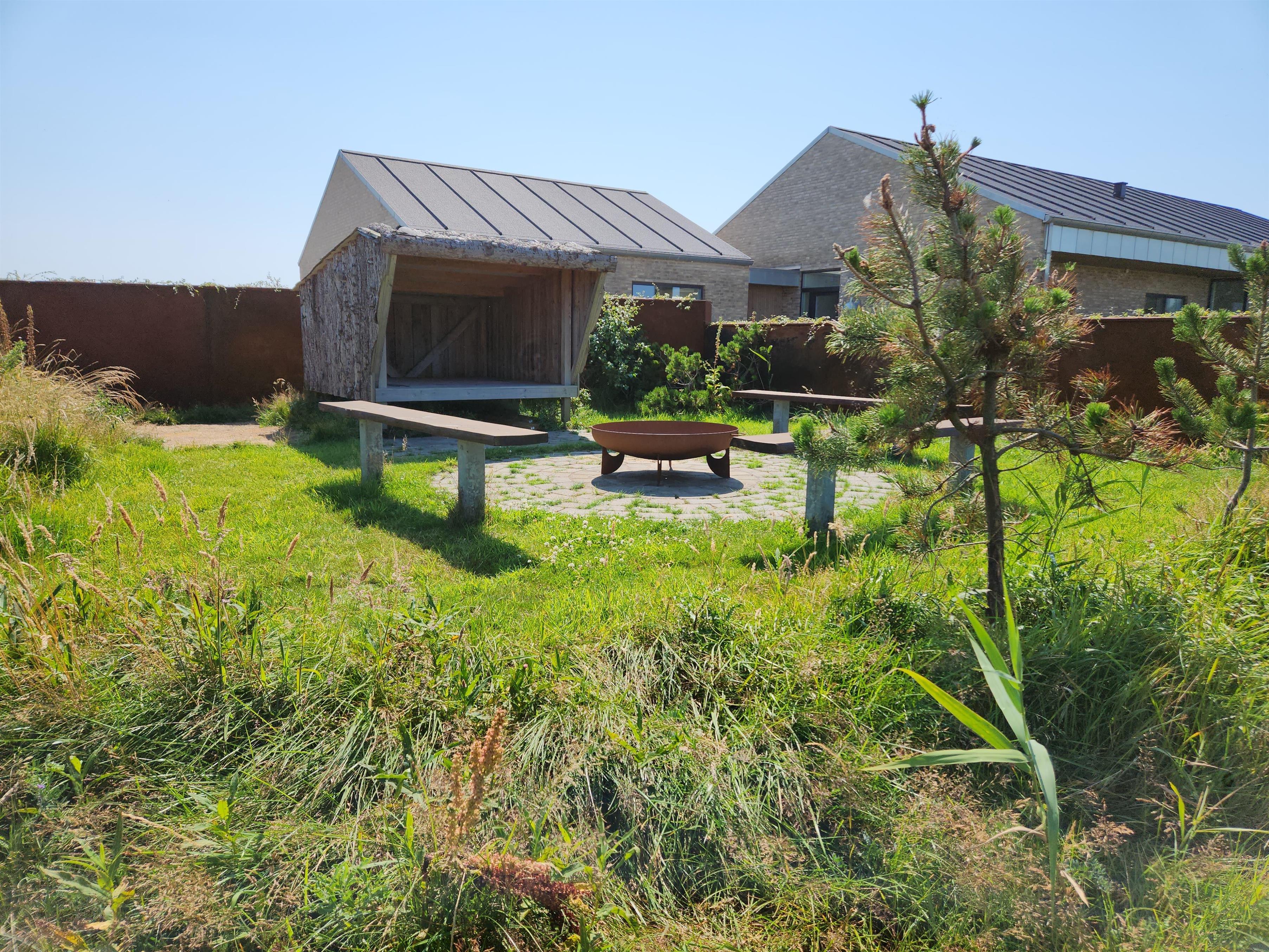 The holiday home is surrounded by beautiful maintained lawns, perfect for ball games and playing. On the eastern side of the house, there's a fantastic partially covered terrace furnished with high-quality, comfortable garden furniture offering magnificent views. Evenings can be spent around the holiday home's fire pit, and for the adventurous, there's a wind shelter.