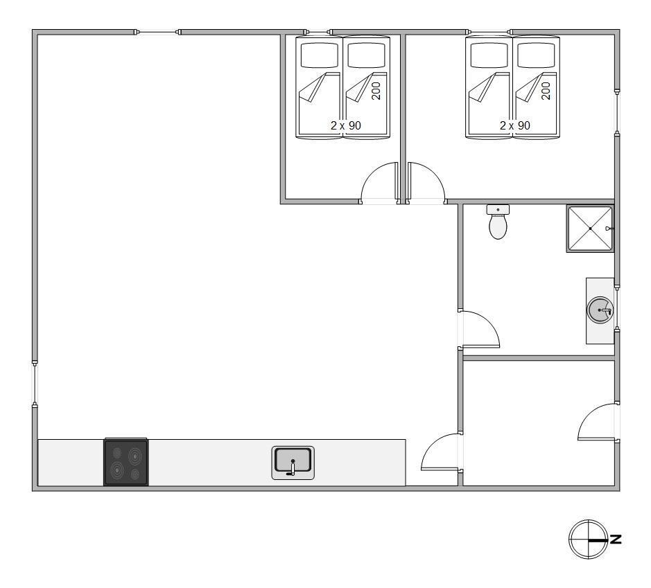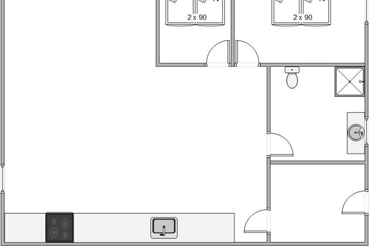 The holiday apartment has two bedrooms, each furnished with two 90 x 200 cm beds, ensuring a comfortable and relaxing night's sleep.