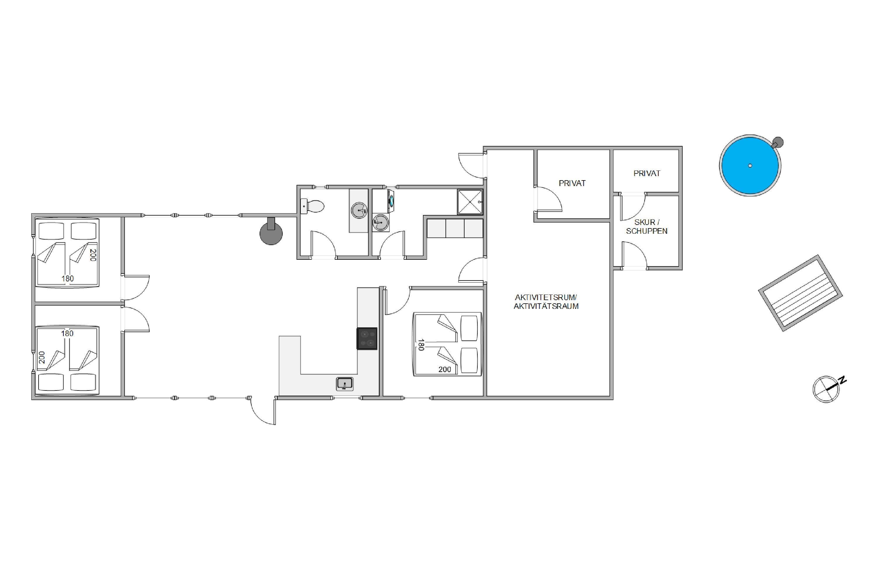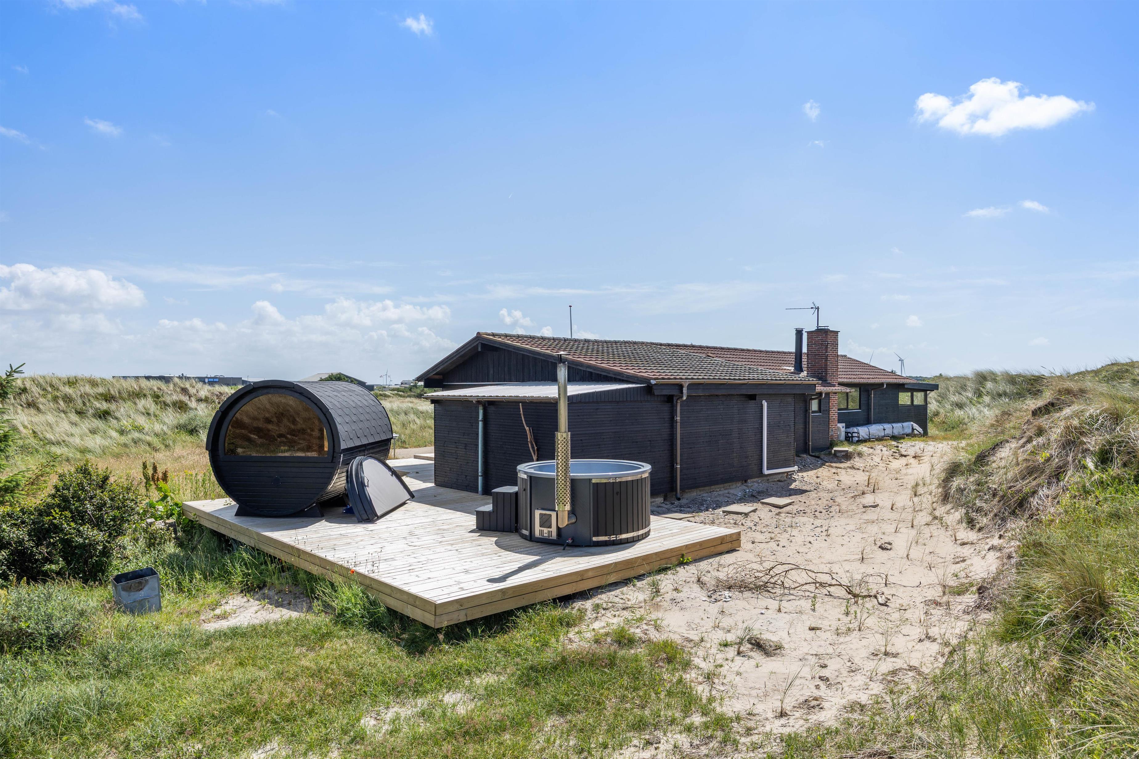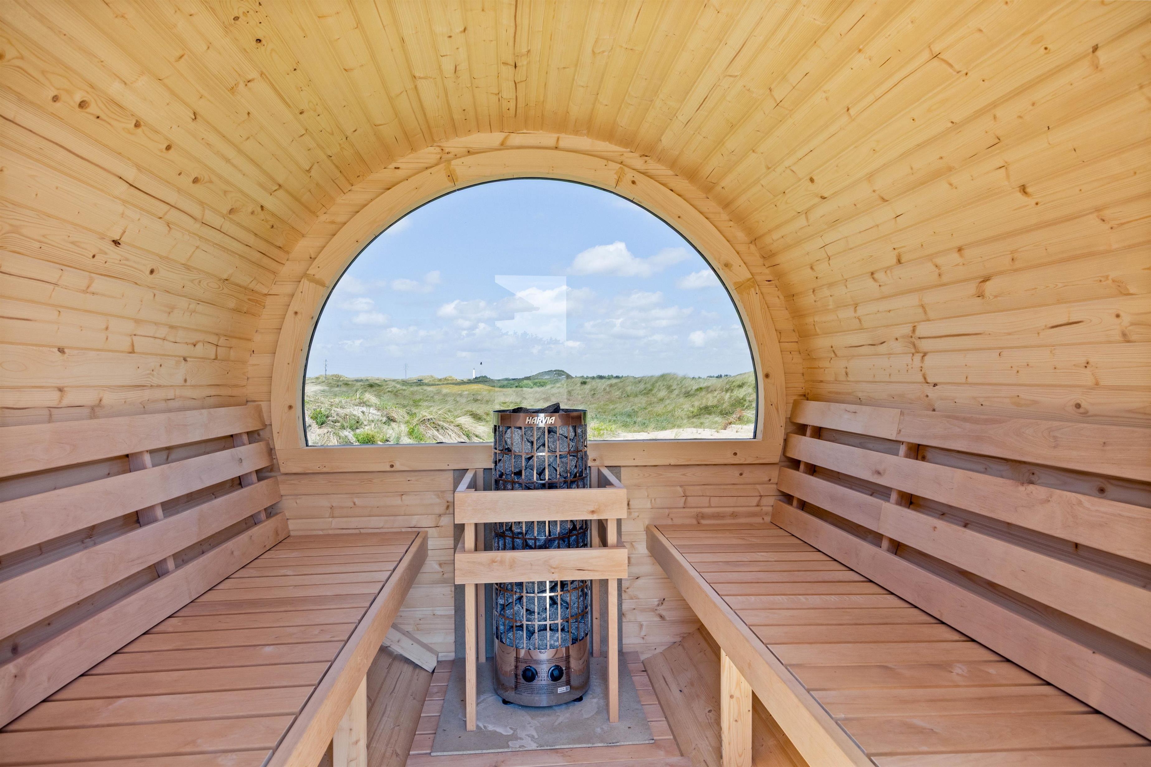 The holiday home sits on a 5,280-square-metre natural plot, offering plenty of space and privacy. On the covered terrace, you can dine peacefully or simply enjoy the fresh air – even during light rain. As a special highlight, there's a wood-fired hot tub that seats up to 5 people. The outdoor shower, available from April to November, provides refreshing relief on warm days and helps keep beach sand out of the house.