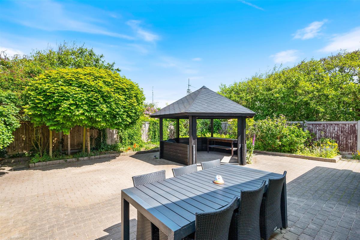 The terrace features a comfortable seating area with garden furniture and sun loungers, perfect for spending quality time together outdoors.