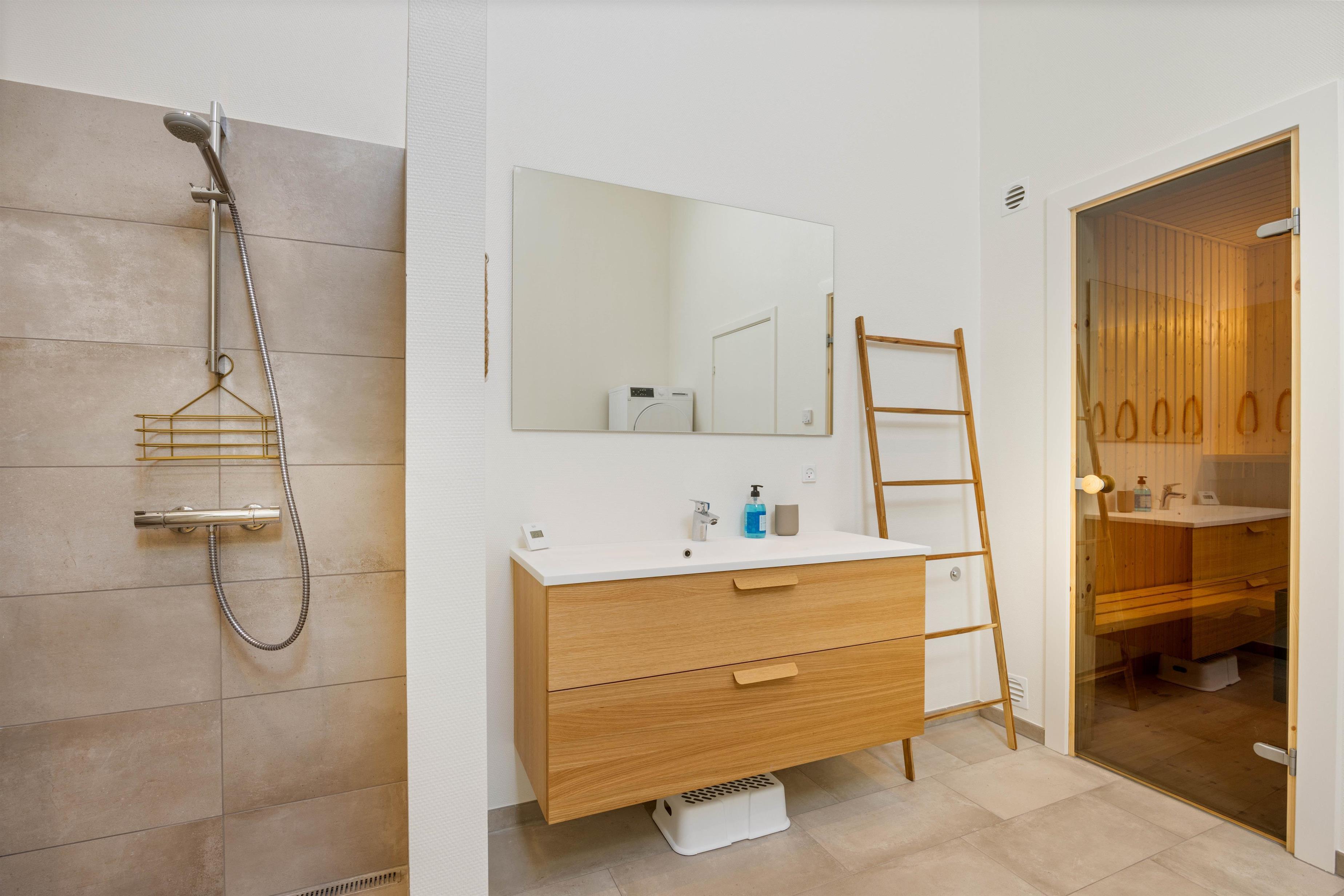 This comfortable holiday apartment is located in the heart of Hvide Sande, just metres from the lock gates to Ringkøbing Fjord. Spanning 141 square metres, it offers plenty of space for up to 6 people to relax. You can also bring along two dogs to enjoy the holiday with you. This modern 5-star apartment truly earns its rating, featuring special highlights including a private sauna and premium whirlpool.