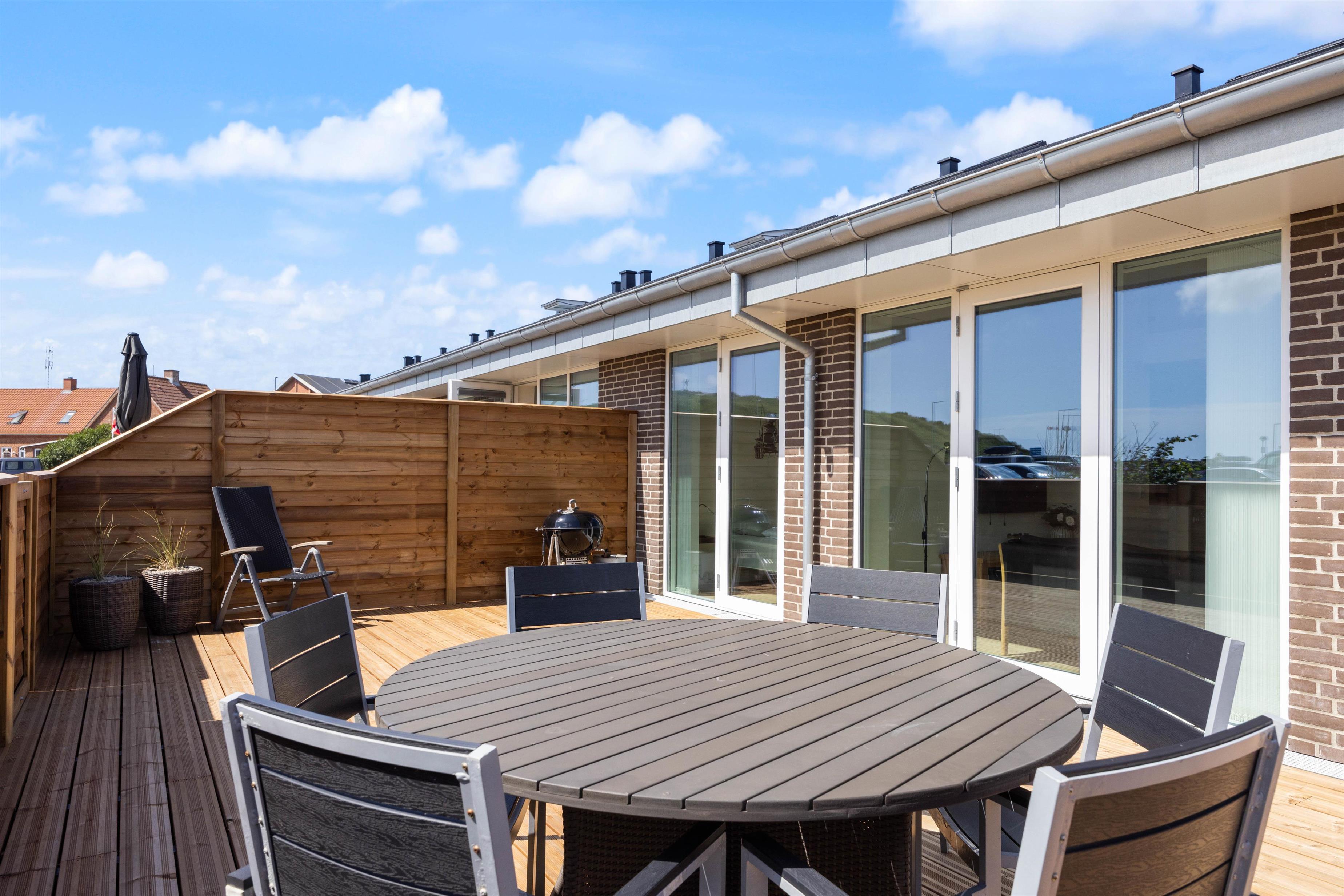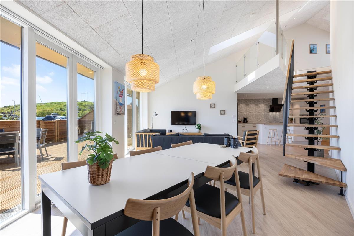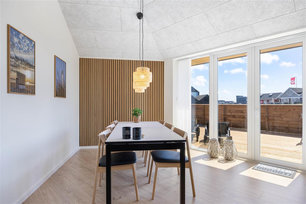 The enclosed, sheltered south-facing terrace offers views over the fjord and features comfortable garden furniture perfect for relaxation. There's also a barbecue for sociable outdoor dining. From here, you can observe the goings-on in Hvide Sande or simply enjoy the sunshine and fresh air.