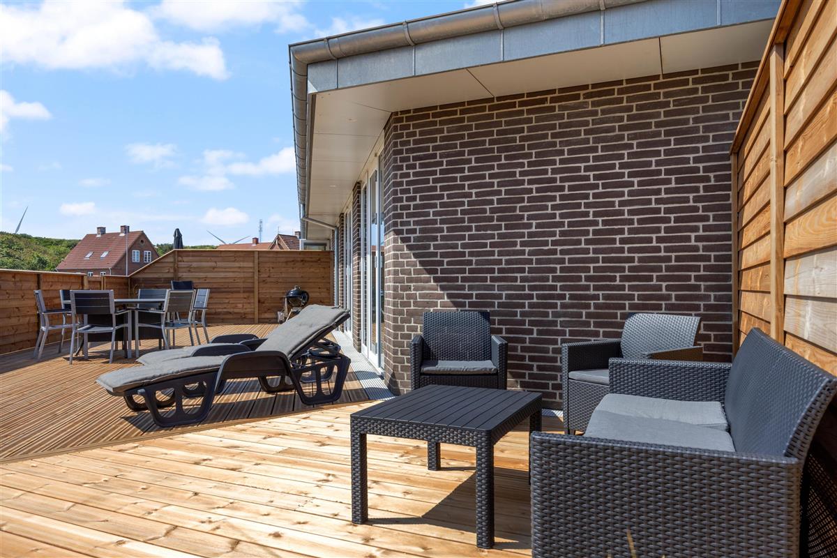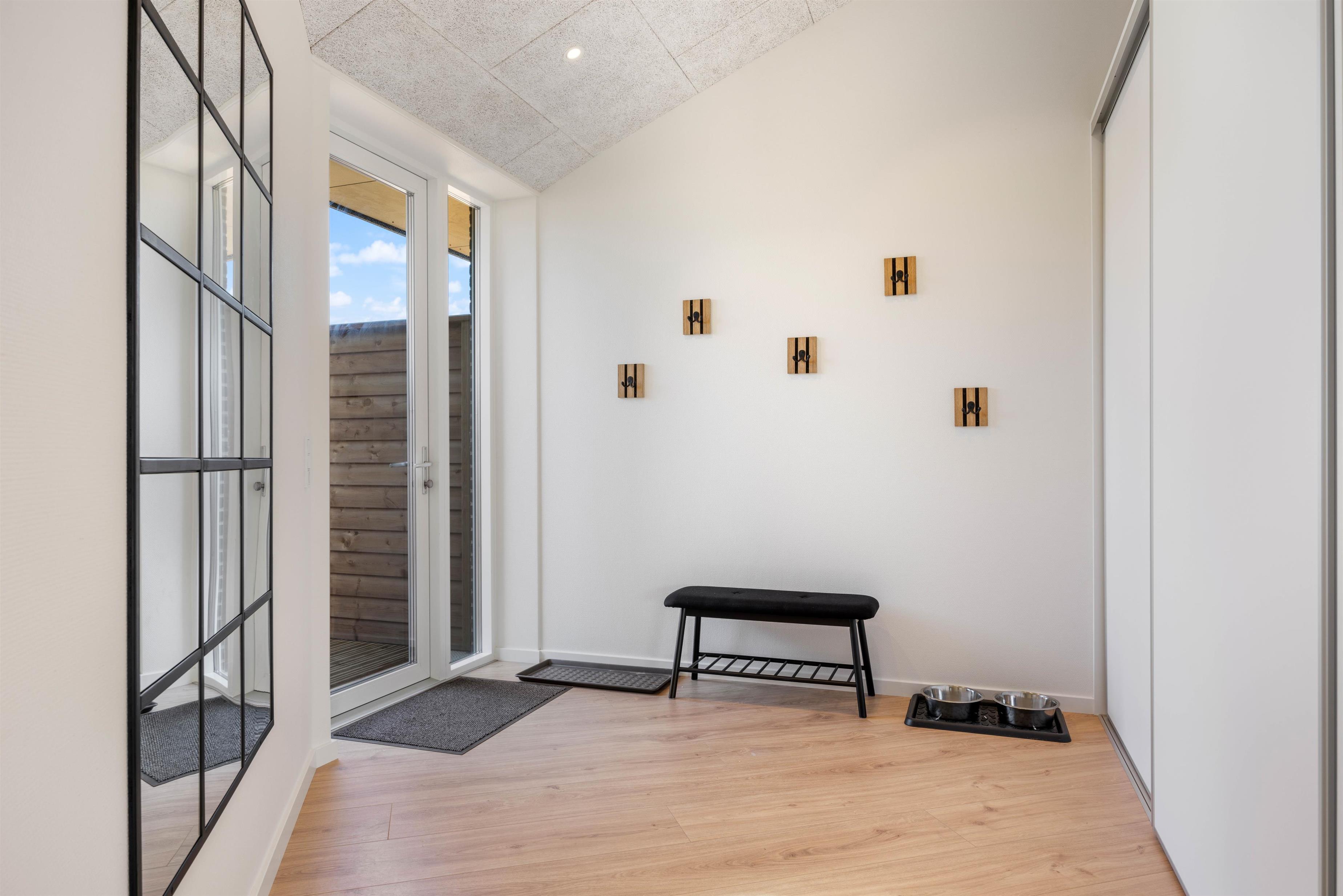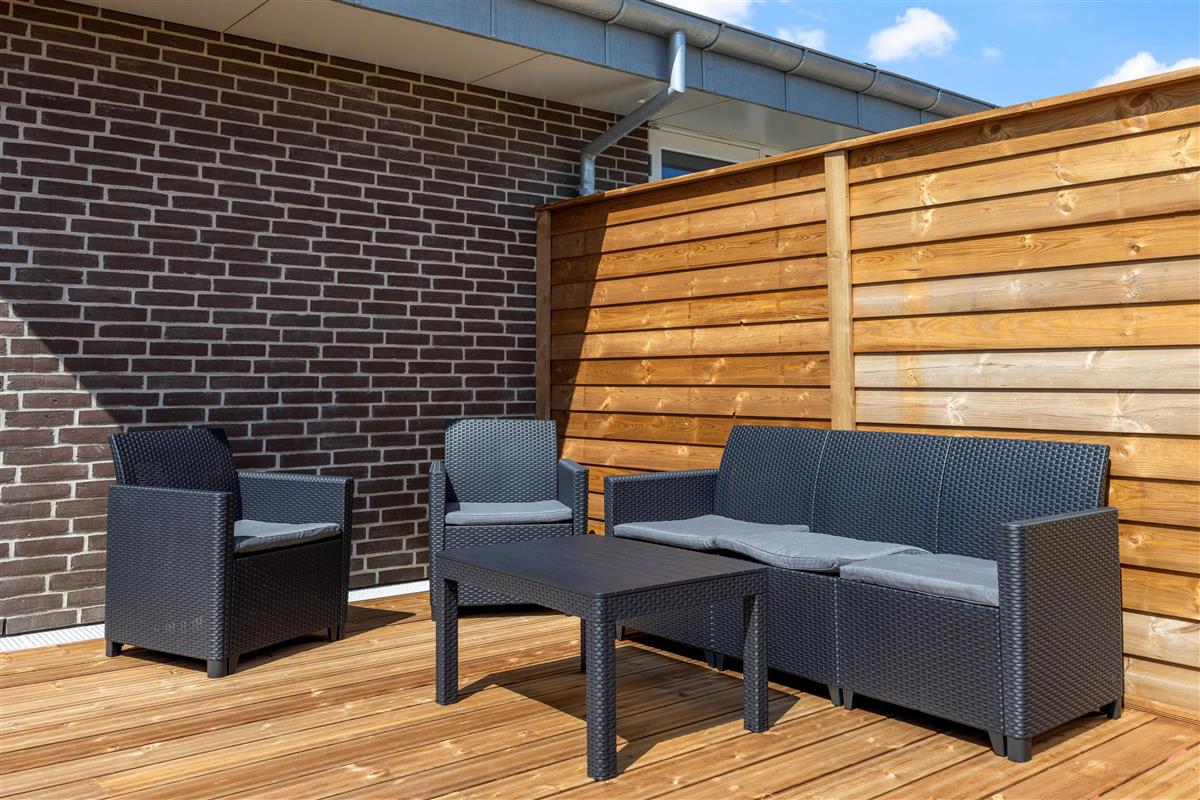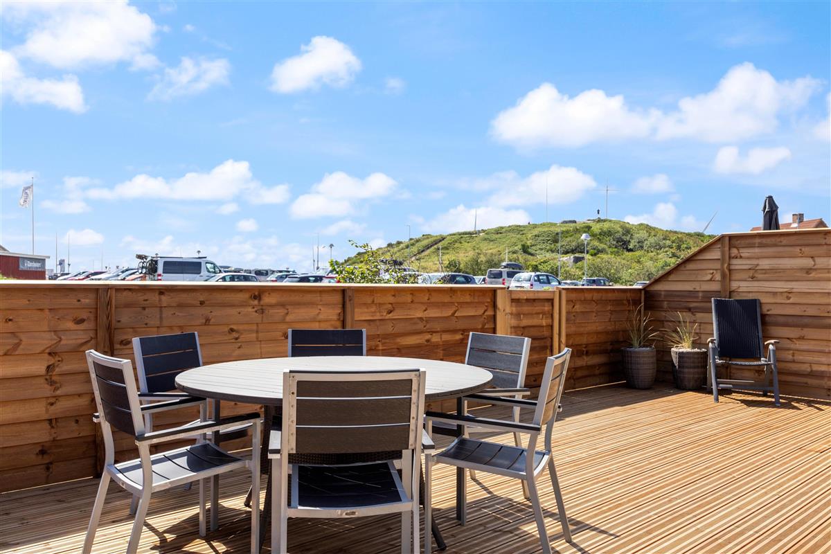 The enclosed, sheltered south-facing terrace offers views over the fjord and features comfortable garden furniture perfect for relaxation. There's also a barbecue for sociable outdoor dining. From here, you can observe the goings-on in Hvide Sande or simply enjoy the sunshine and fresh air.