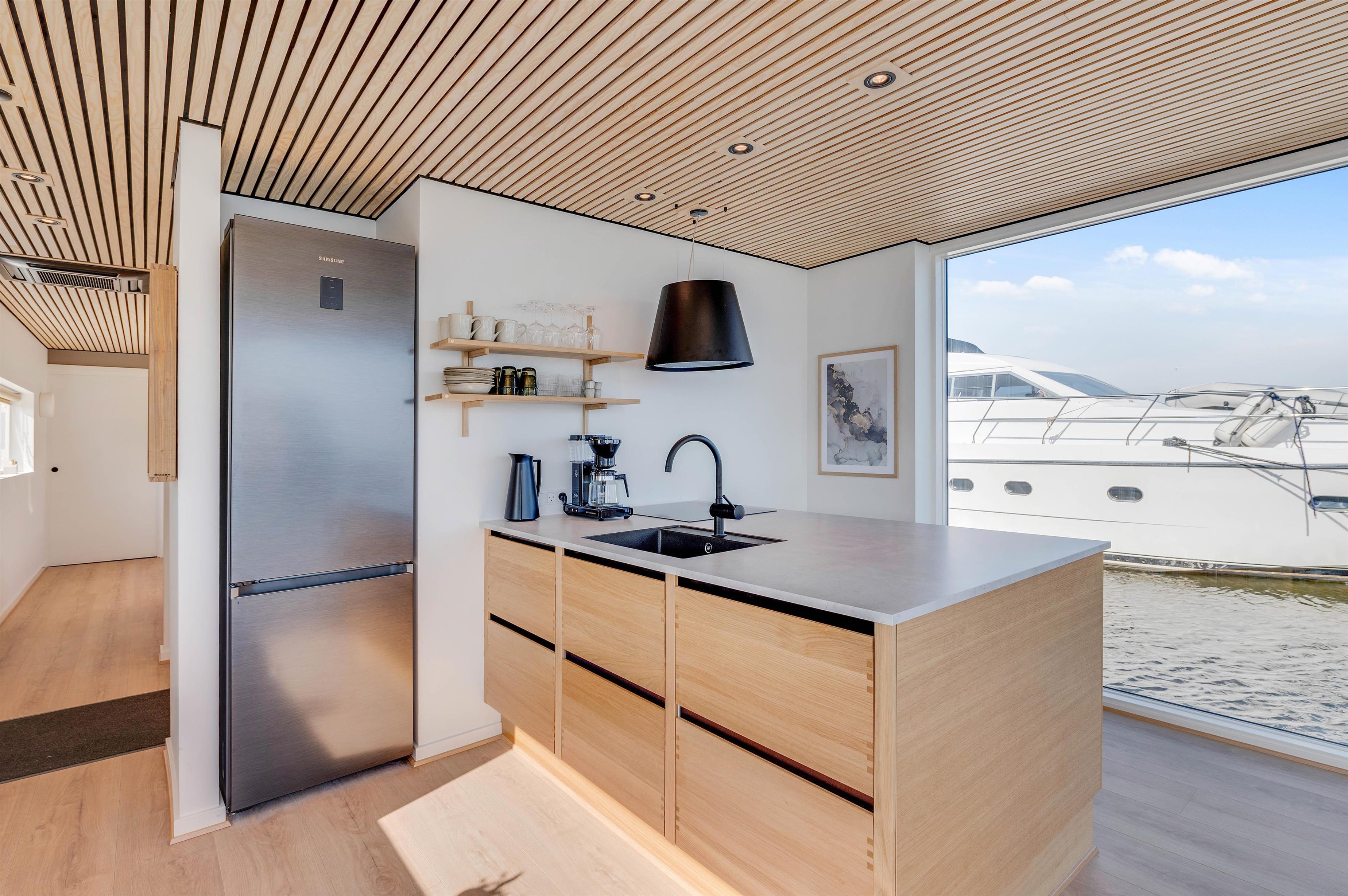 Completed in 2022, your houseboat offers practical and modern amenities. A special highlight is the large windows providing beautiful views of the surroundings whilst allowing natural light to flood in. Enjoy your morning coffee watching seals swim by and take in the fjord's tranquil atmosphere.