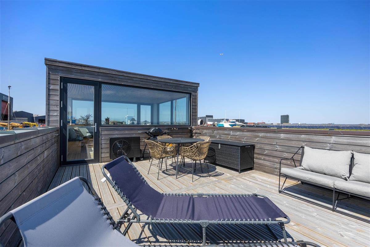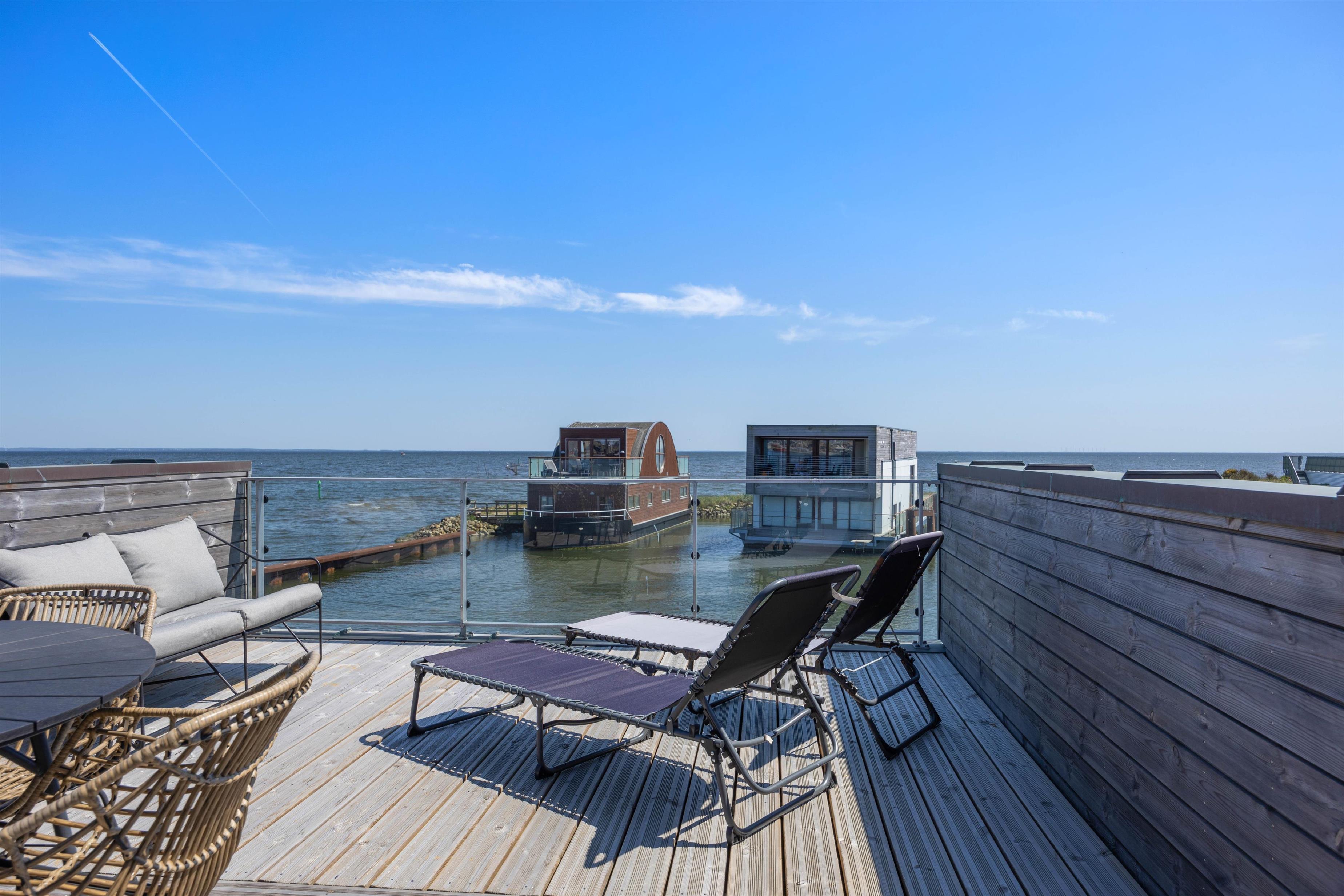 On the roof of your holiday home, you'll find a beautiful outdoor area offering panoramic views across Ringkøbing Fjord and Hvide Sande harbour. Comfortable garden furniture allows you to relax and enjoy the idyllic setting and fresh air of the Danish west coast.