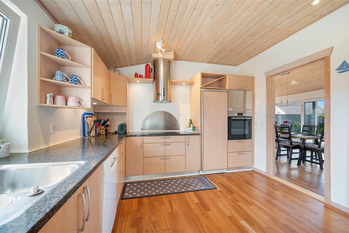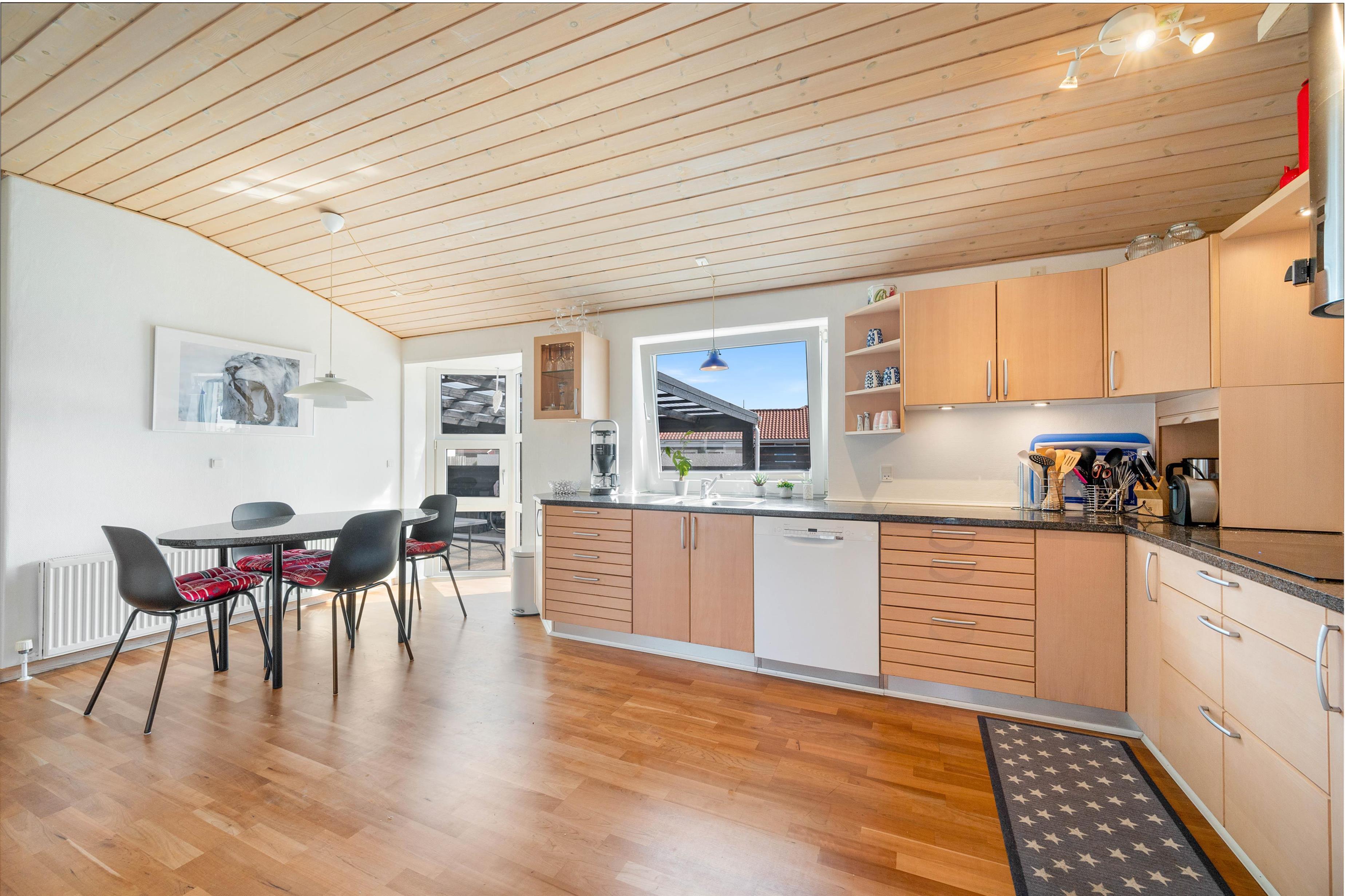 Situated at Stormgade 55 in Hvide Sande, this attractive 155-square-metre holiday home for 8 people was renovated in 2020. The holiday home features a well-equipped kitchen with plenty of storage and worktop space.
