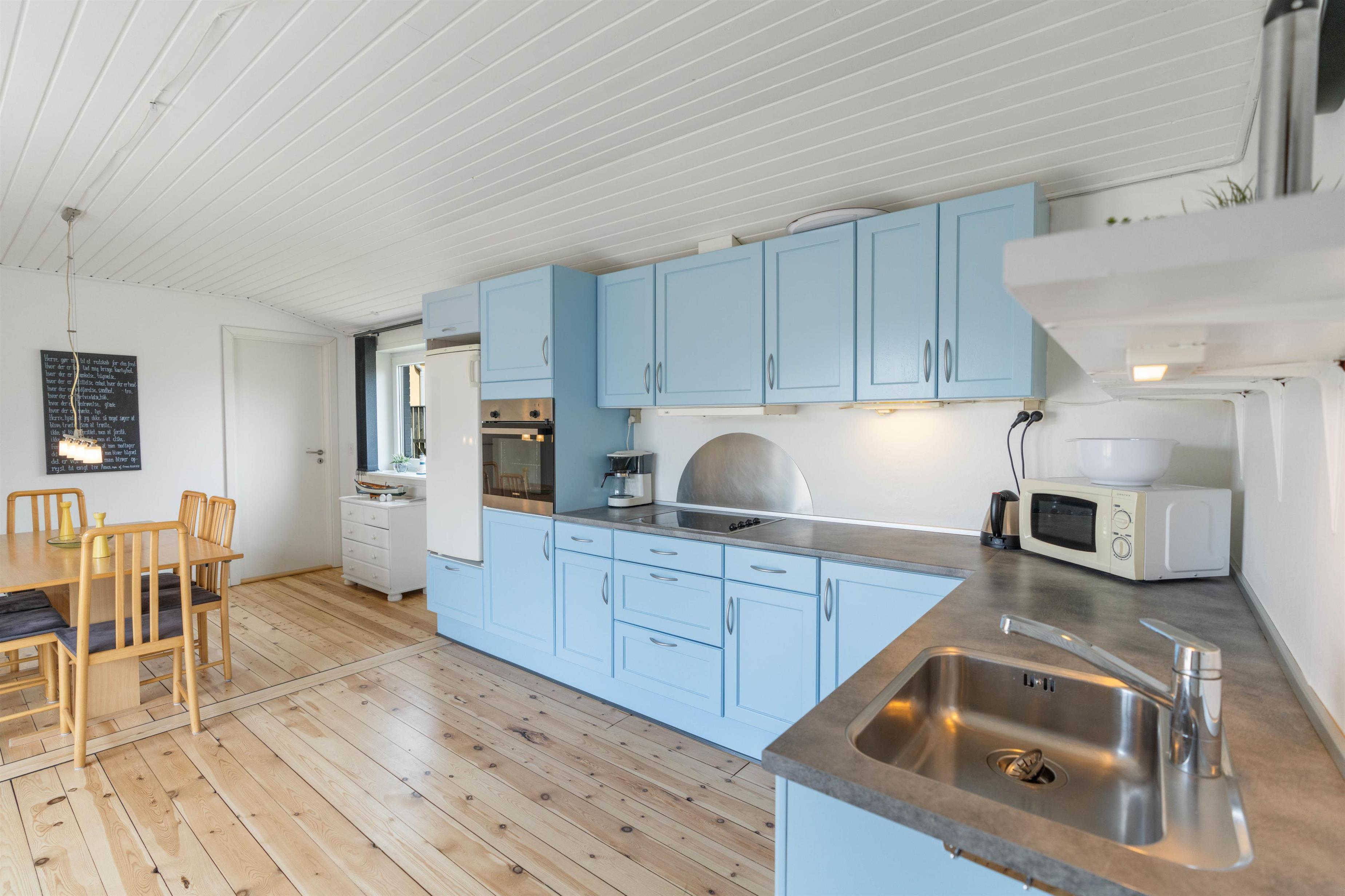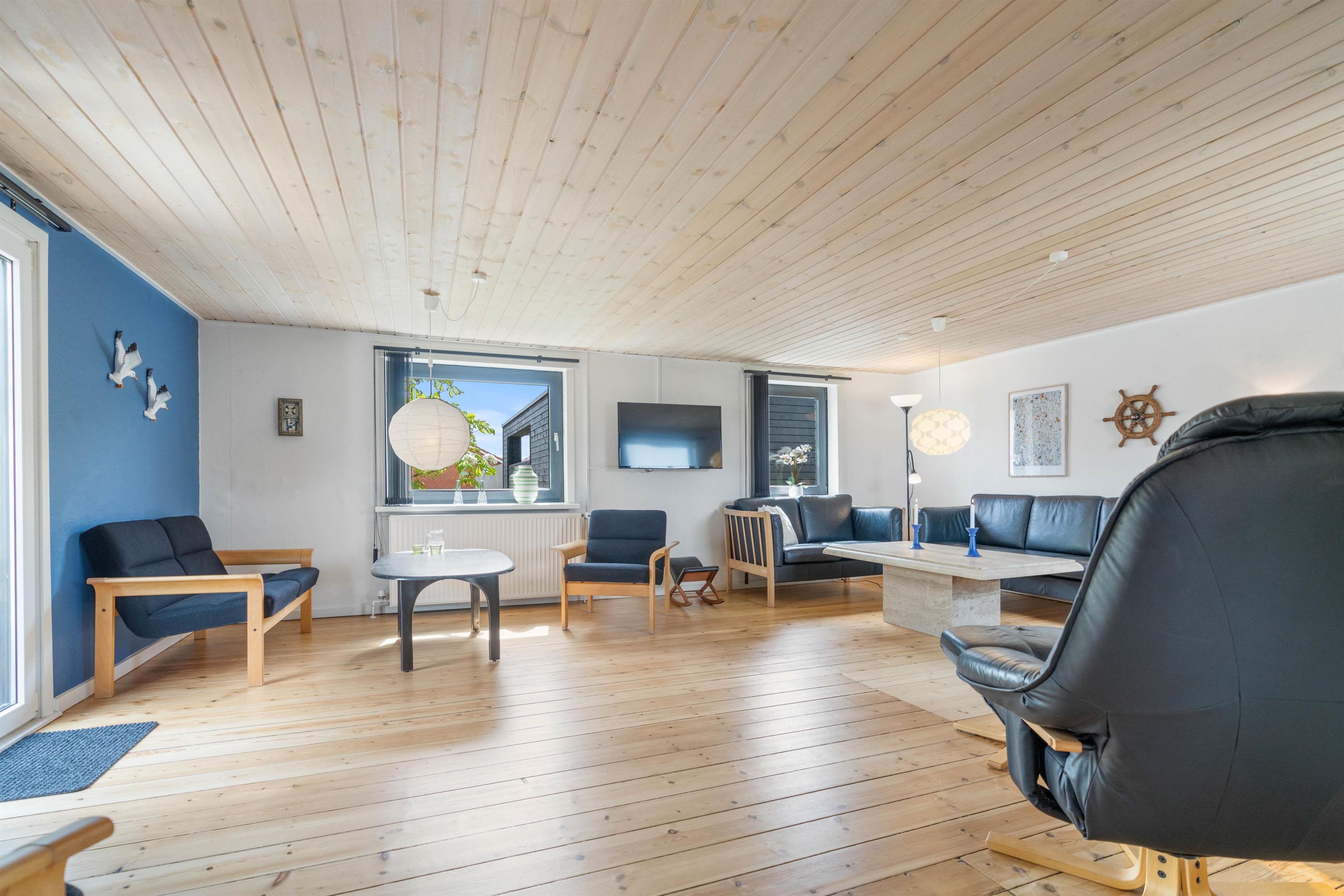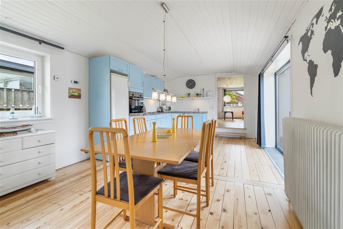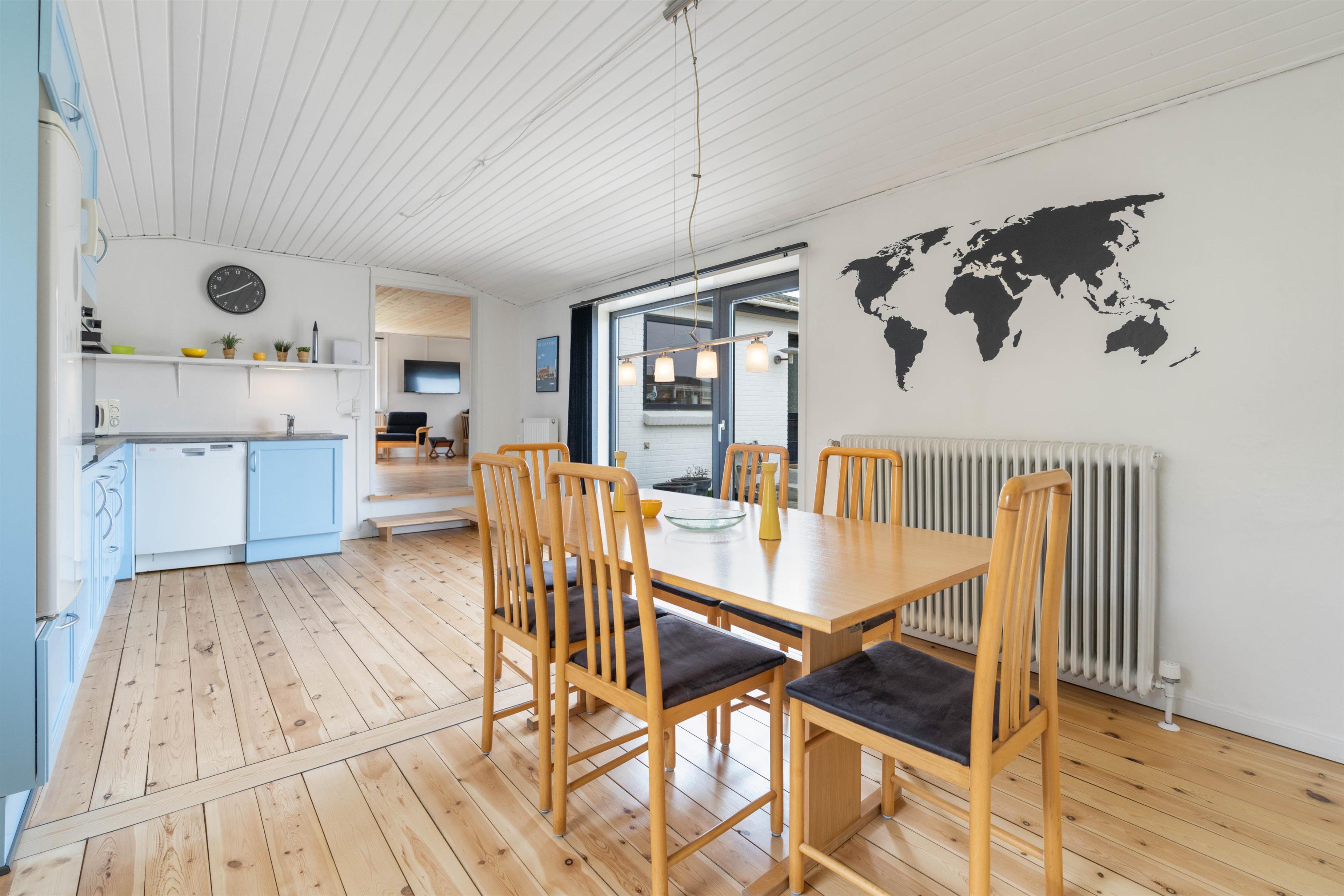 The holiday home at Grænsevej 7 is an excellent choice for those who want everything within walking distance. The furnishings are practical, and while the ceilings are low, the sleeping arrangements are well-distributed across three comfortable bedrooms; two with double beds and one with bunk beds that children are sure to love.