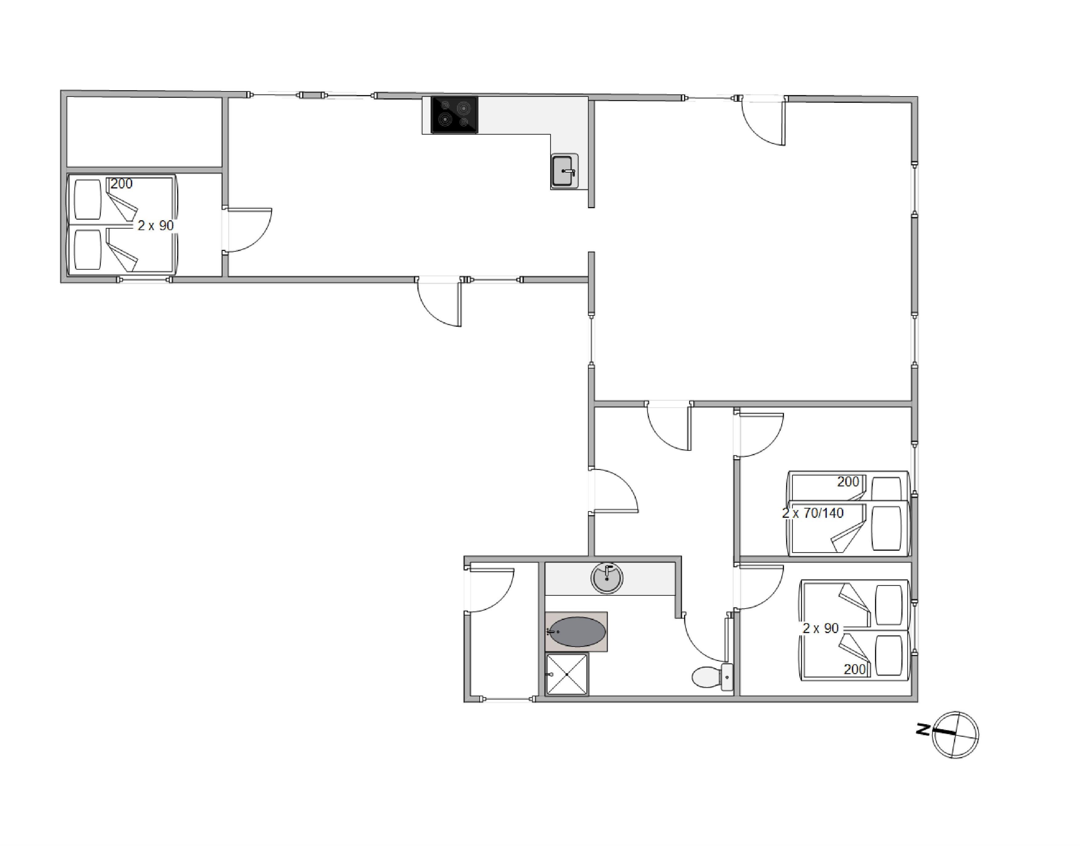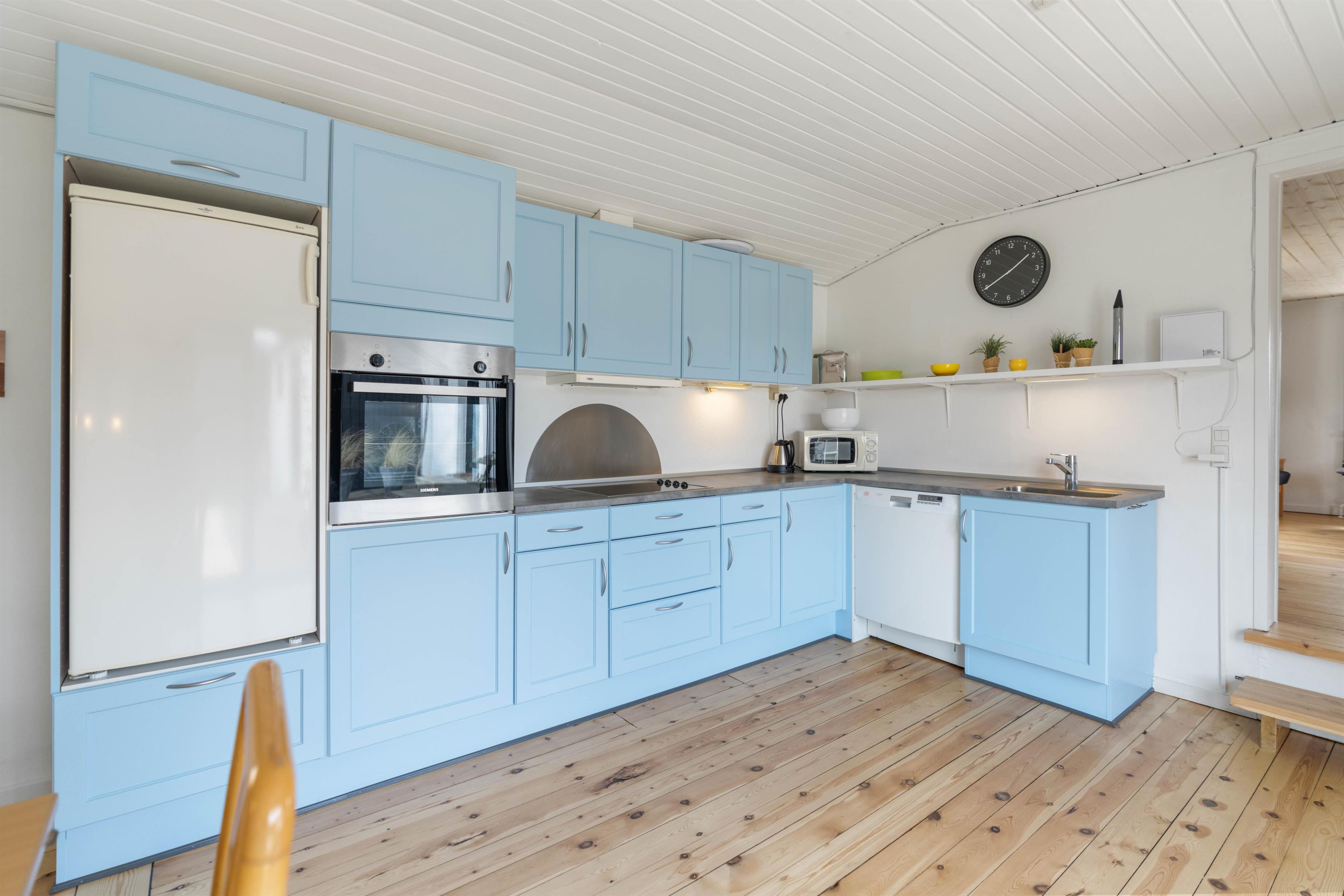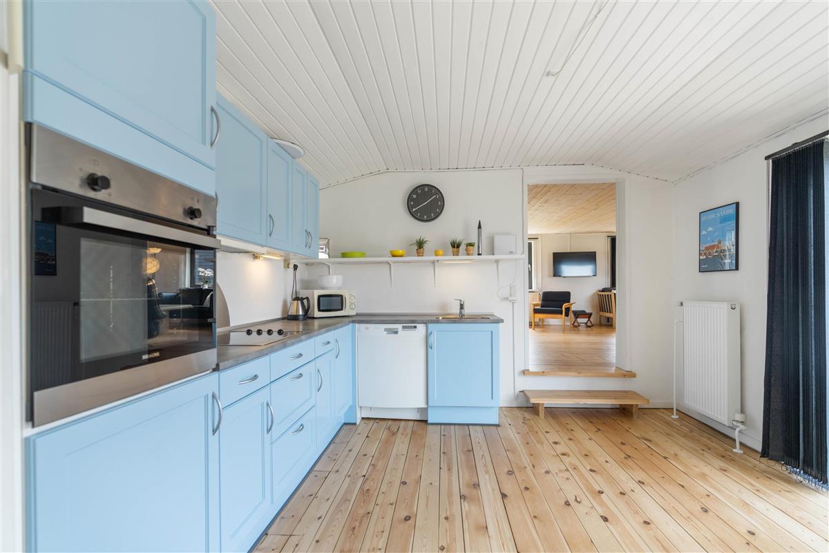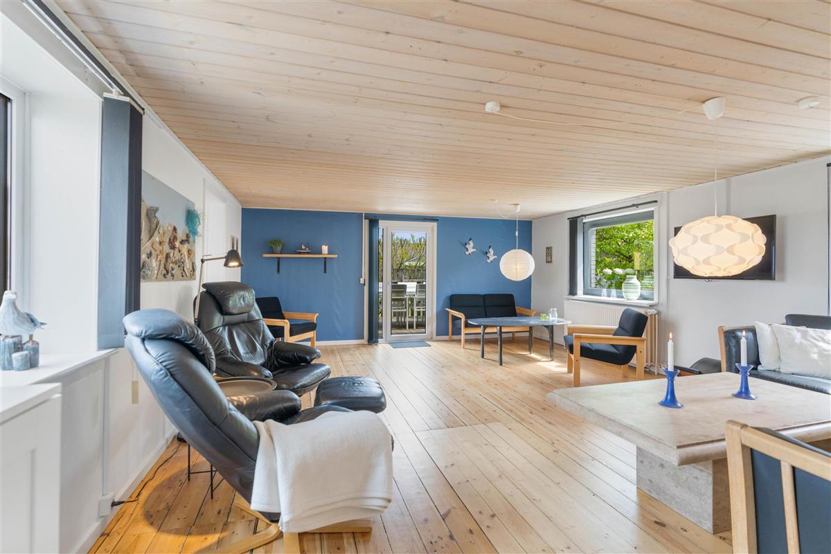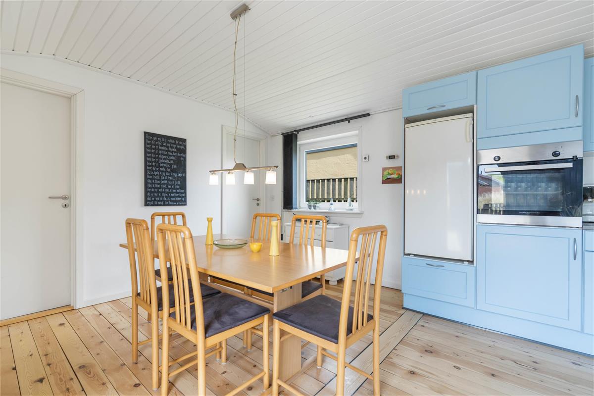 The holiday home at Grænsevej 7 is an excellent choice for those who want everything within walking distance. The furnishings are practical, and while the ceilings are low, the sleeping arrangements are well-distributed across three comfortable bedrooms; two with double beds and one with bunk beds that children are sure to love.