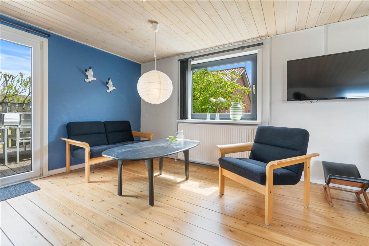 The house enjoys a very central location - in the heart of Hvide Sande, just 500 metres from the town centre and 200 metres from the sea. The miles-long sandy beach invites you to take leisurely walks along the water's edge in the fresh sea air. The charming harbour area, with its interesting shops, delightful restaurants and local attractions, is well worth a visit.