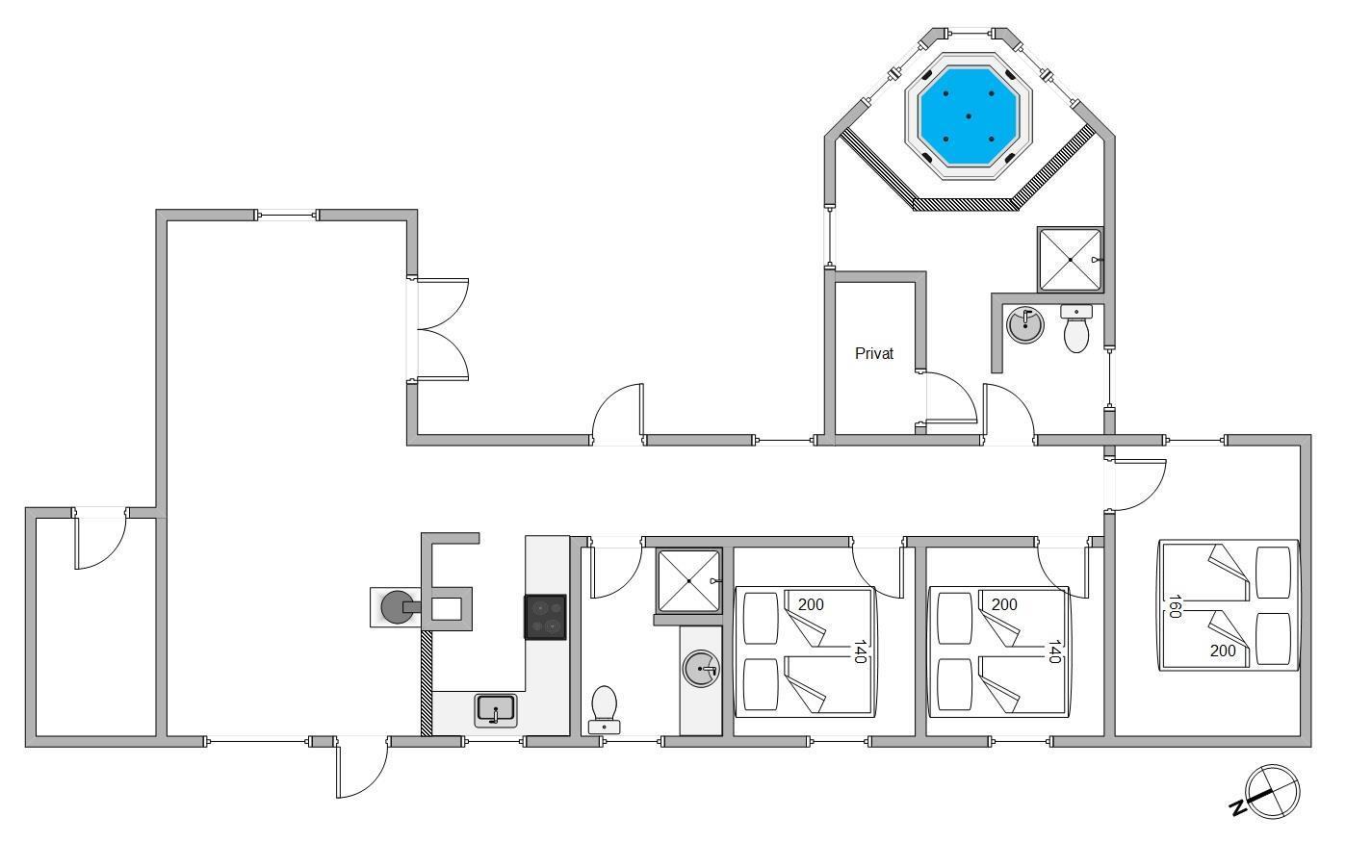 This charming and comfortable holiday home accommodates 6 people across 3 bedrooms. All bedrooms feature attractive wooden flooring and each room has a double bed. The lovely bathroom includes a shower, underfloor heating, washing machine and tumble dryer. Adjacent to the bathroom is a spacious wellness area featuring a whirlpool for 4 people, a shower and a guest toilet. The whirlpool is a permanent spa bath, meaning the water doesn't need to be changed after each use.