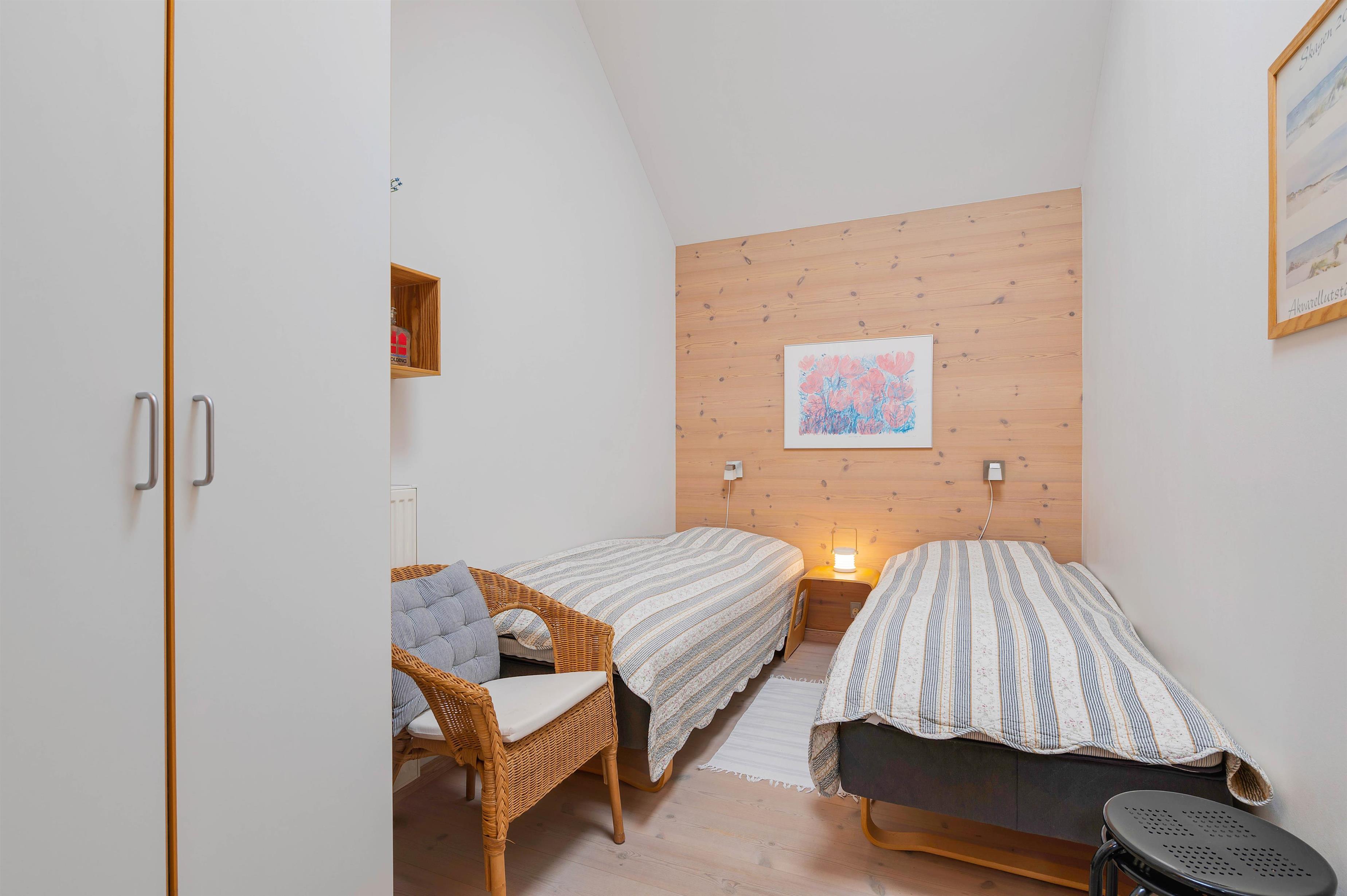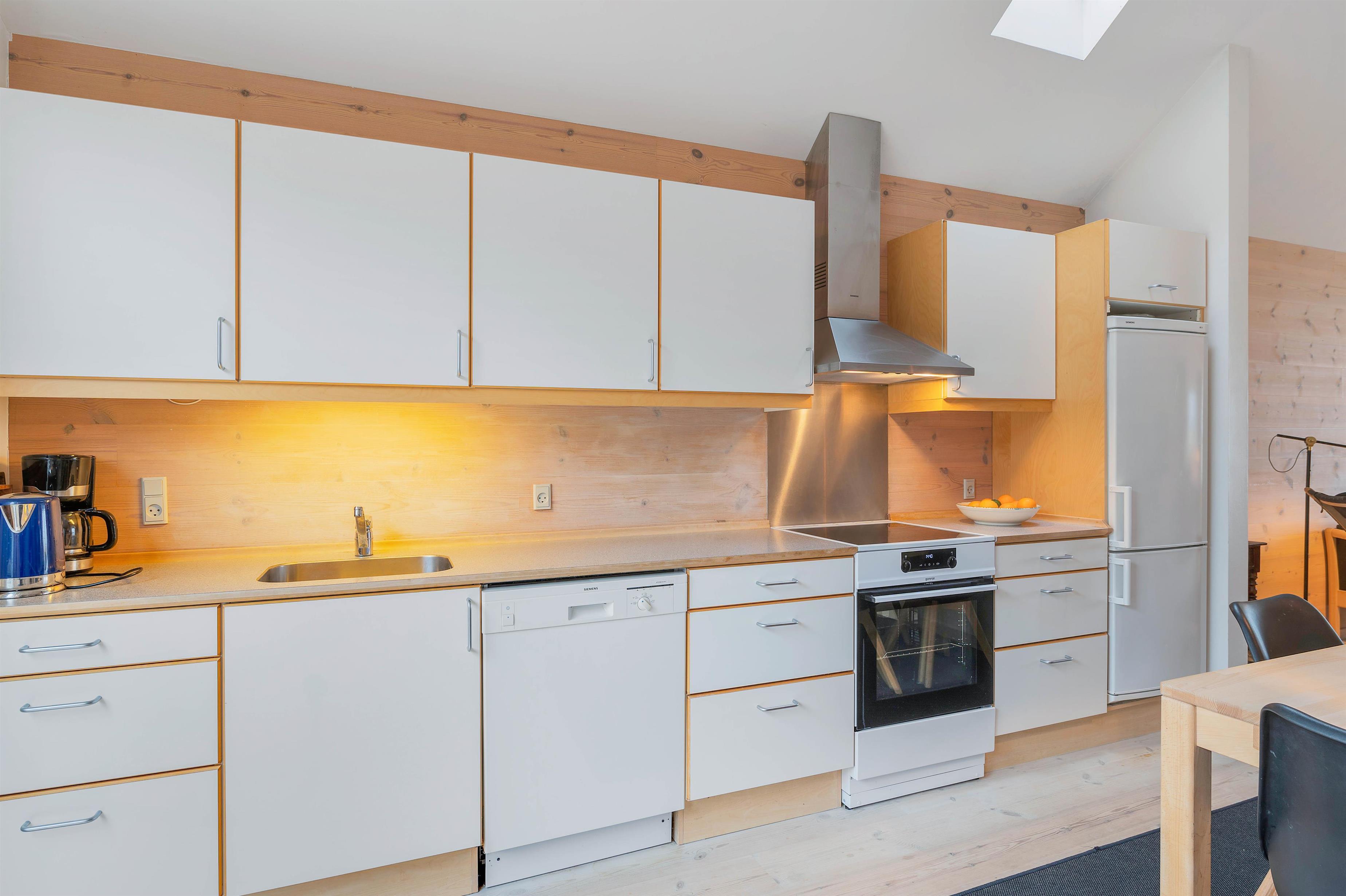 Your Scandinavian-style apartment at Slusen 41 offers three bedrooms, accommodating 6 guests. The bedrooms feature two double beds and two single beds for a comfortable night's sleep. At the heart of the apartment, the wood-burning stove radiates pleasant warmth, creating a cosy atmosphere with its crackling flames.