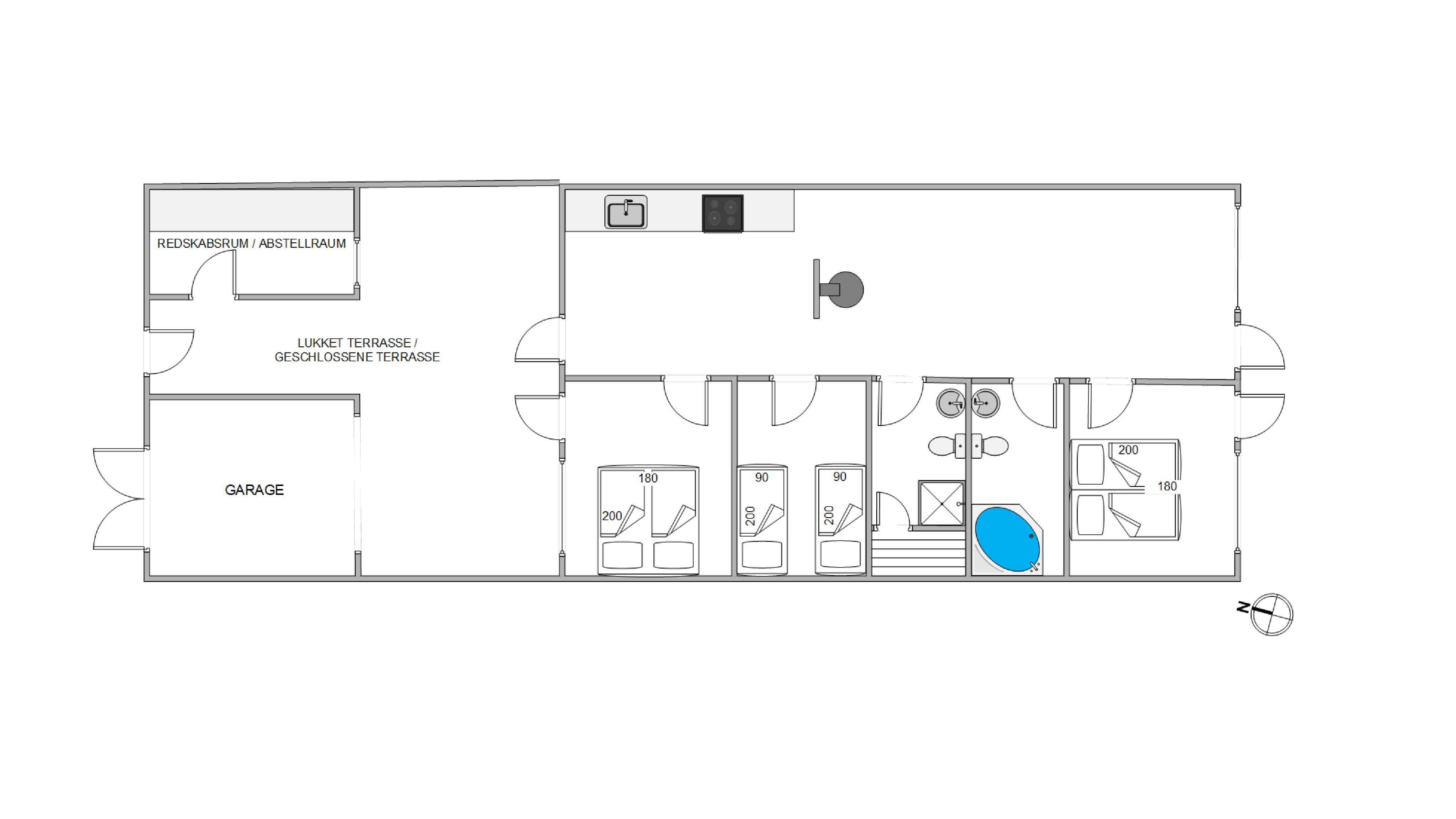 The outdoor area of your apartment is designed for relaxation, featuring comfortable garden furniture and sun loungers for enjoying the fresh air. Your car can be parked in the garage right next to the apartment.