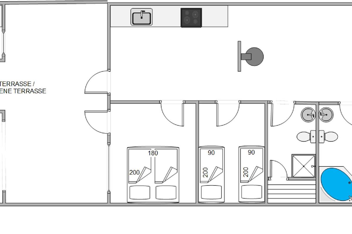 One of the two bathrooms, both featuring underfloor heating, includes your own wellness area for pure relaxation during your stay. Warm up in the whirlpool and sauna, and end your holiday evening with a rejuvenating spa experience.
