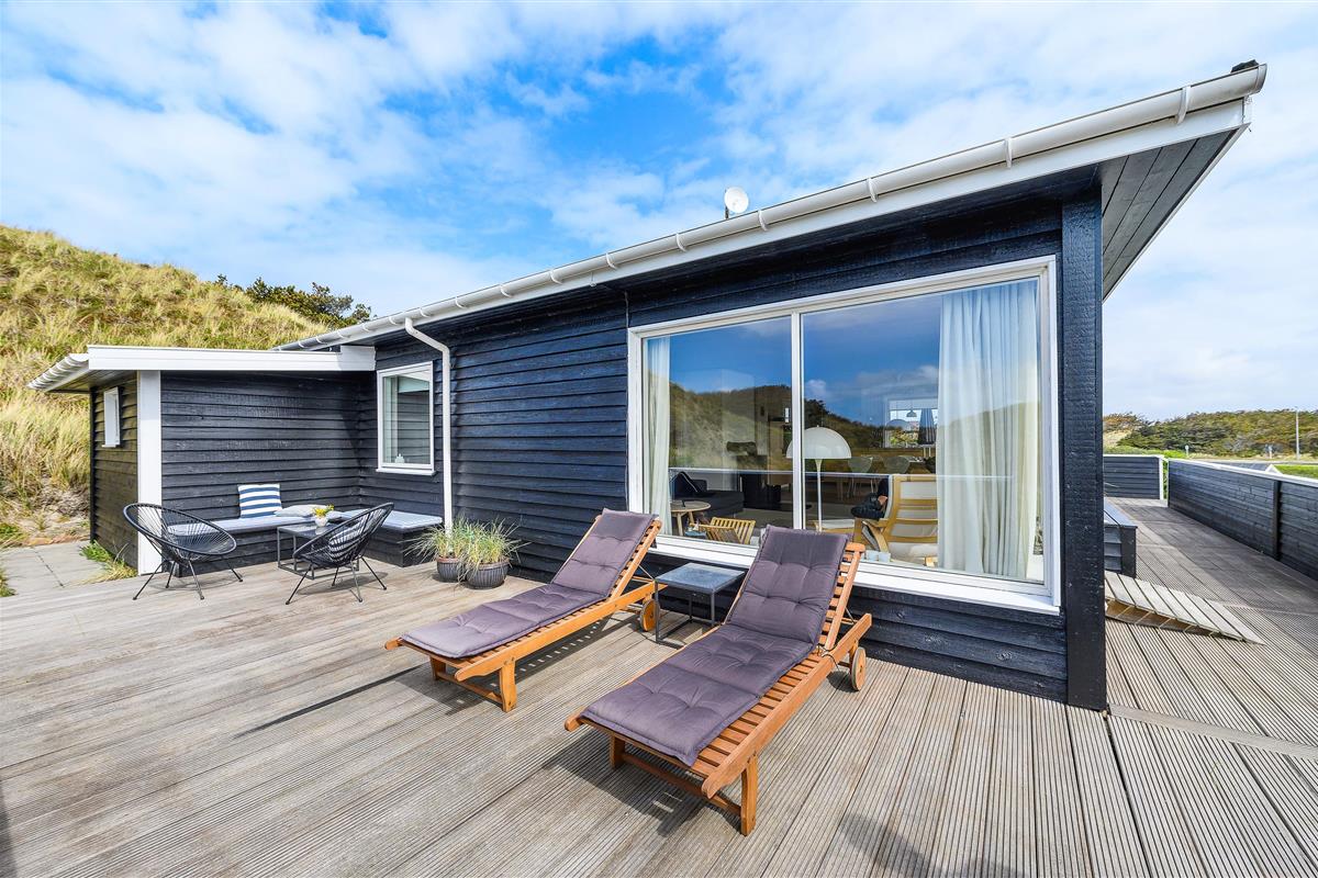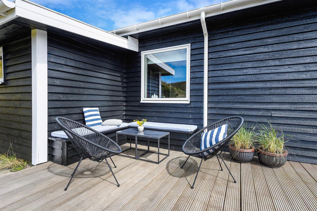 The house is surrounded by a wonderful, sheltered terrace furnished with high-quality, comfortable garden furniture. You can follow the sun's path, finding sunny or shady spots throughout the day. Breakfast on the terrace comes with magnificent views across Ringkøbing Fjord. The outdoor shower, available from April to November, is particularly convenient after a long beach walk.