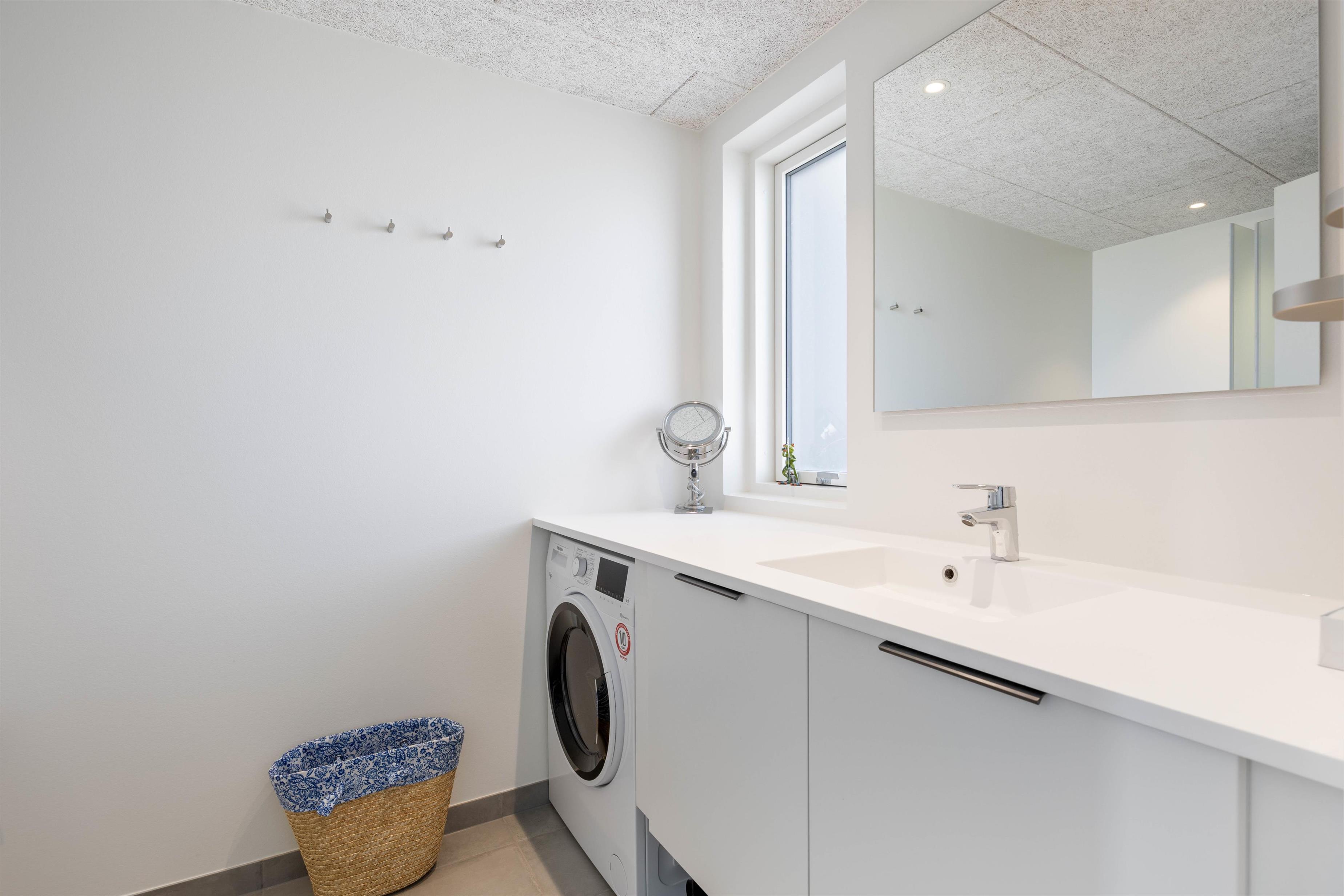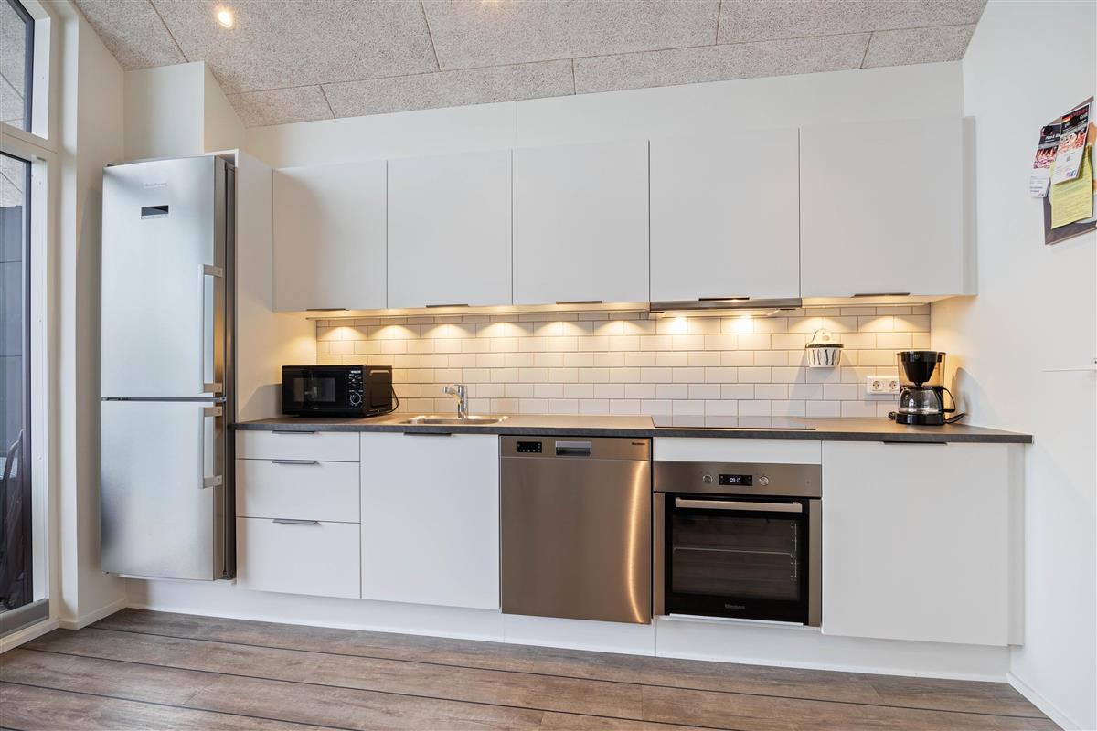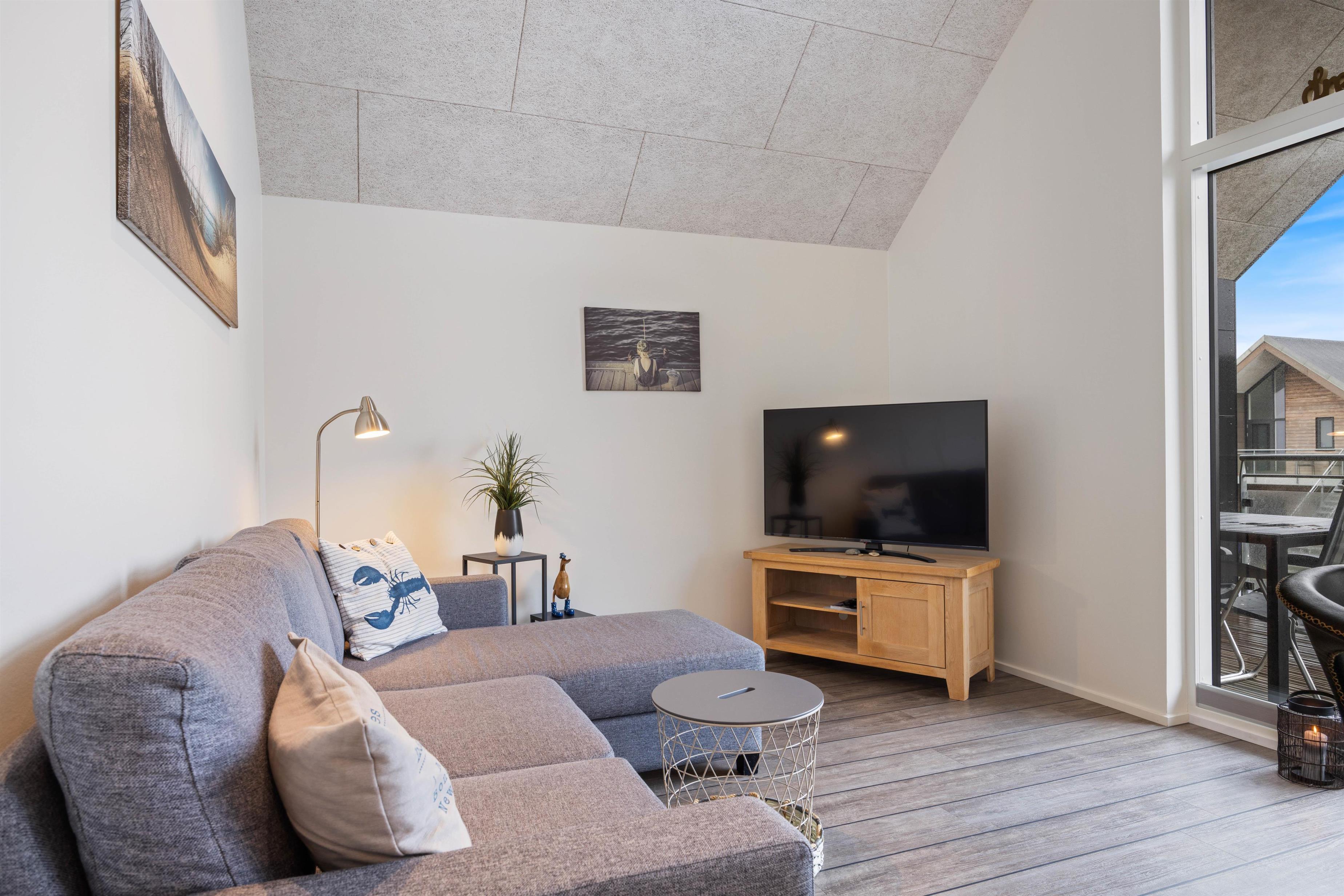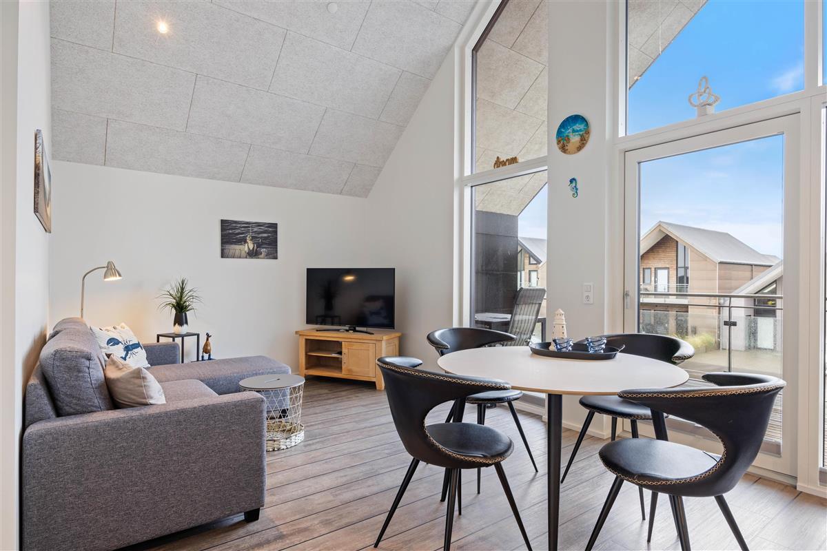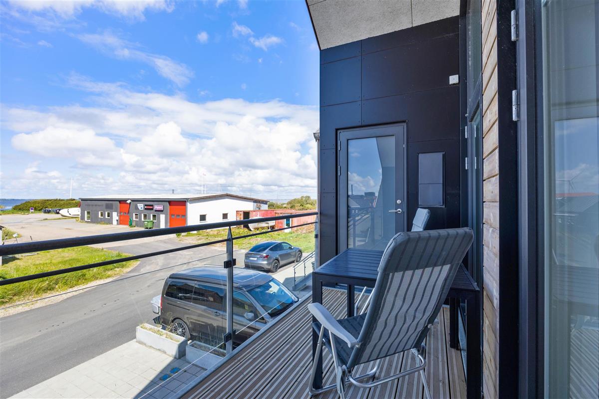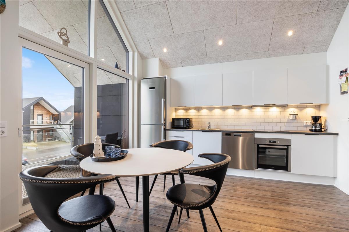 Located on the first floor at Langsand 121, this apartment features modern furnishings with spacious, bright rooms. You'll feel right at home here, with beautiful views over Tyskerhavn harbour and Ringkøbing Fjord. The apartment offers an attractive kitchen and dining area with a practical fitted kitchen and comfortable living space. The kitchen and dining area provides direct access to the balcony, where you can enjoy the views.