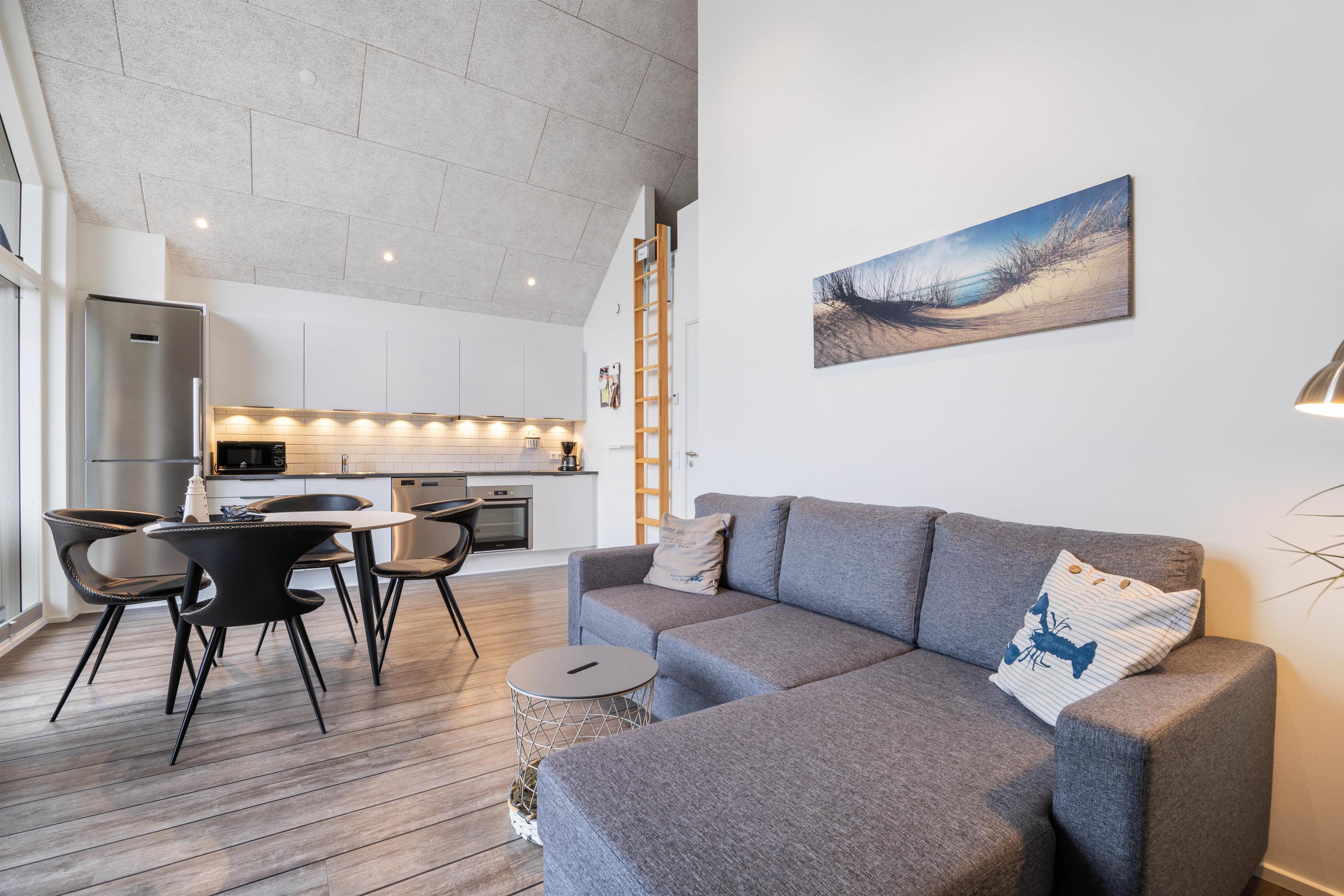 In the heart of Hvide Sande, you'll find this modern and well-equipped holiday apartment for two people and a dog. Just a short walk from Ringkøbing Fjord, you'll be situated both in the centre of town and surrounded by beautiful nature. Built in 2022, this holiday apartment is ideal for two people and a dog to enjoy a wonderful holiday in Hvide Sande.