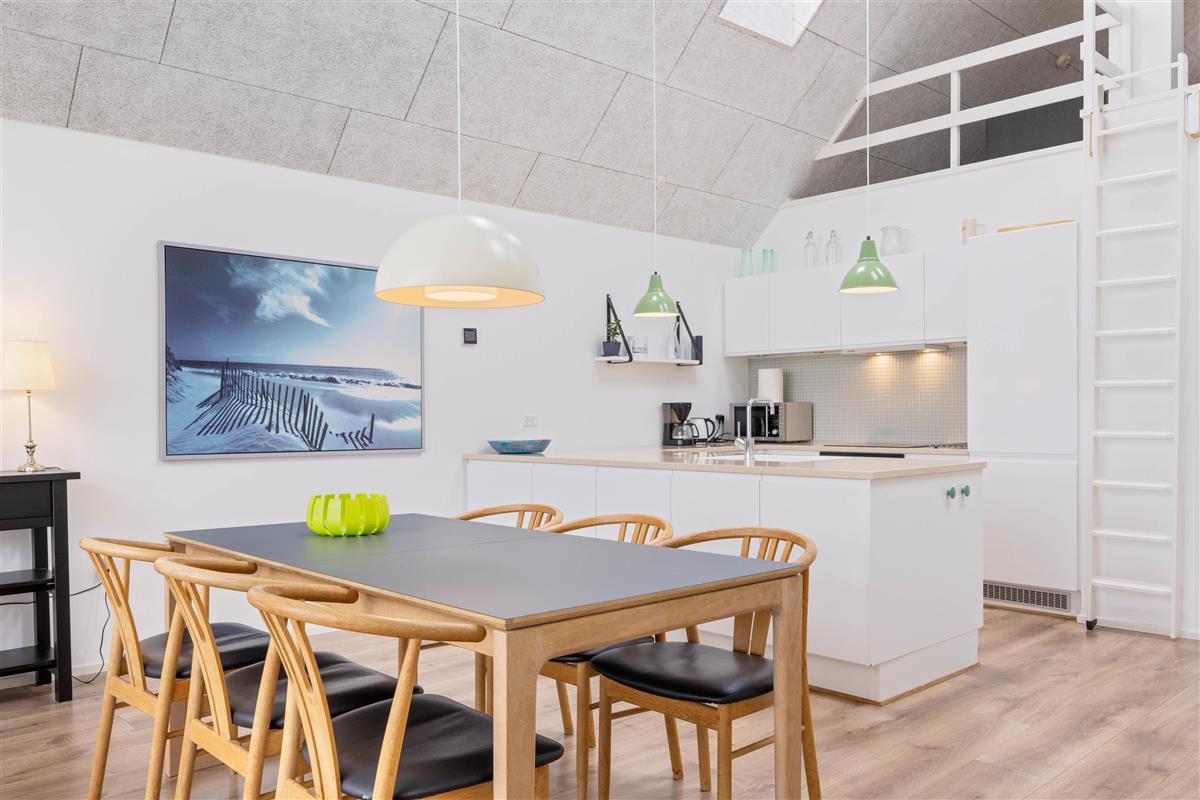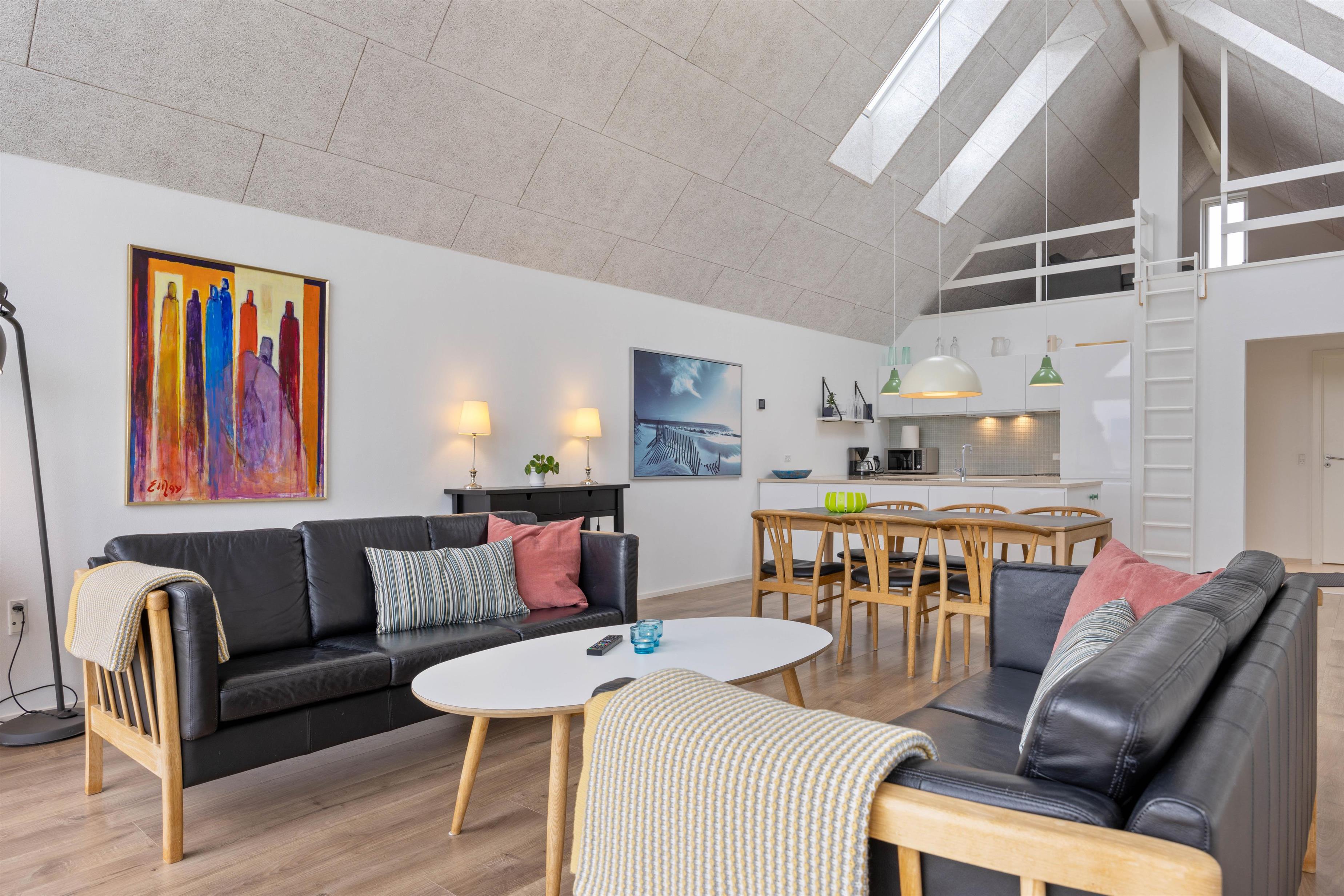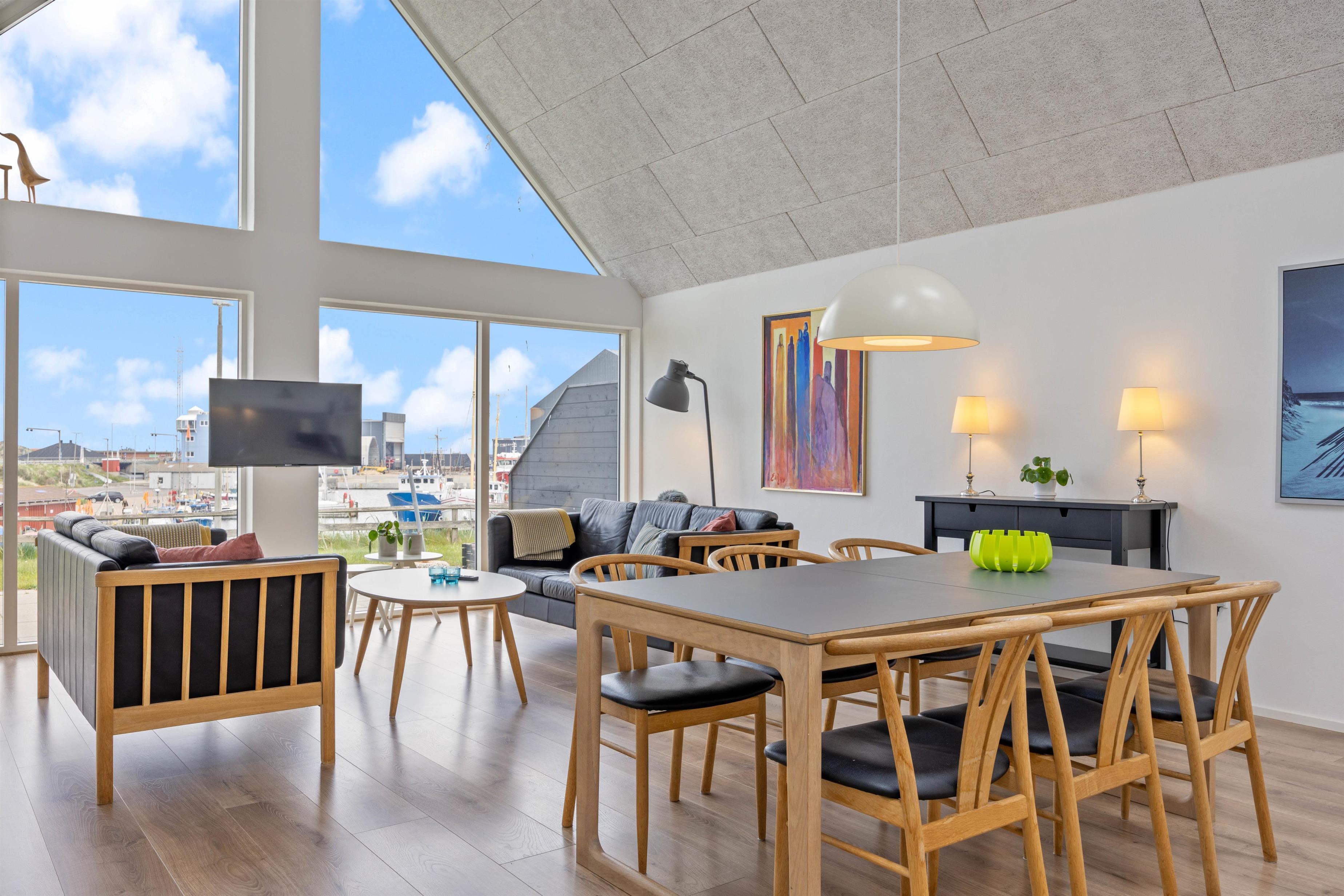 The holiday home is situated in a maritime setting near one of the harbours in Hvide Sande. From the living room and western terrace, you can enjoy views across the harbour. These views can also be enjoyed from the spacious mezzanine level, which provides a perfect spot for relaxation and comfort.