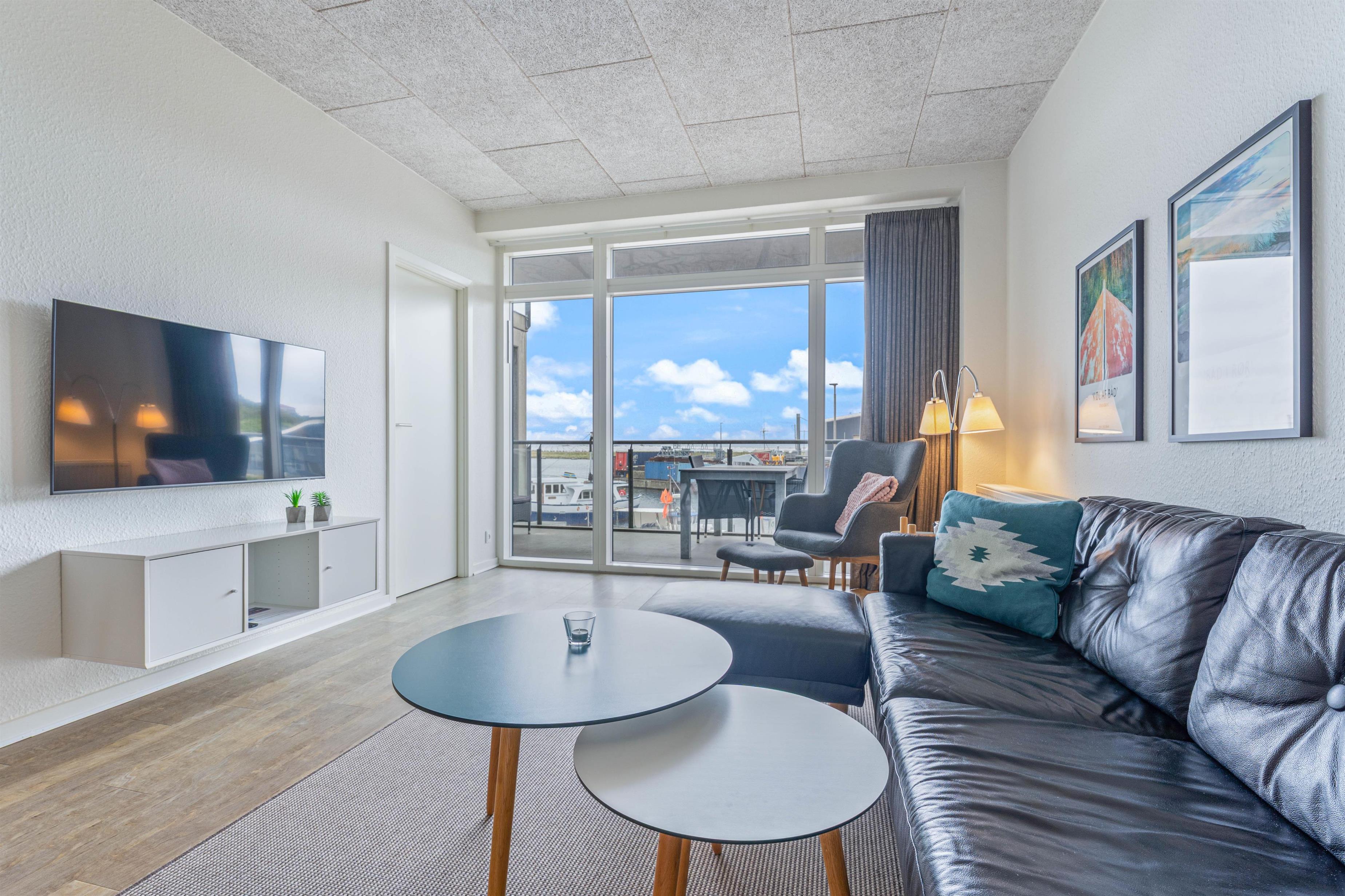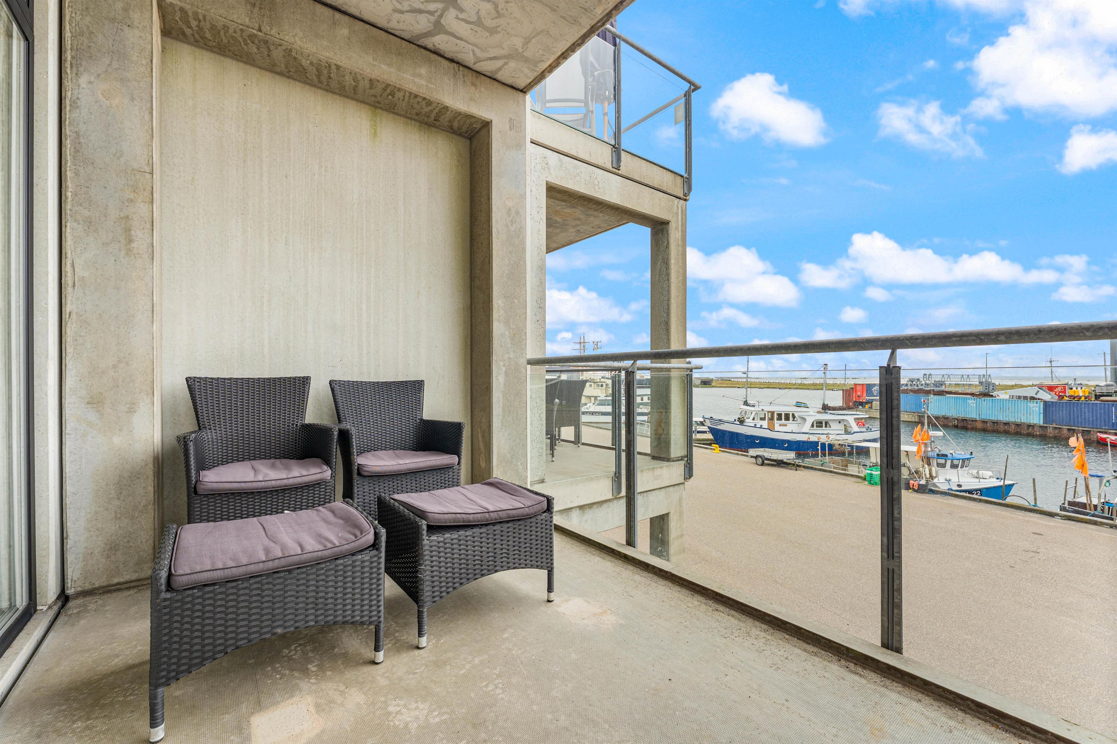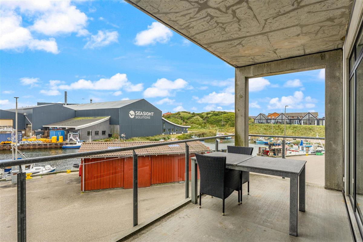 Beautiful balcony overlooking Hvide Sande's fjord harbour