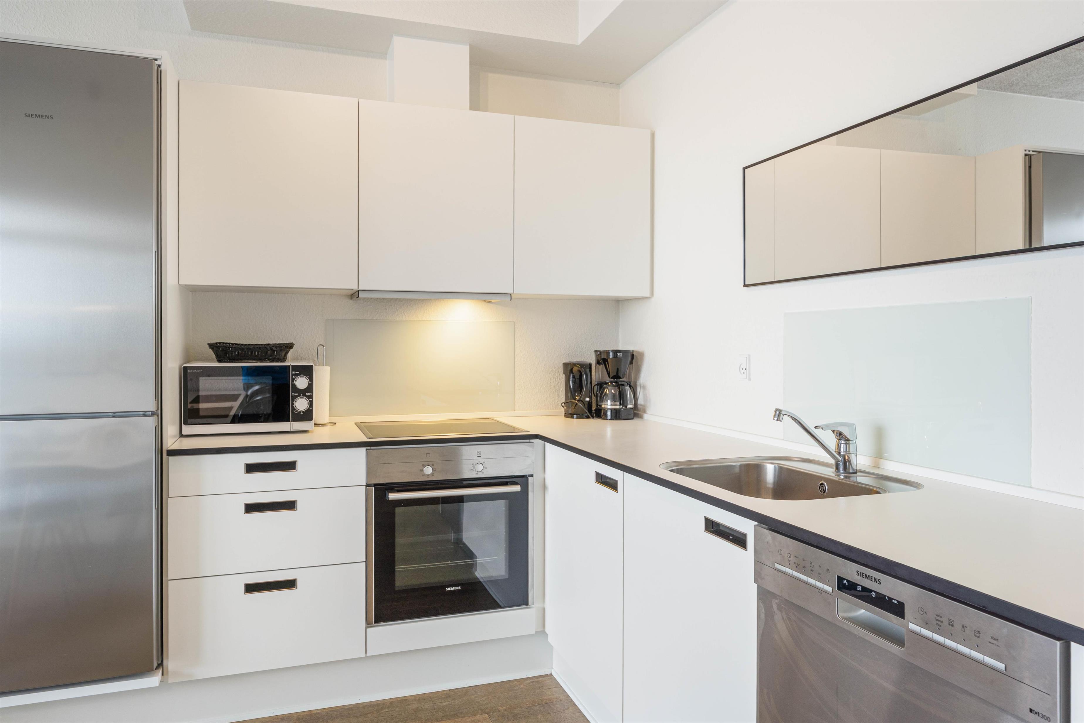Your modern and thoughtfully furnished first-floor apartment in Mamrelund is conveniently located near bakeries, restaurants and supermarkets. The focus here is on togetherness: a comfortable sofa in the living area and a cosy armchair invite you to spend relaxing hours with the whole family. Enjoy an afternoon watching films or simply admiring the beautiful view while sipping a hot cup of tea.