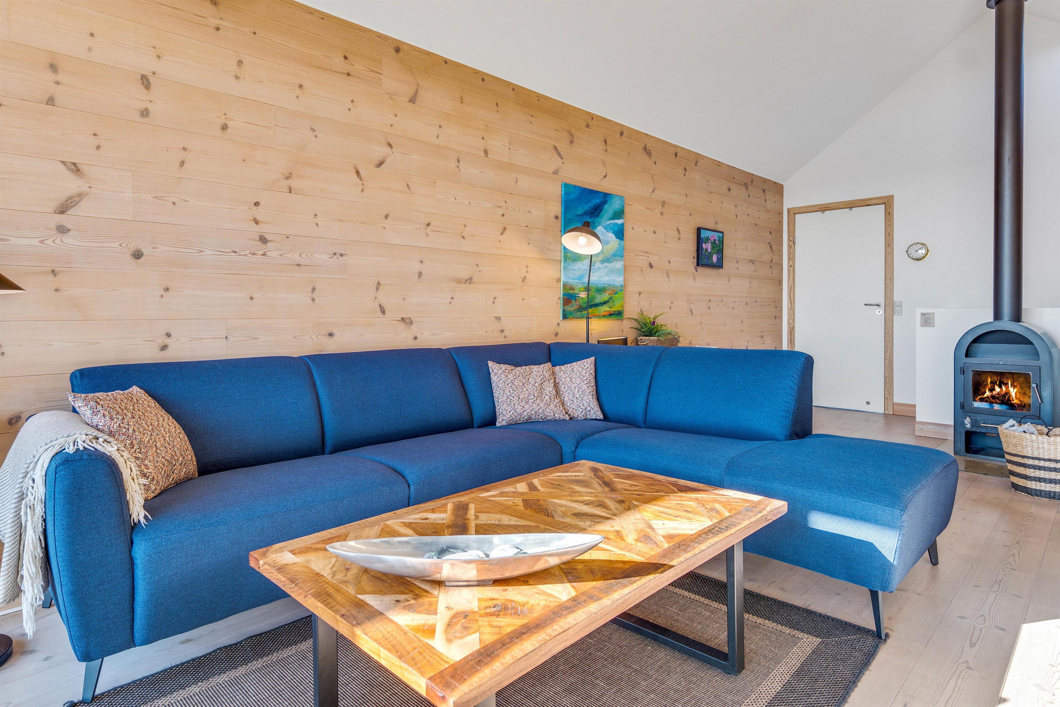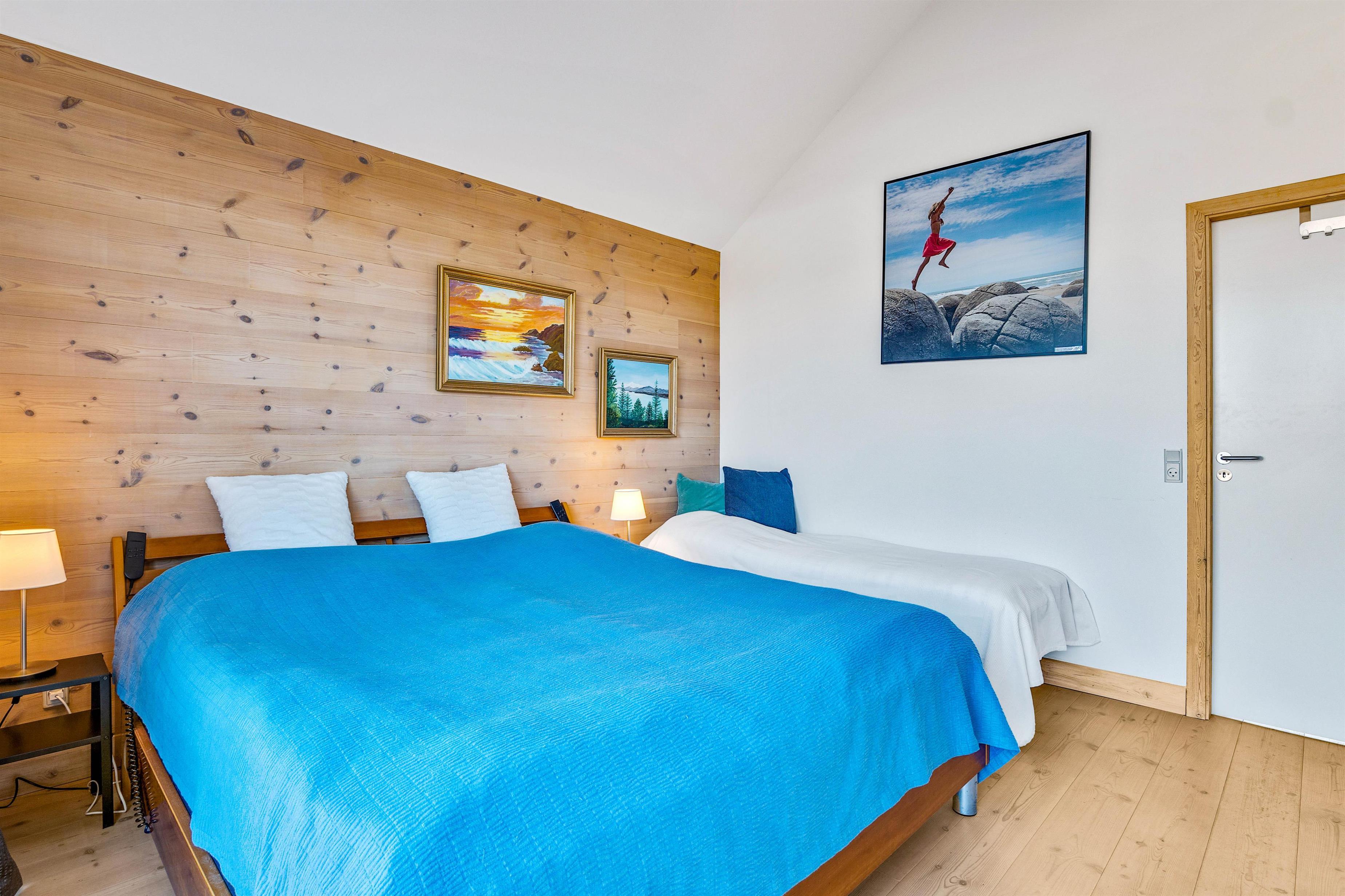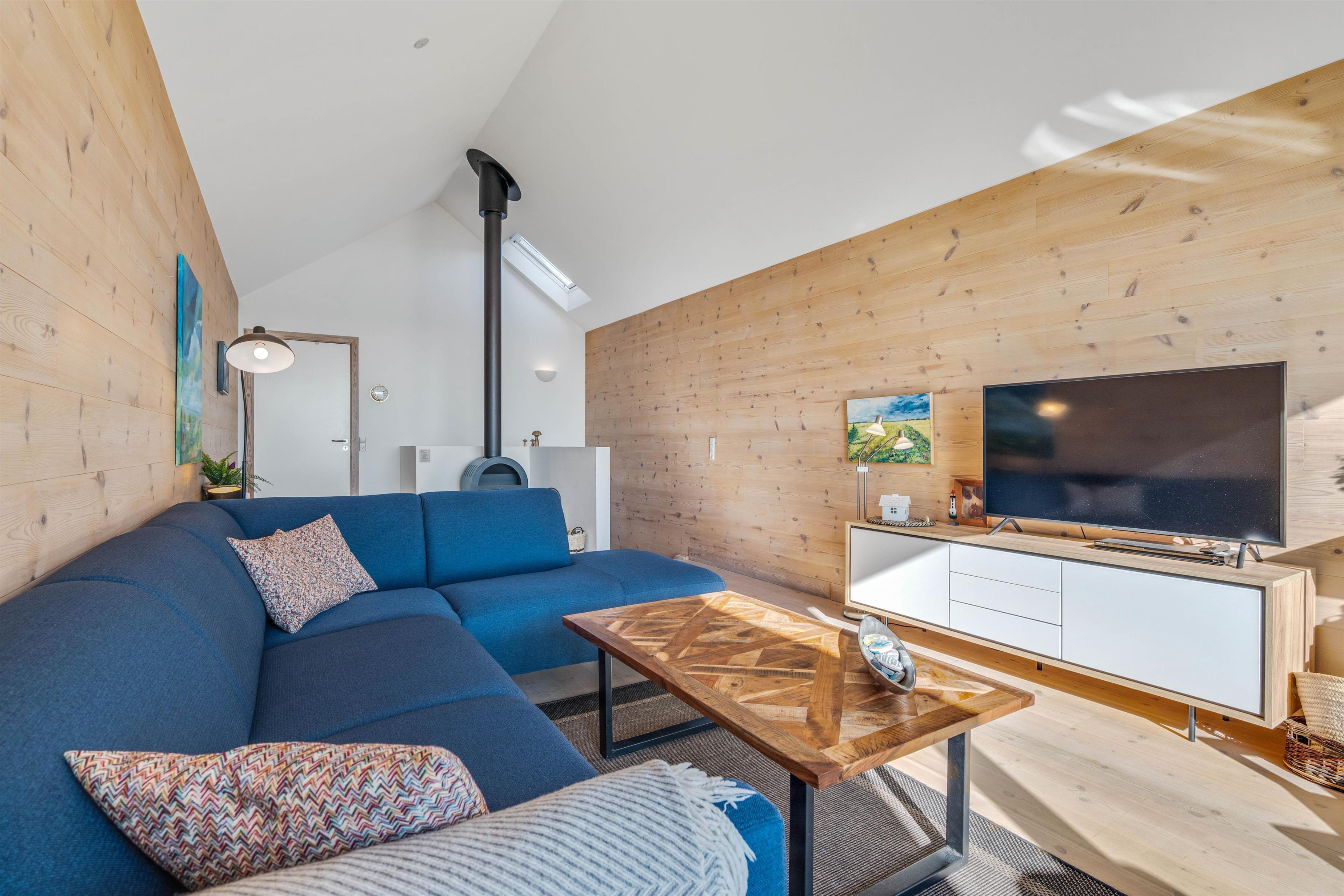 Access the outdoor area directly from the living room. Both a terrace and a small balcony with wonderful views are at your disposal. Here you'll find comfortable garden furniture and sun loungers for relaxing in the fresh air. Enjoy the magnificent views over the surroundings with a freshly brewed cup of coffee.