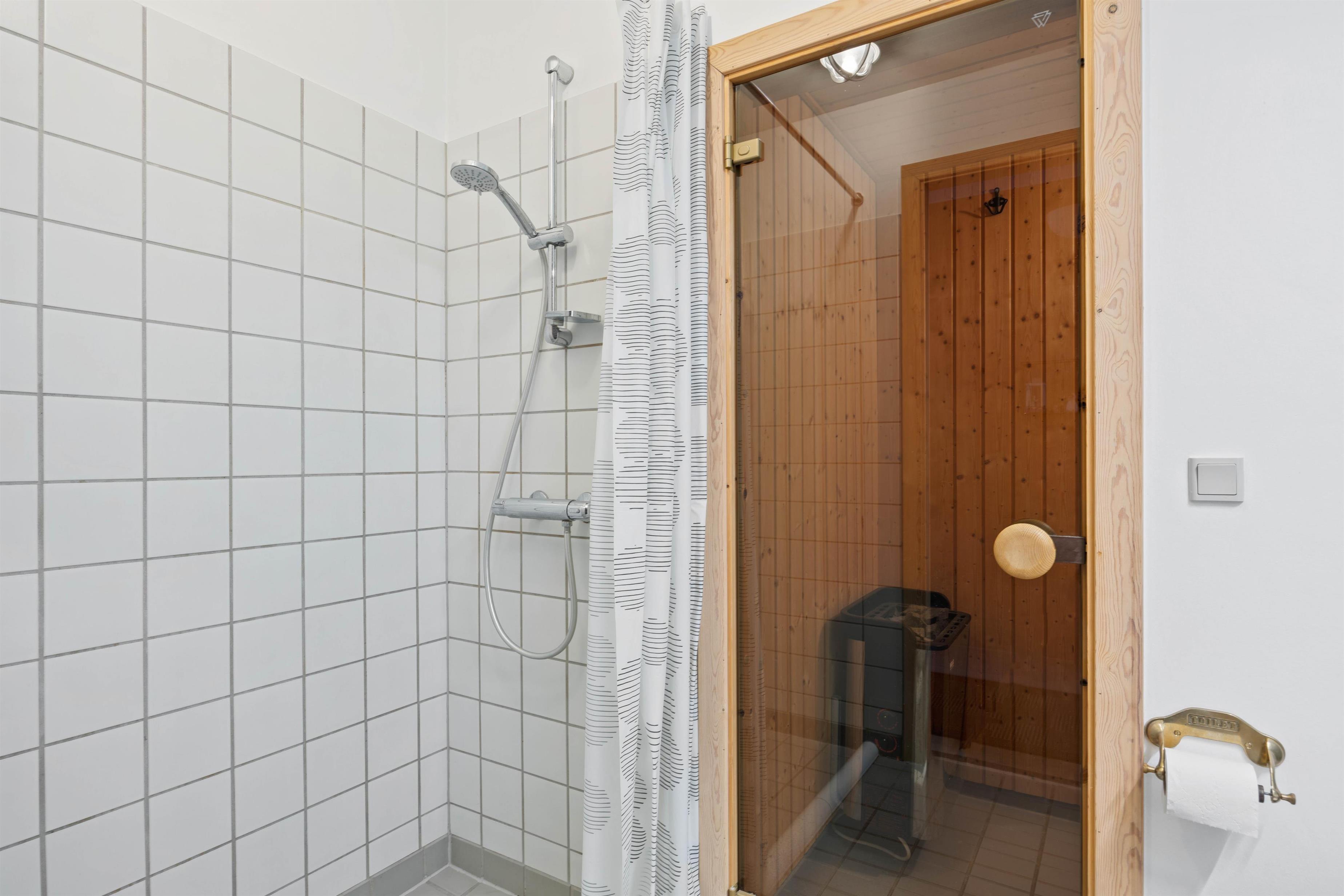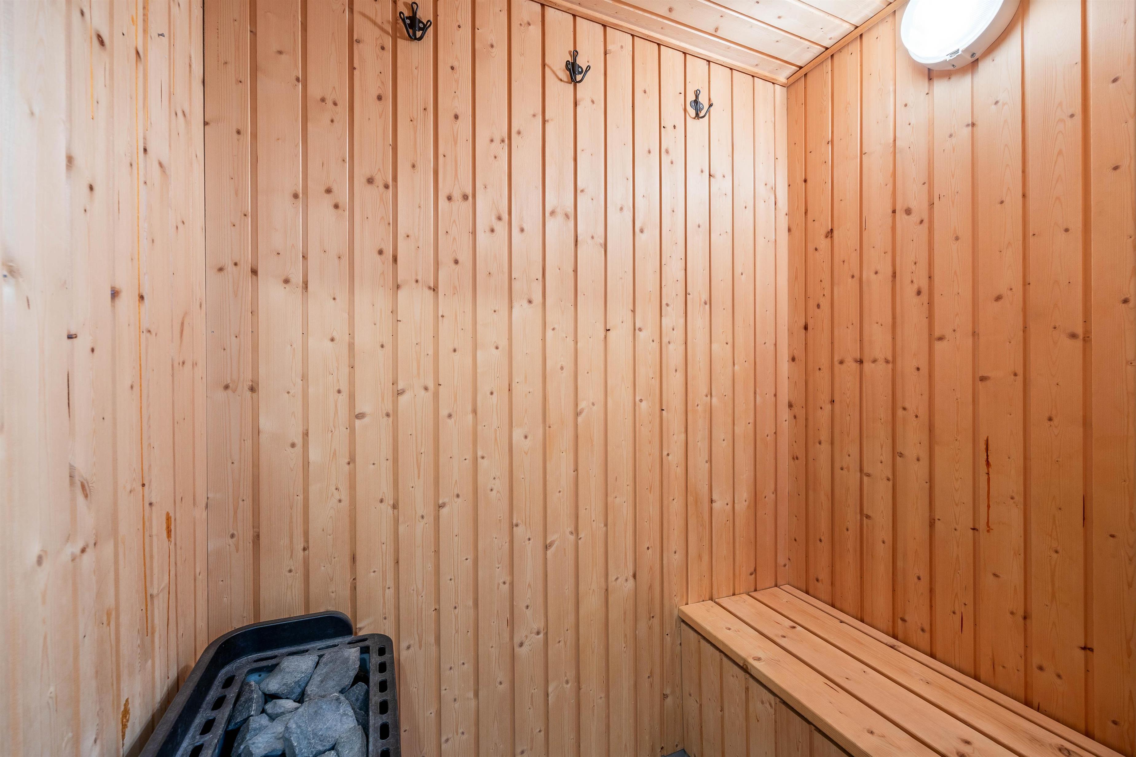 A particular highlight is the two bathrooms with underfloor heating, one of which features a sauna and whirlpool for relaxing wellness moments.