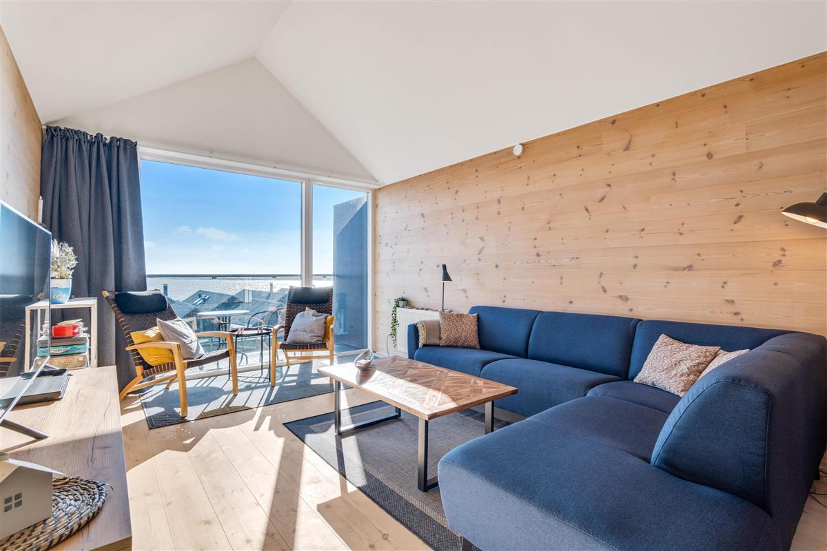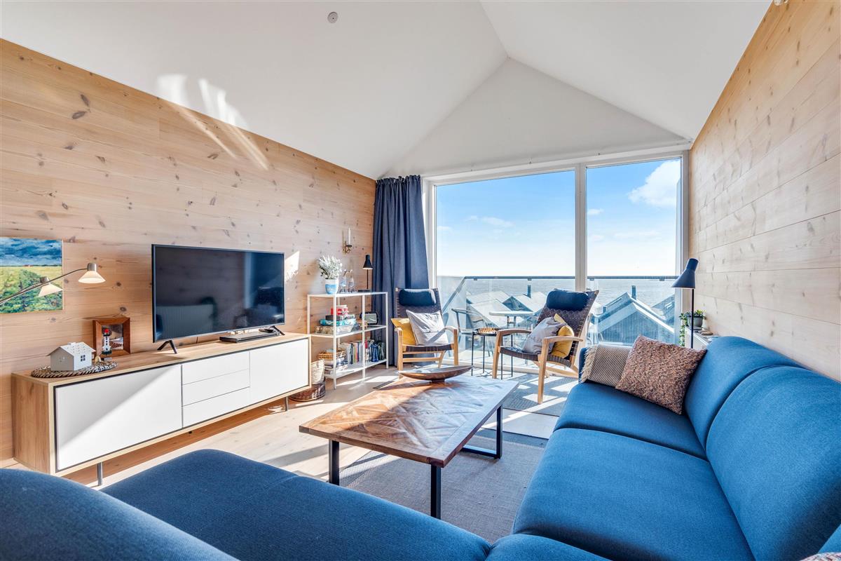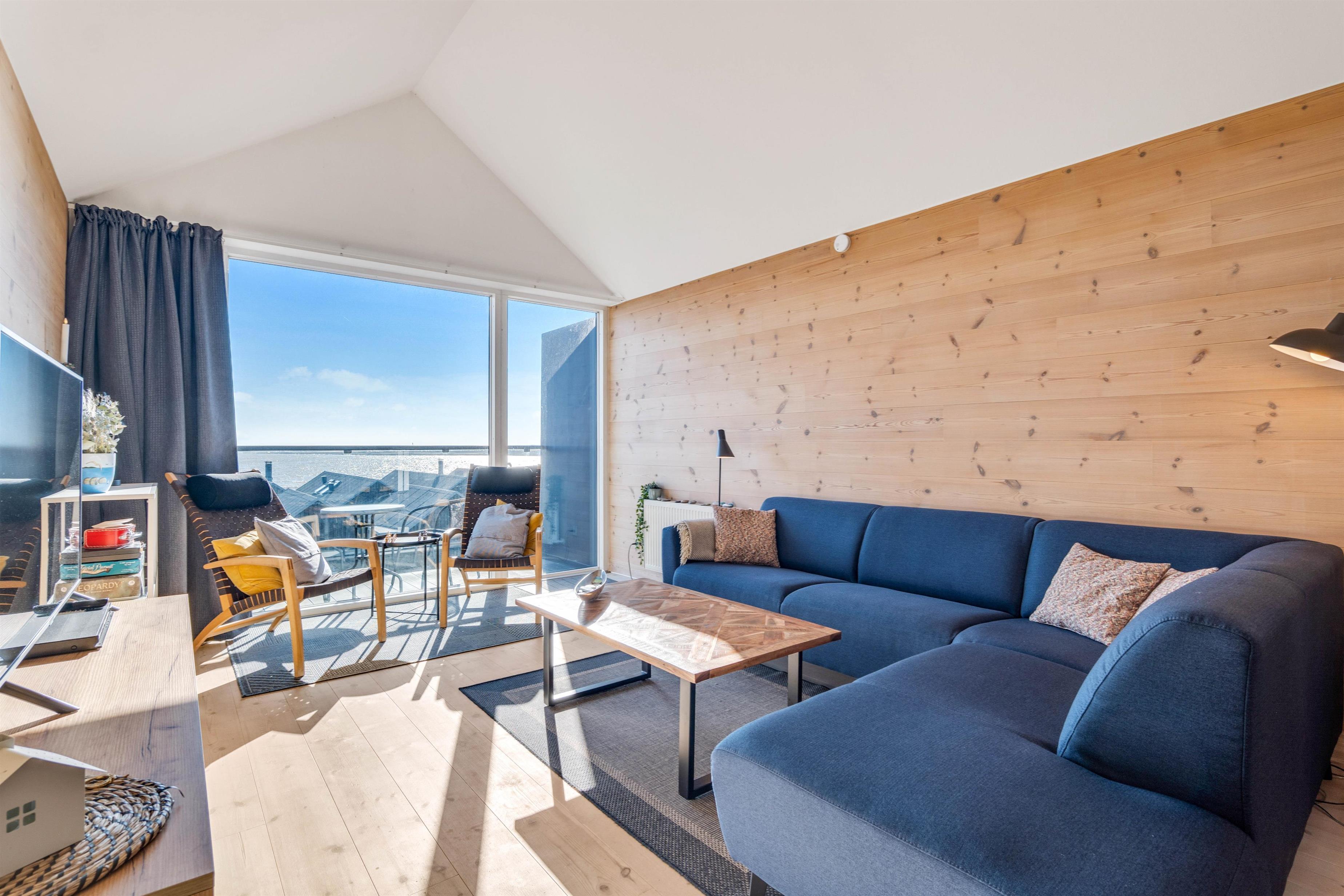 Your holiday apartment in Hvide Sande is perfectly equipped for a relaxing break. The colour blue features as a recurring theme throughout the apartment. The comfortable seating area includes a flat-screen TV where you can settle in by the warming, crackling fire of the wood-burning stove. Enjoy panoramic views of the surrounding area.