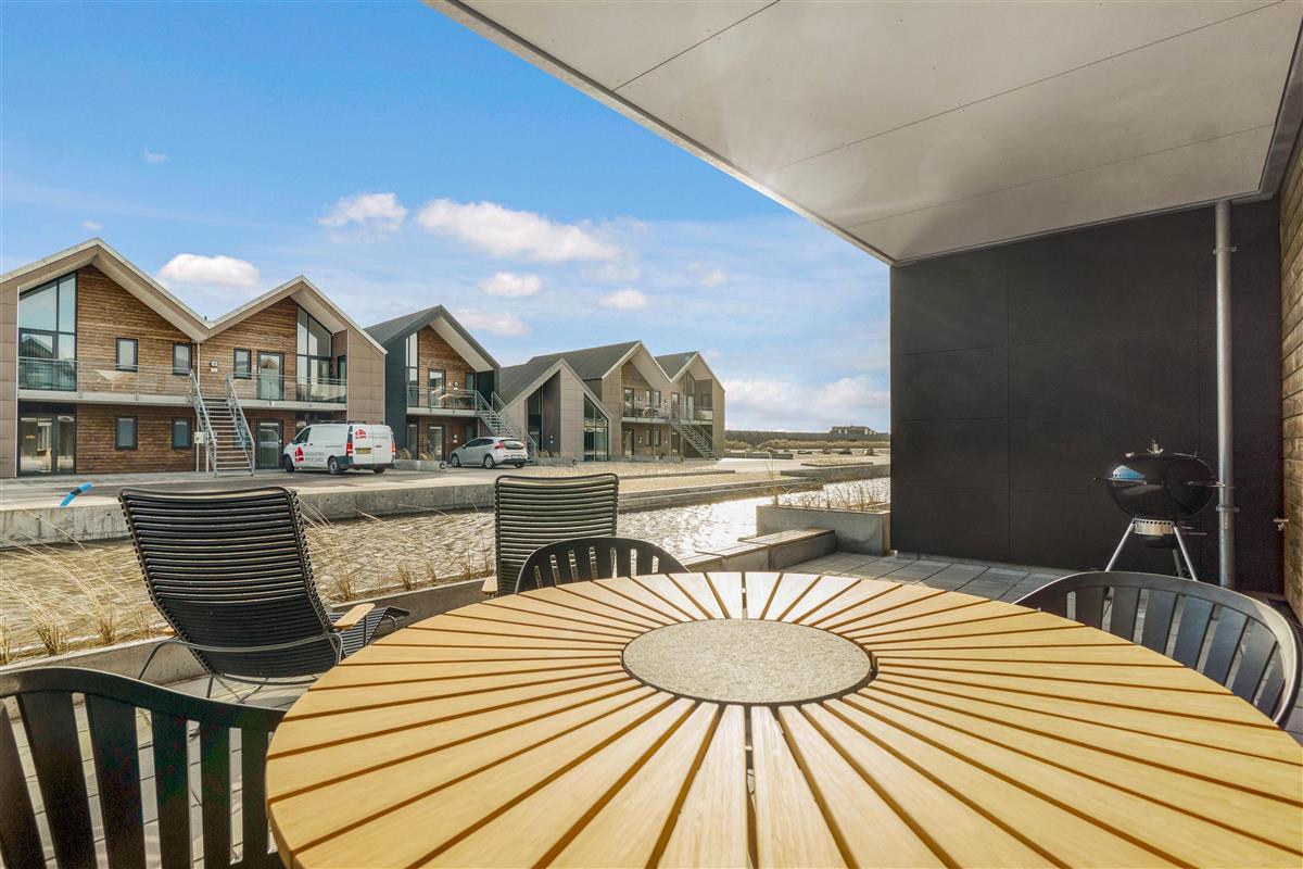 The living room offers pure relaxation with fantastic canal views through large south-facing windows. With access to the partially covered terrace, you can spend many pleasant hours reading your latest crime novel. After a cosy barbecue evening, you can end the day watching a film in the living room.