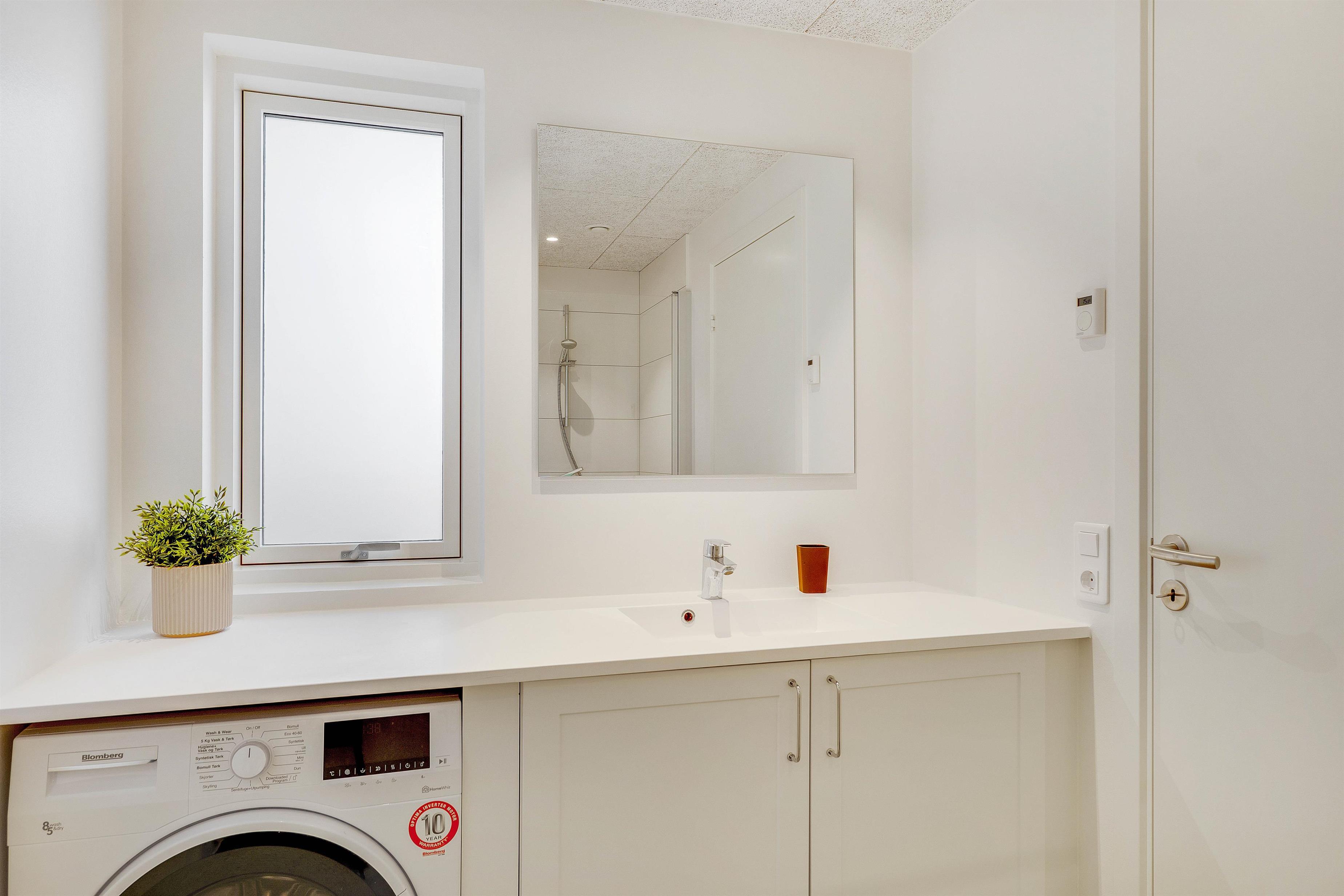 The bathroom includes underfloor heating ensuring warm feet in the morning, whilst the washer-dryer combo keeps towels fresh daily.