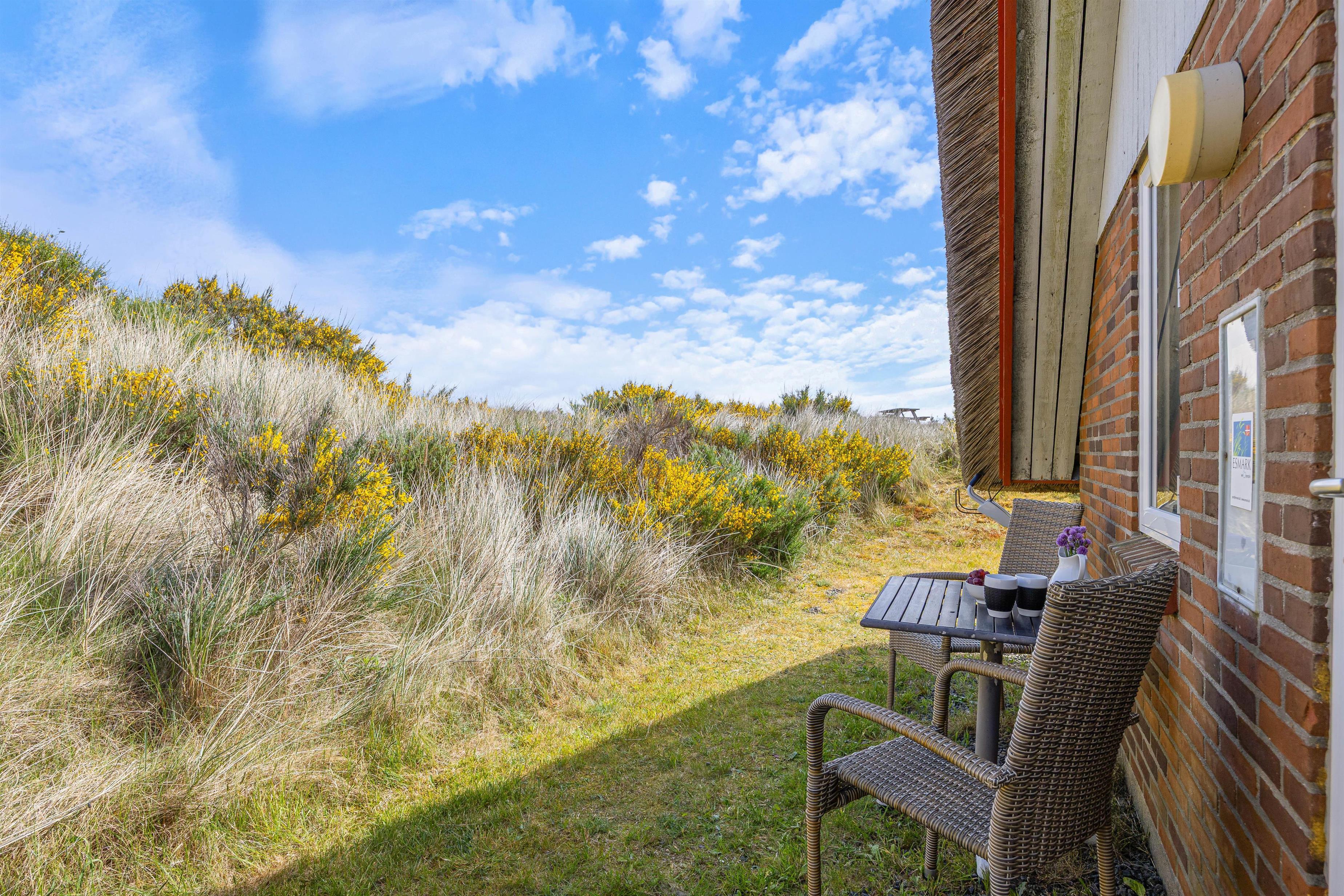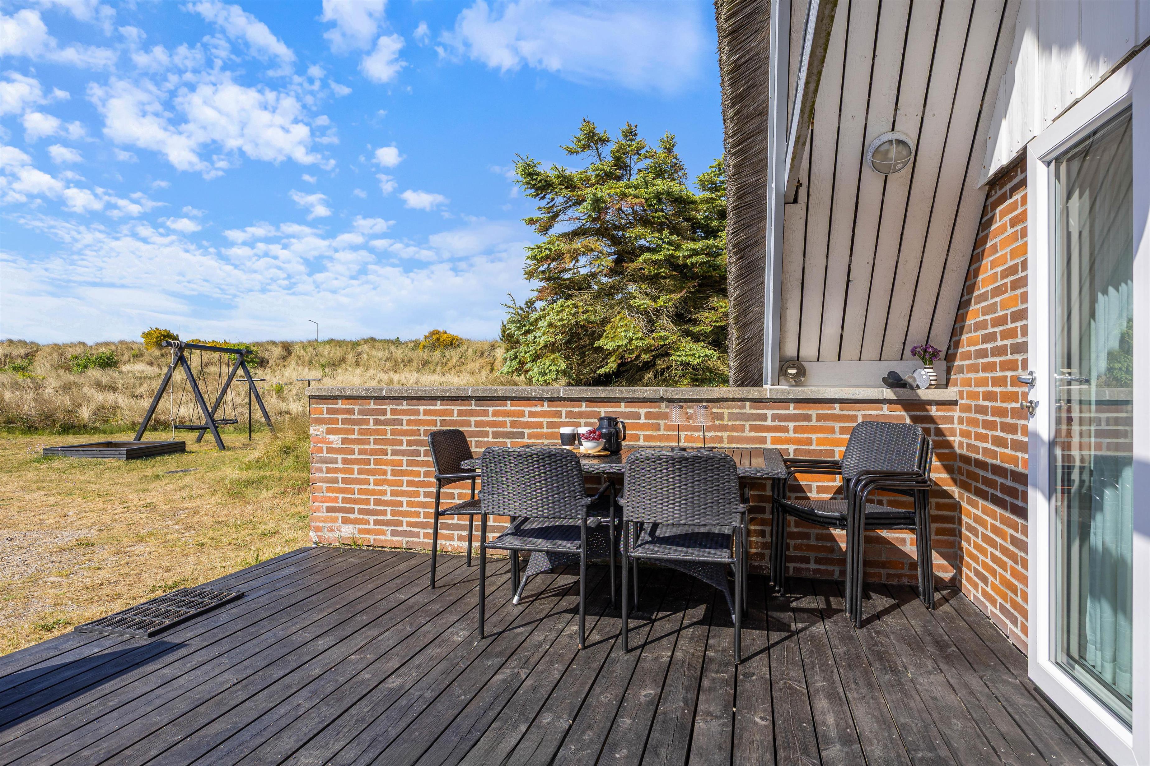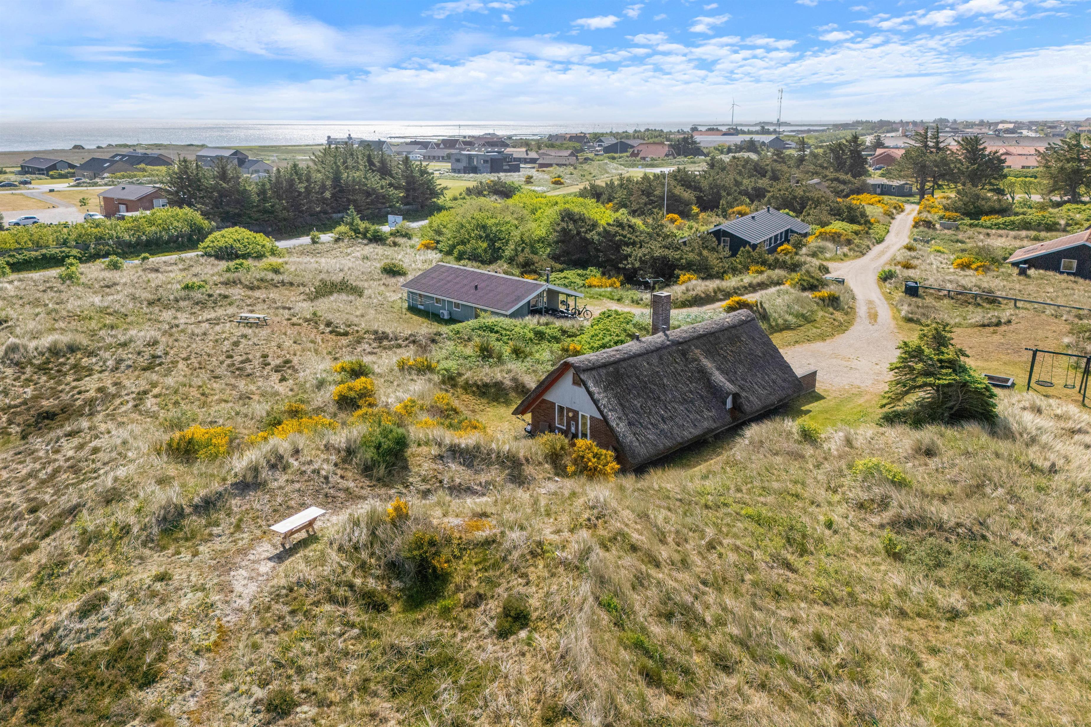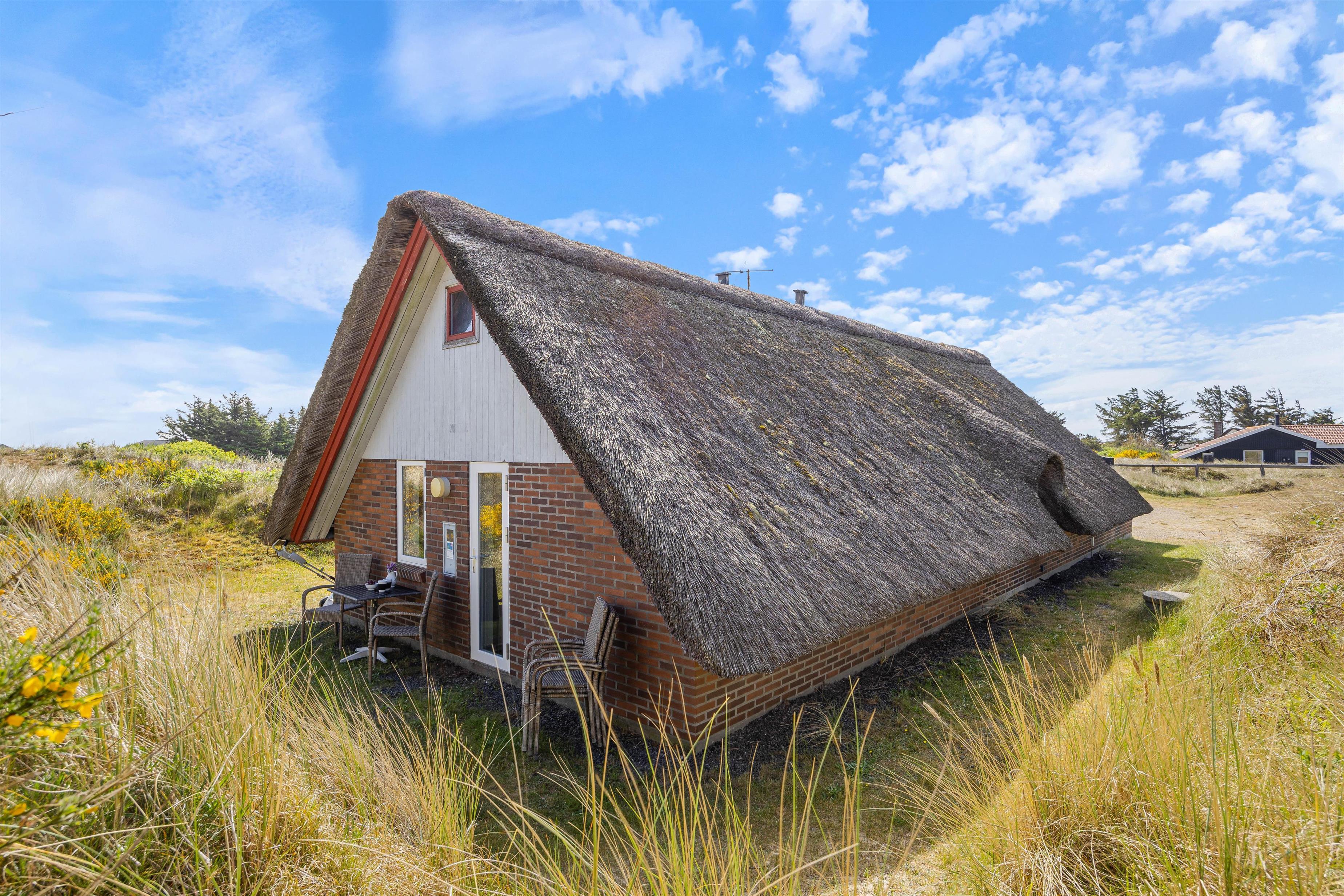 The holiday home is situated on the northernmost edge of Hvide Sande, surrounded by beautiful natural scenery with marram grass. The North Sea is a pleasant walk from the holiday home. For easier beach access, head to the north or south pier in Hvide Sande.