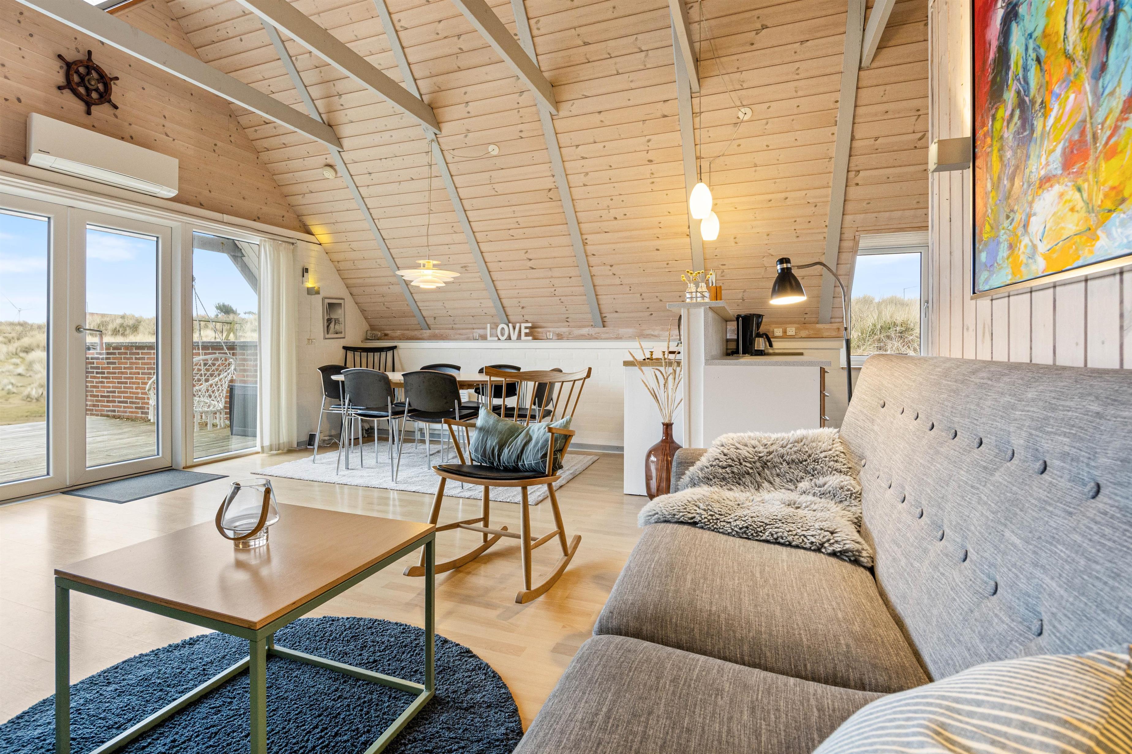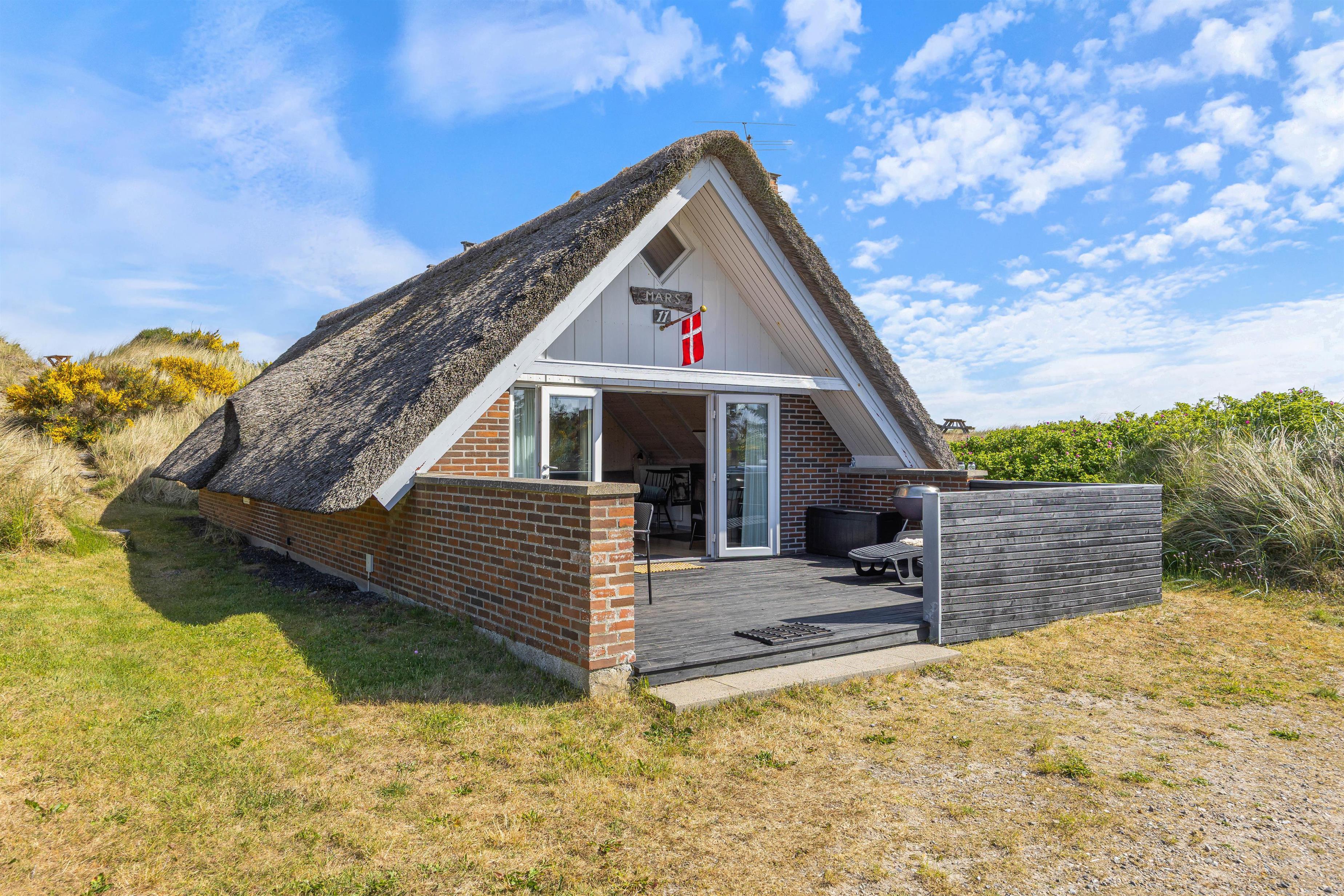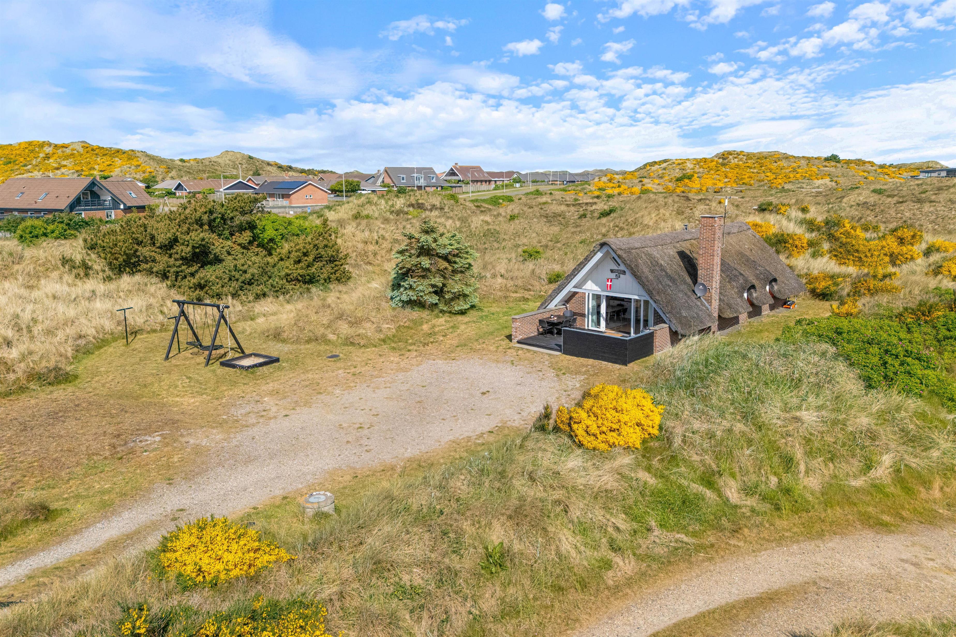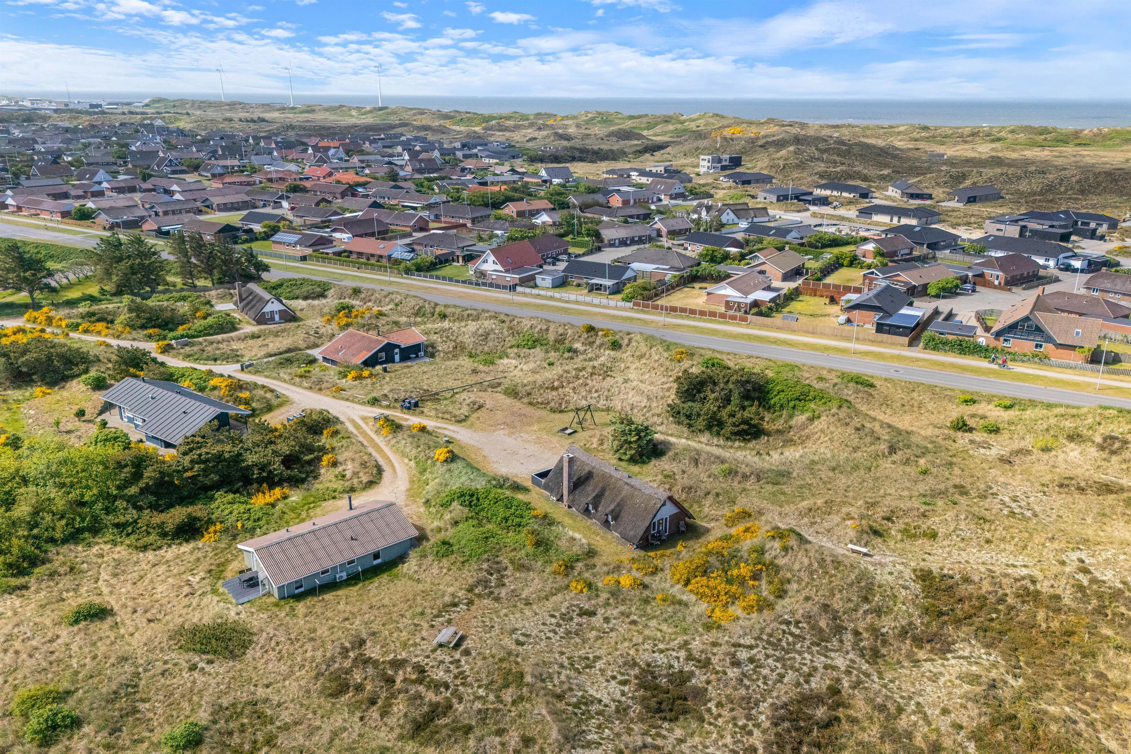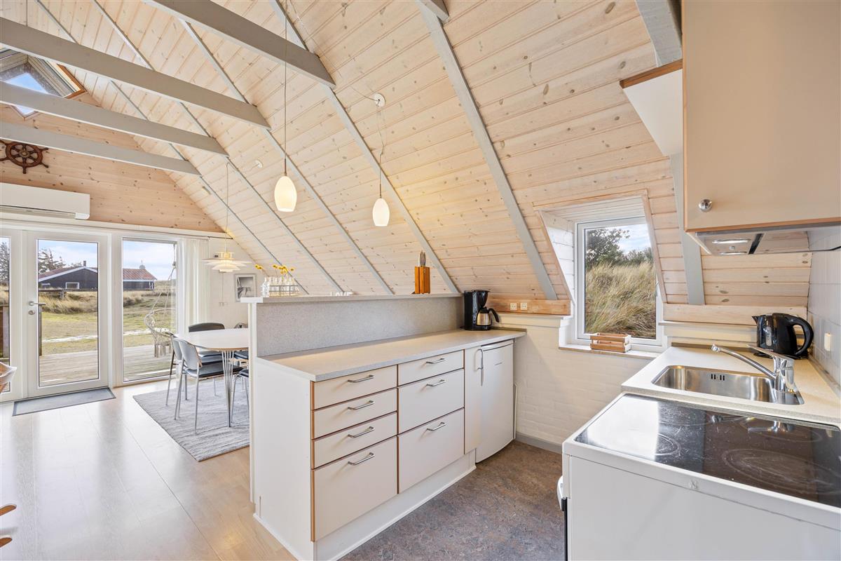 The holiday home is situated on the northernmost edge of Hvide Sande, surrounded by beautiful natural scenery with marram grass. The North Sea is a pleasant walk from the holiday home. For easier beach access, head to the north or south pier in Hvide Sande.