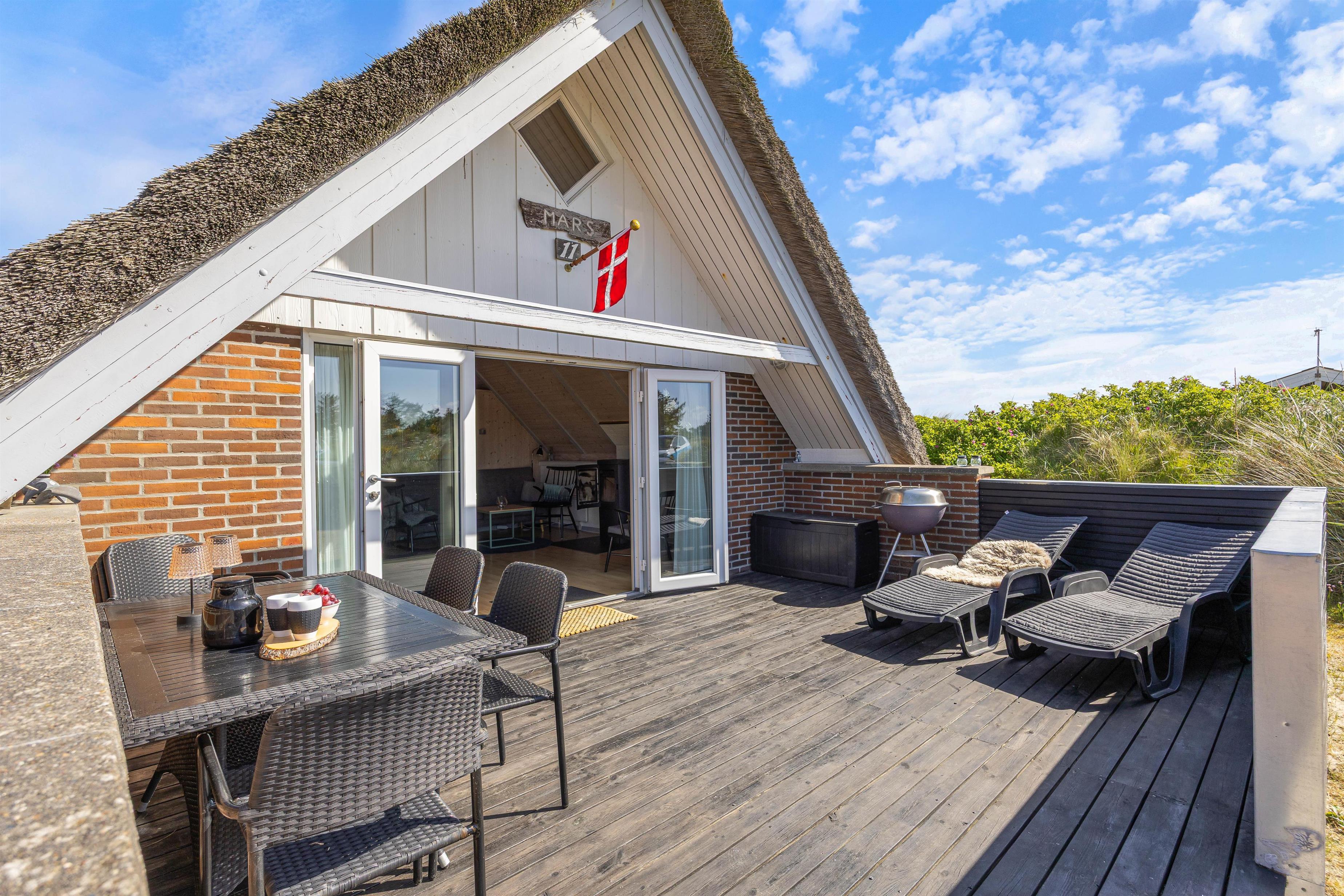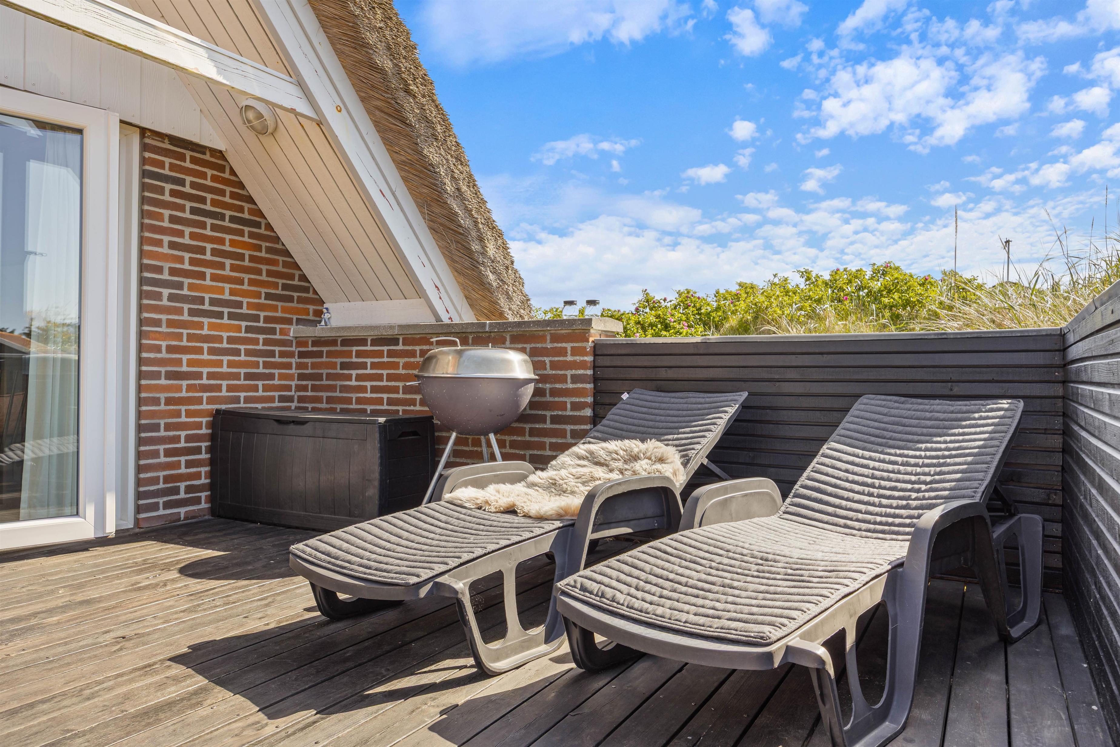 The living room opens directly onto the beautiful sheltered terrace where you can enjoy sunny days. Garden furniture and sun loungers are provided - perfect for reading an engaging book. In the evening, prepare delicious meals on the barbecue.