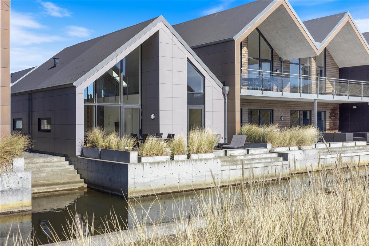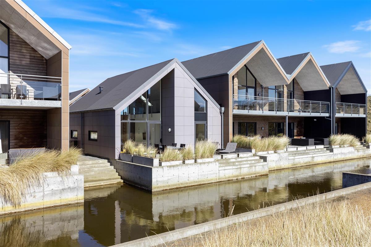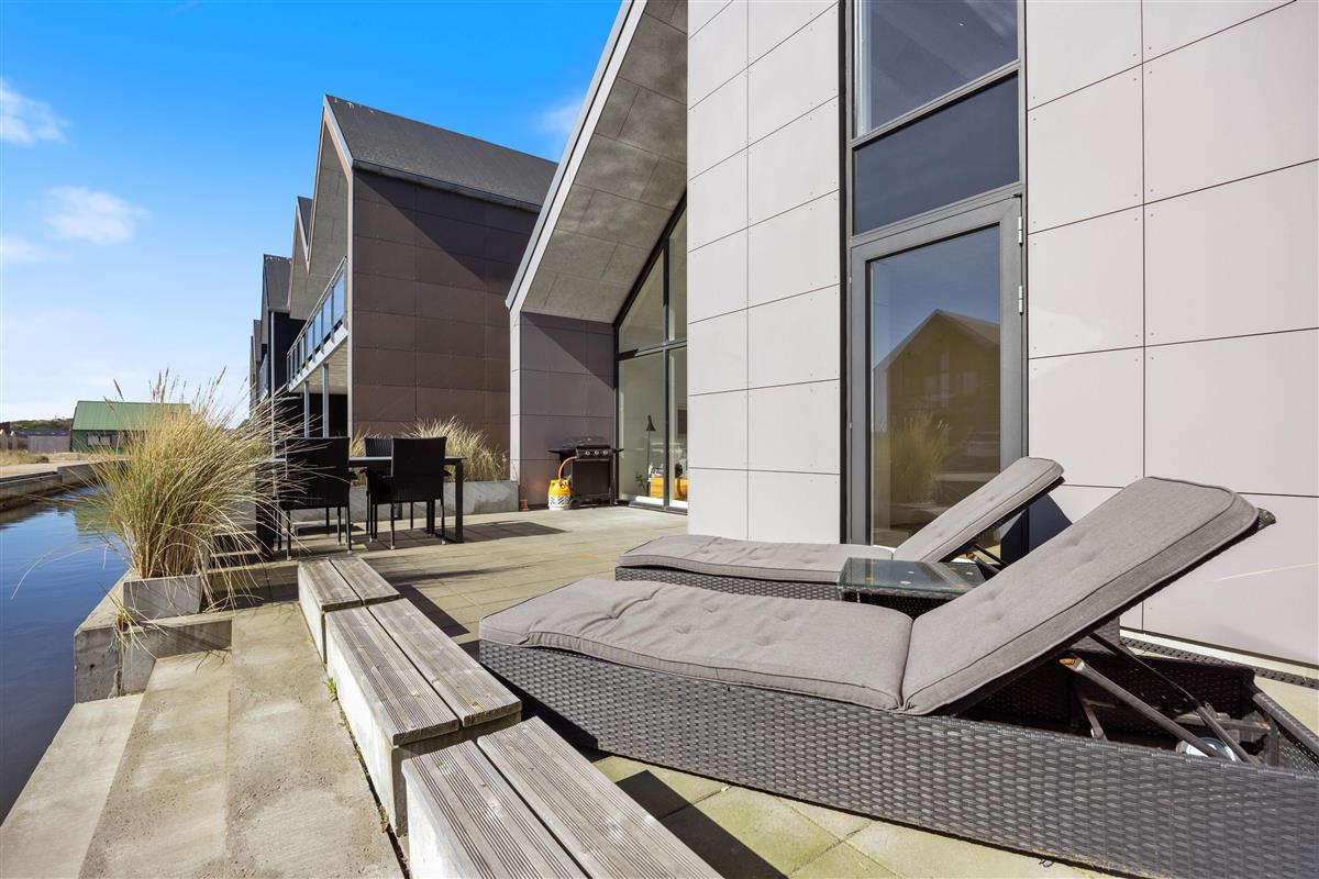 The large, partially covered terrace faces south and offers direct access to the beautiful canals that run between the houses. Do bring your kayaks or paddleboards - follow the steps down and enjoy fun times on the water. Afterwards, you can relax on the sun loungers while enjoying the aroma of freshly grilled food. On the north side of the house, there's a parking space, and if you're travelling by electric car, simply bring your charging cable to use the charging point at the holiday home.