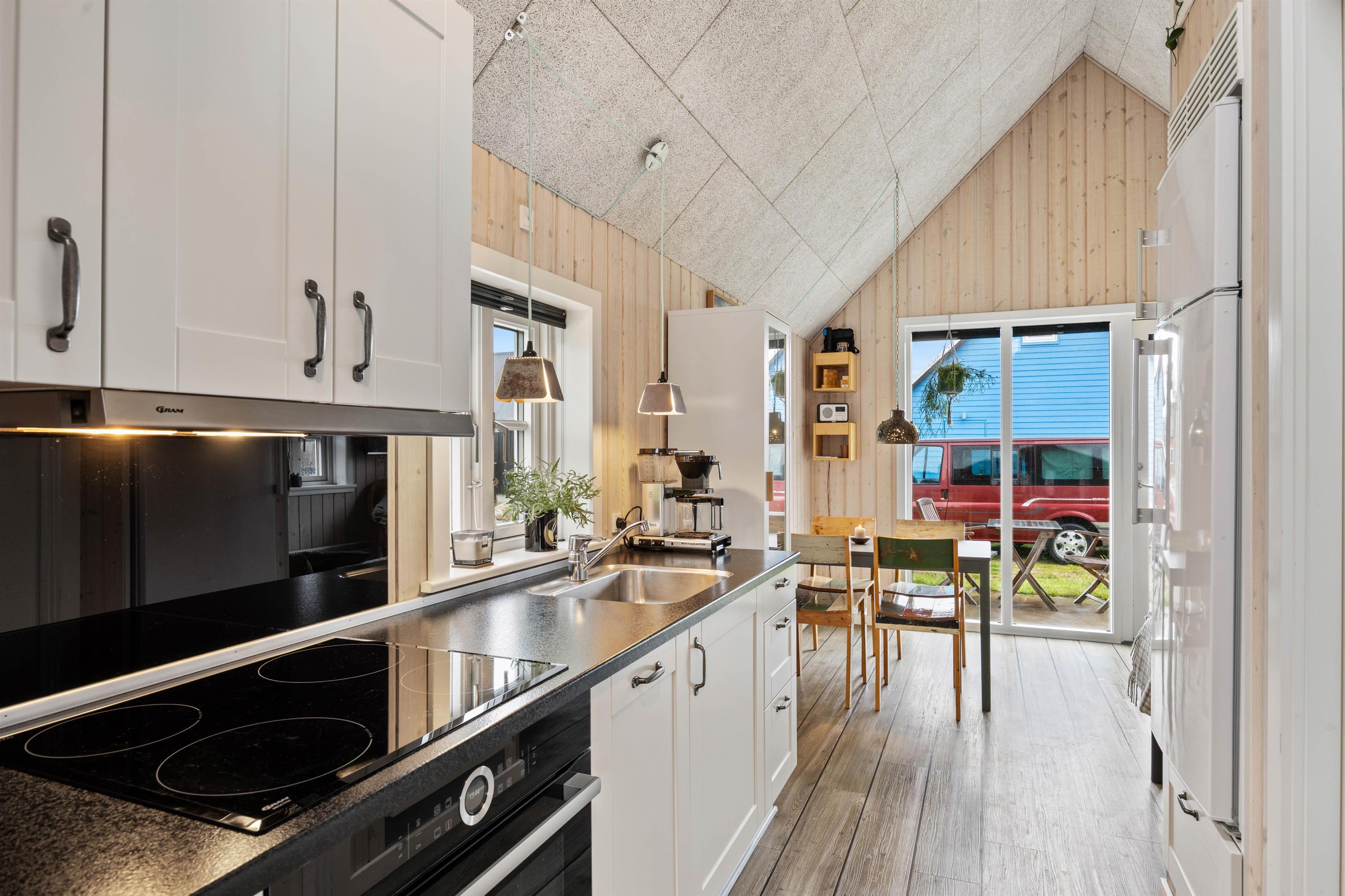 Modern holiday home in authentic architectural style, centrally located in beautiful natural surroundings, close to the charming fjord harbour "Æ Tyskerhavn". Thanks to its central location, you'll find shopping facilities, excellent restaurants and fishing spots nearby.