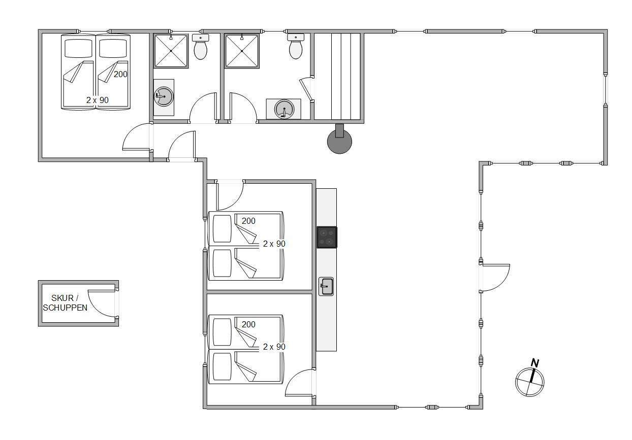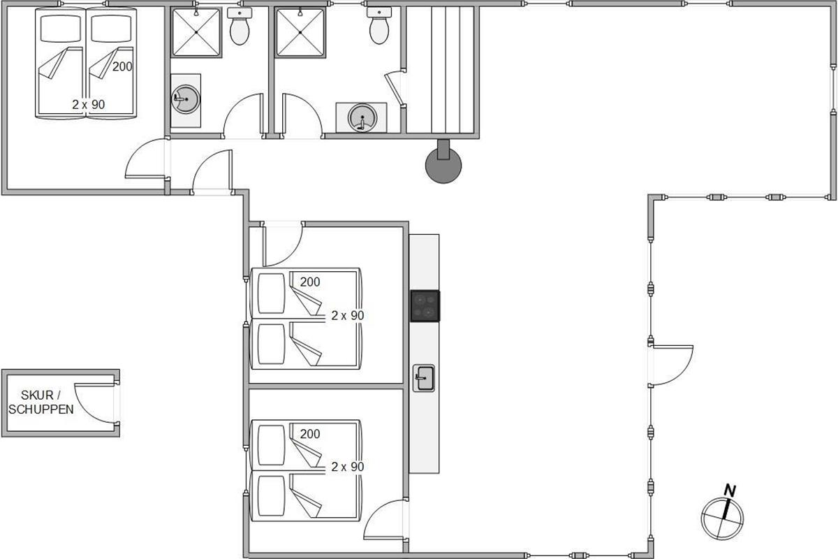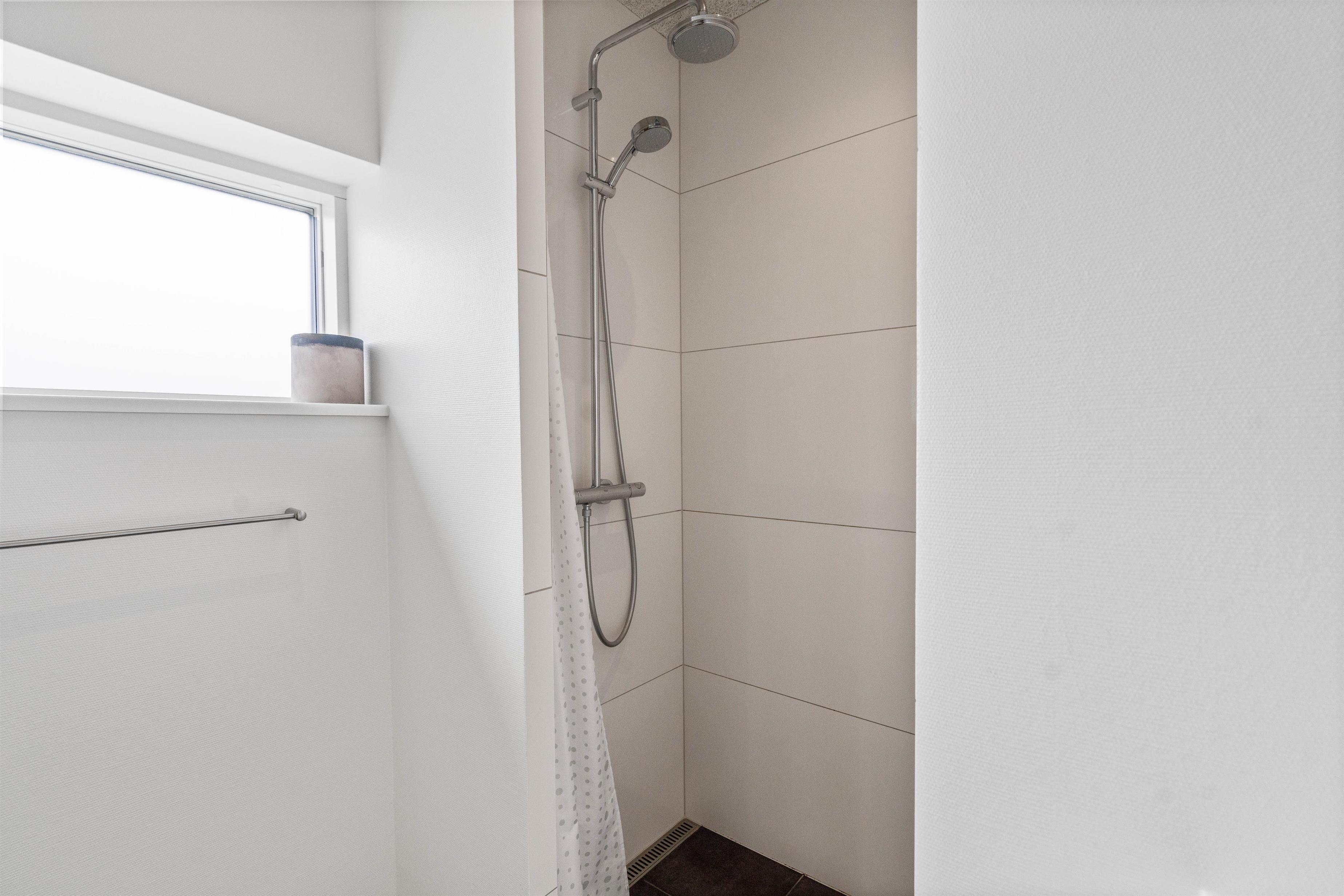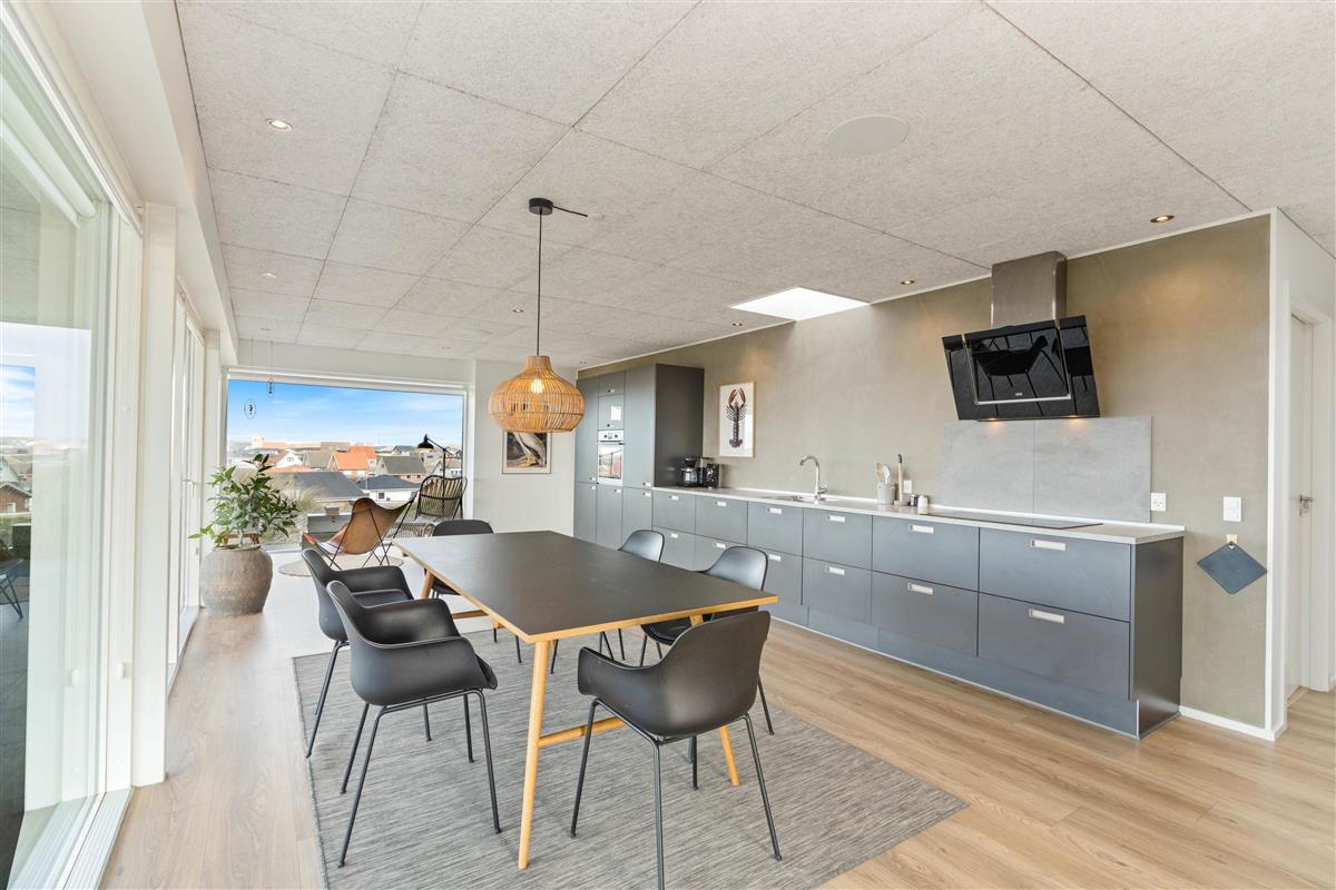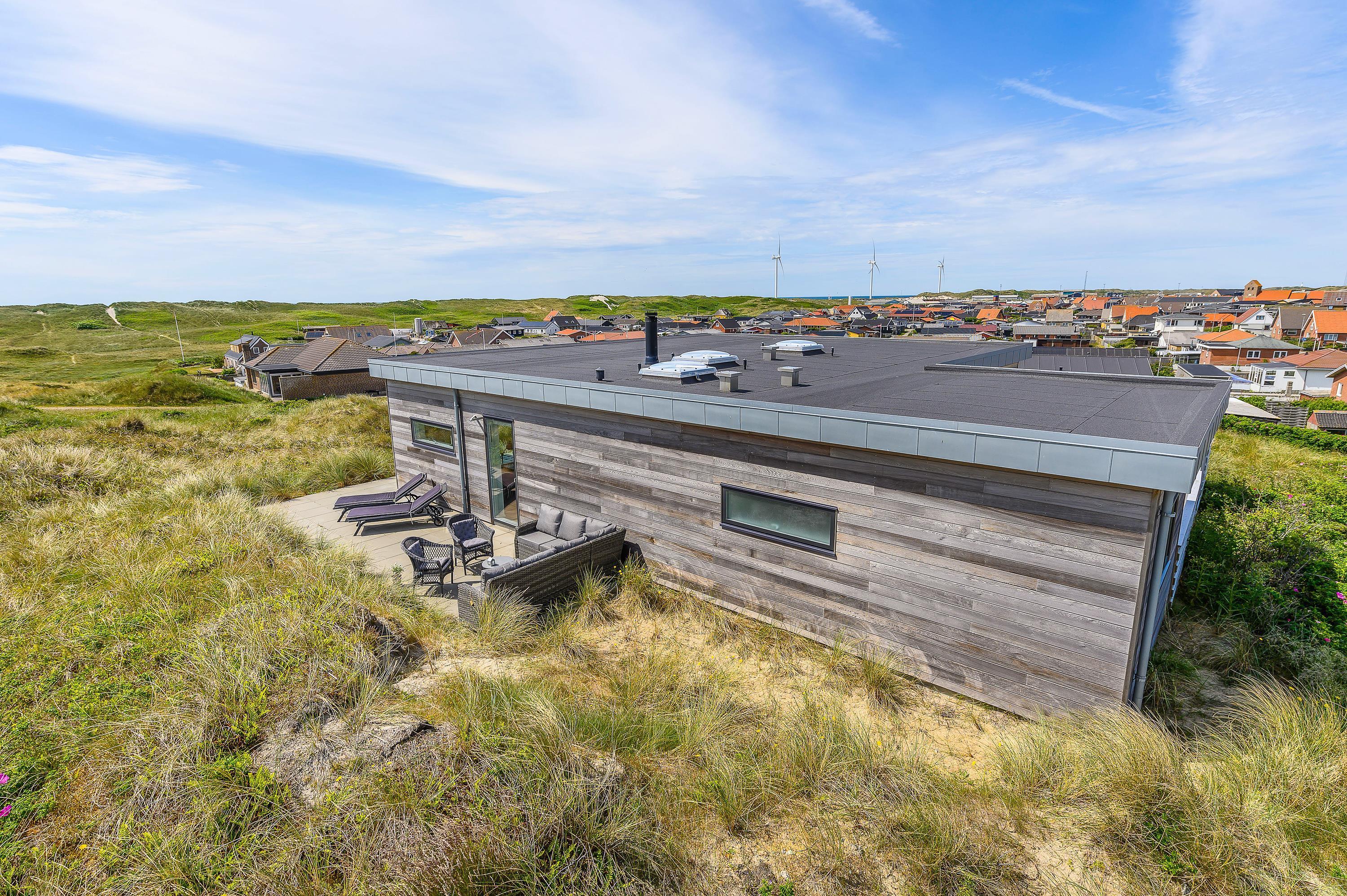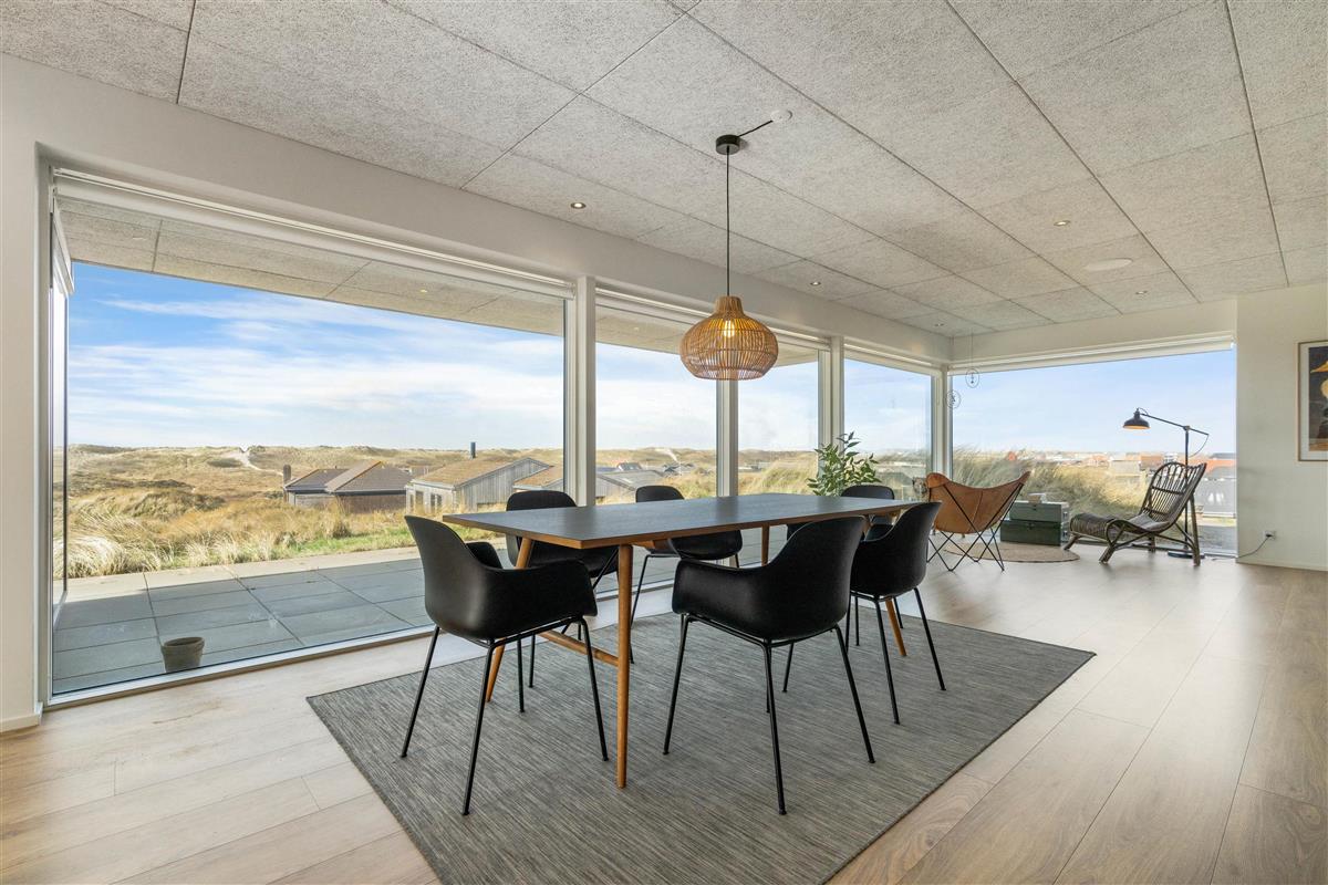 Start your day with a delicious breakfast on the east terrace, watching the sun rise over the fjord. In the evening, observe the sunset over the dunes and sea from the south-west terrace. The east terrace is enclosed and includes a storage room. The second terrace is spacious, partially covered and faces the sea.