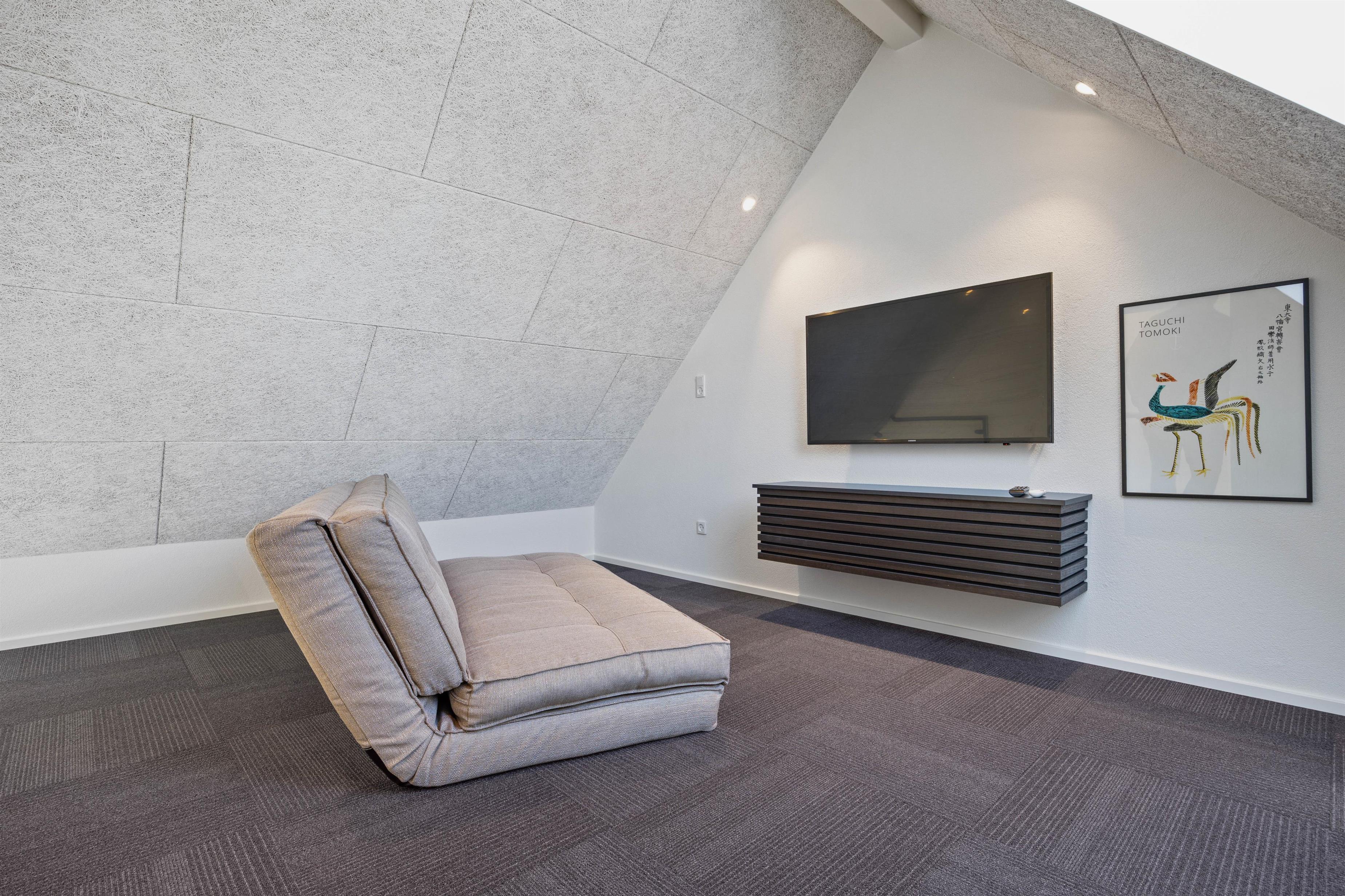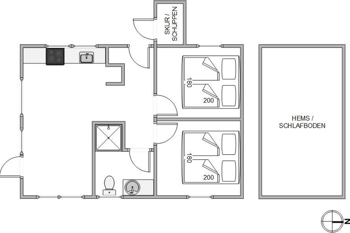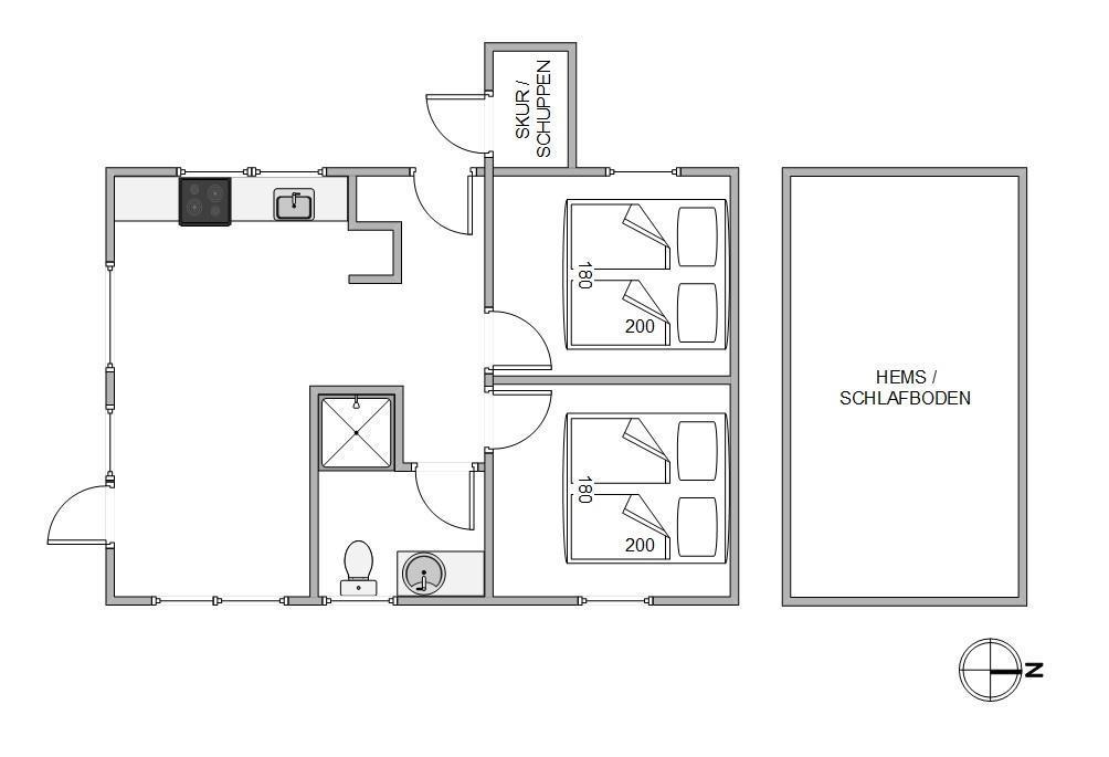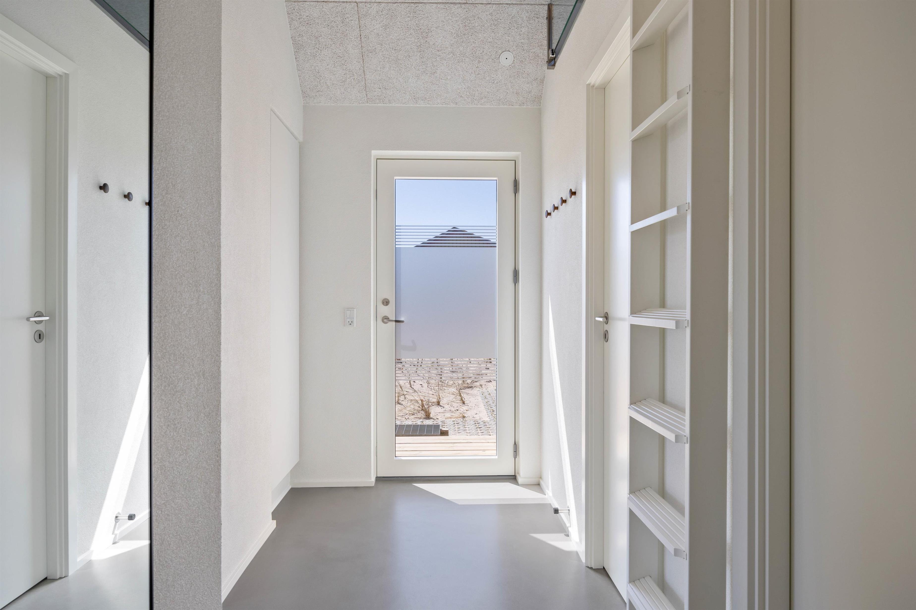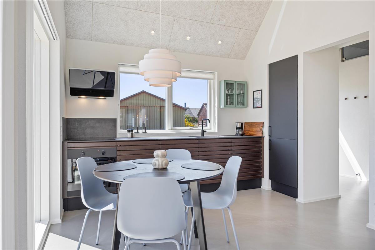 This modern holiday home is bright and inviting, furnished with comfortable furniture. The living area with open-plan kitchen is perfect for cooking together and having fun. Large windows offer views over Langsand, which you can enjoy from the comfortable sofa and dining table. In the evening, why not settle in for a film marathon? Thanks to Chromecast, you can stream various films directly to the TV.