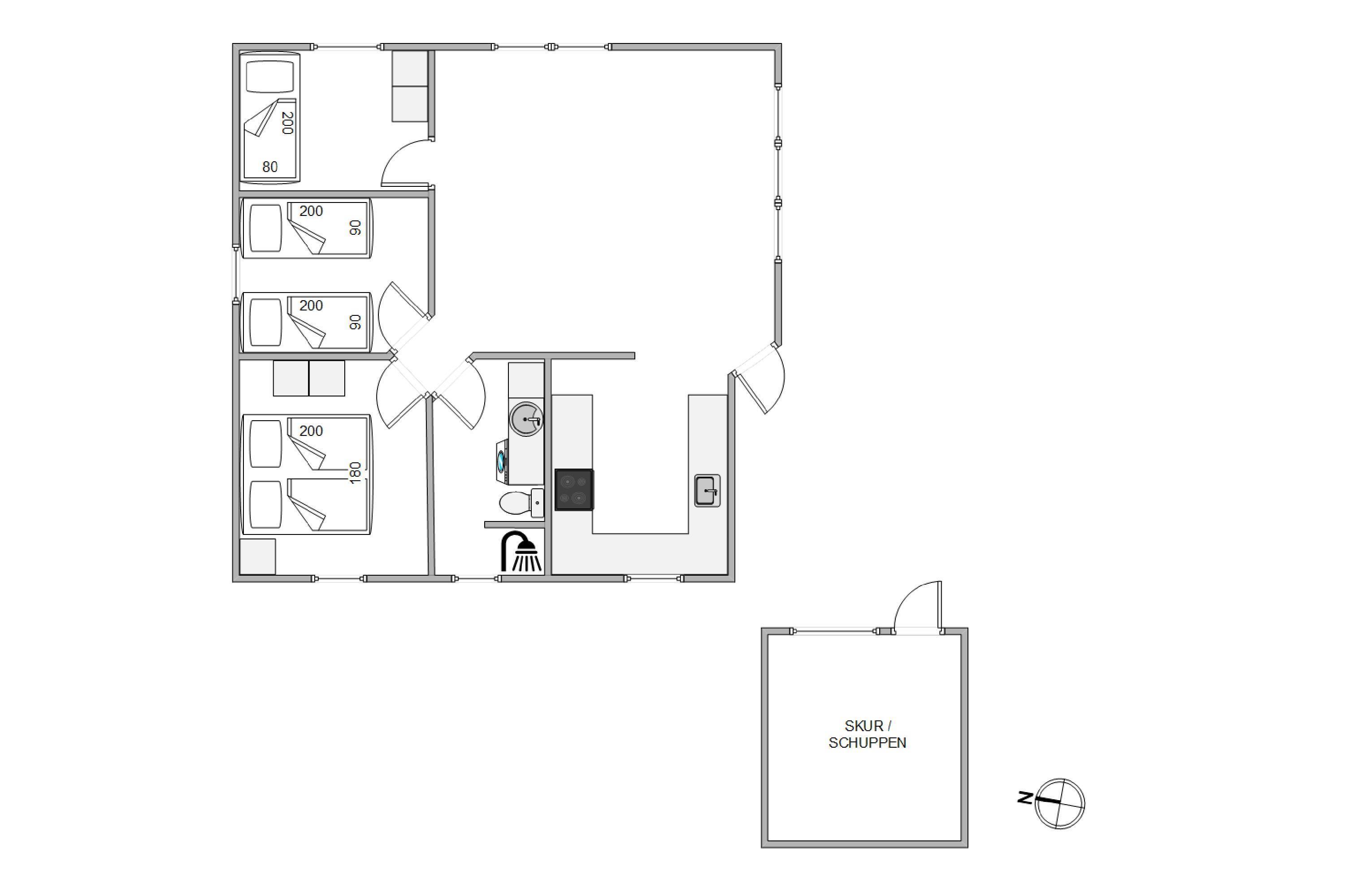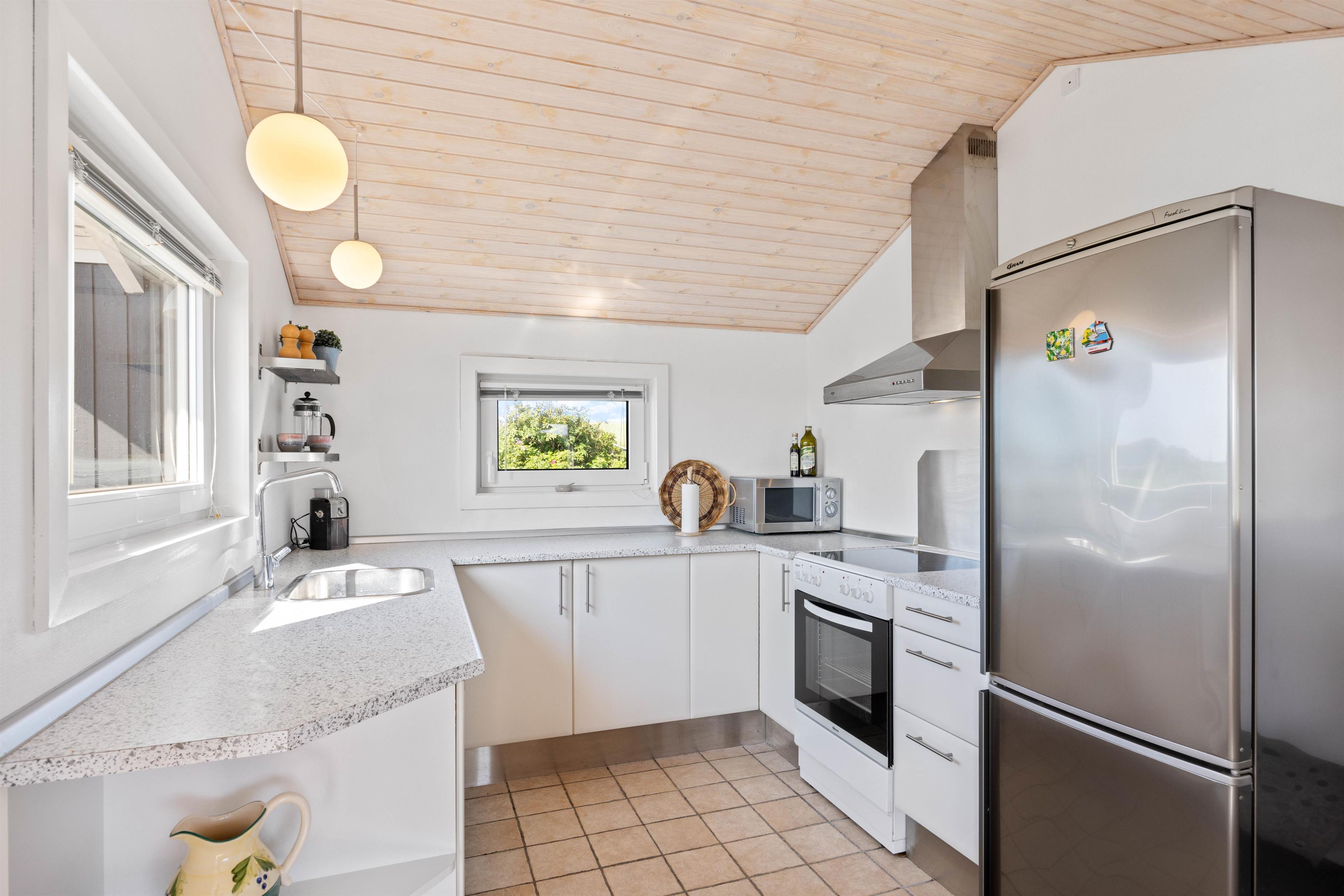 The holiday home features a washing machine in the bathroom, allowing you to conveniently do laundry during your stay. The open-plan, well-equipped kitchen includes a fridge, microwave, oven, and an 80-litre freezer. The freezer is perfect for storing fresh food or ice cream, and ideal for keeping the day's catch if you go fishing.