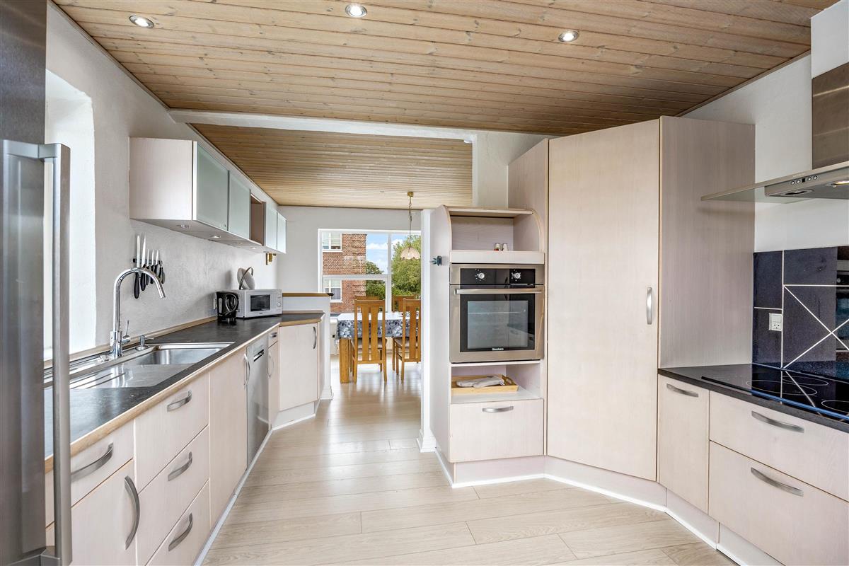 The open-plan kitchen is spacious and practically equipped for preparing your favourite meals. A dishwasher is provided to help with household tasks.