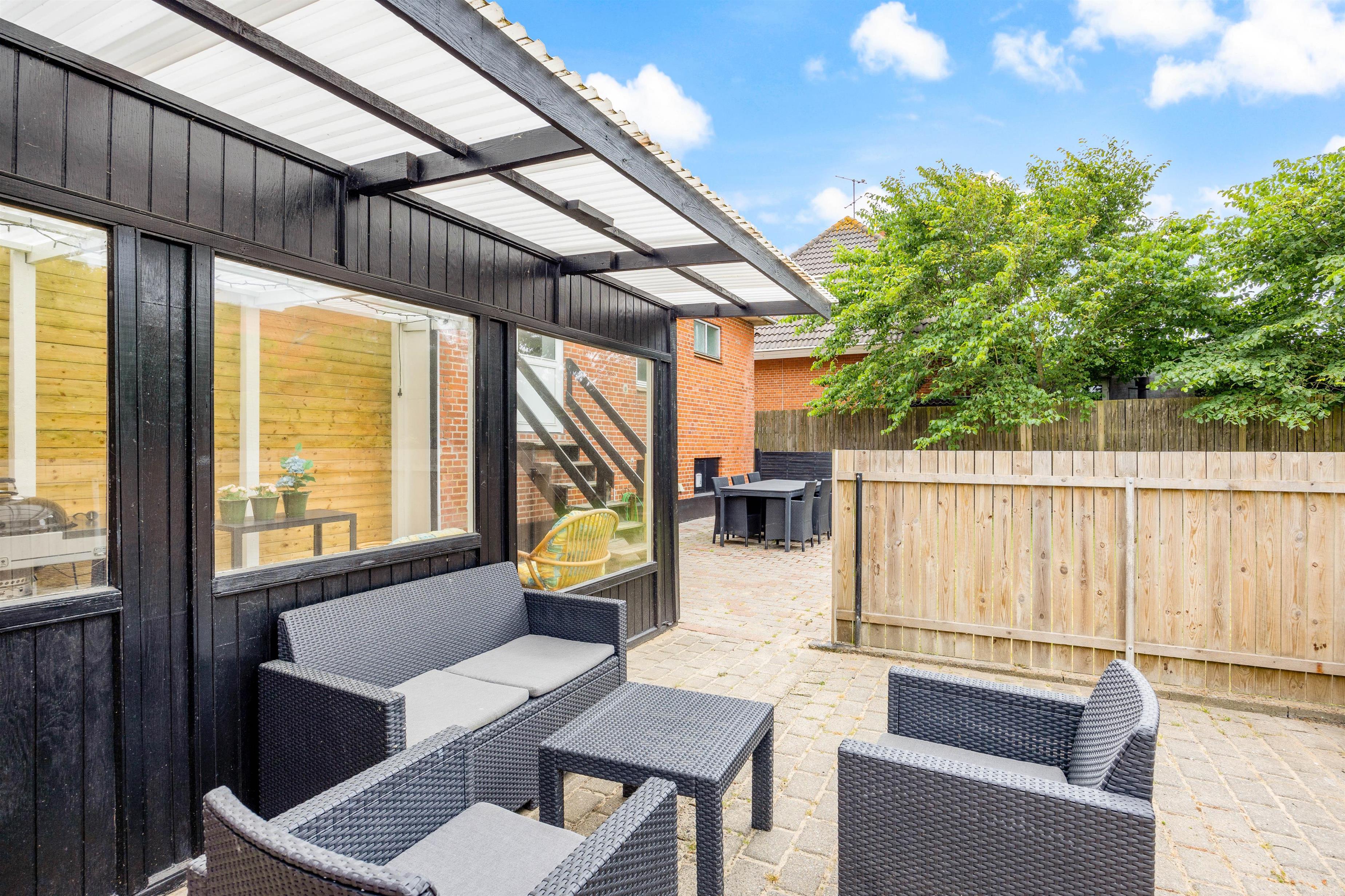 Your cosy holiday home features a lovely, partially screened and covered terrace where you can relax during warm summer days. The fenced grounds are ideal for your dog to run around while you enjoy sunbathing on the terrace.