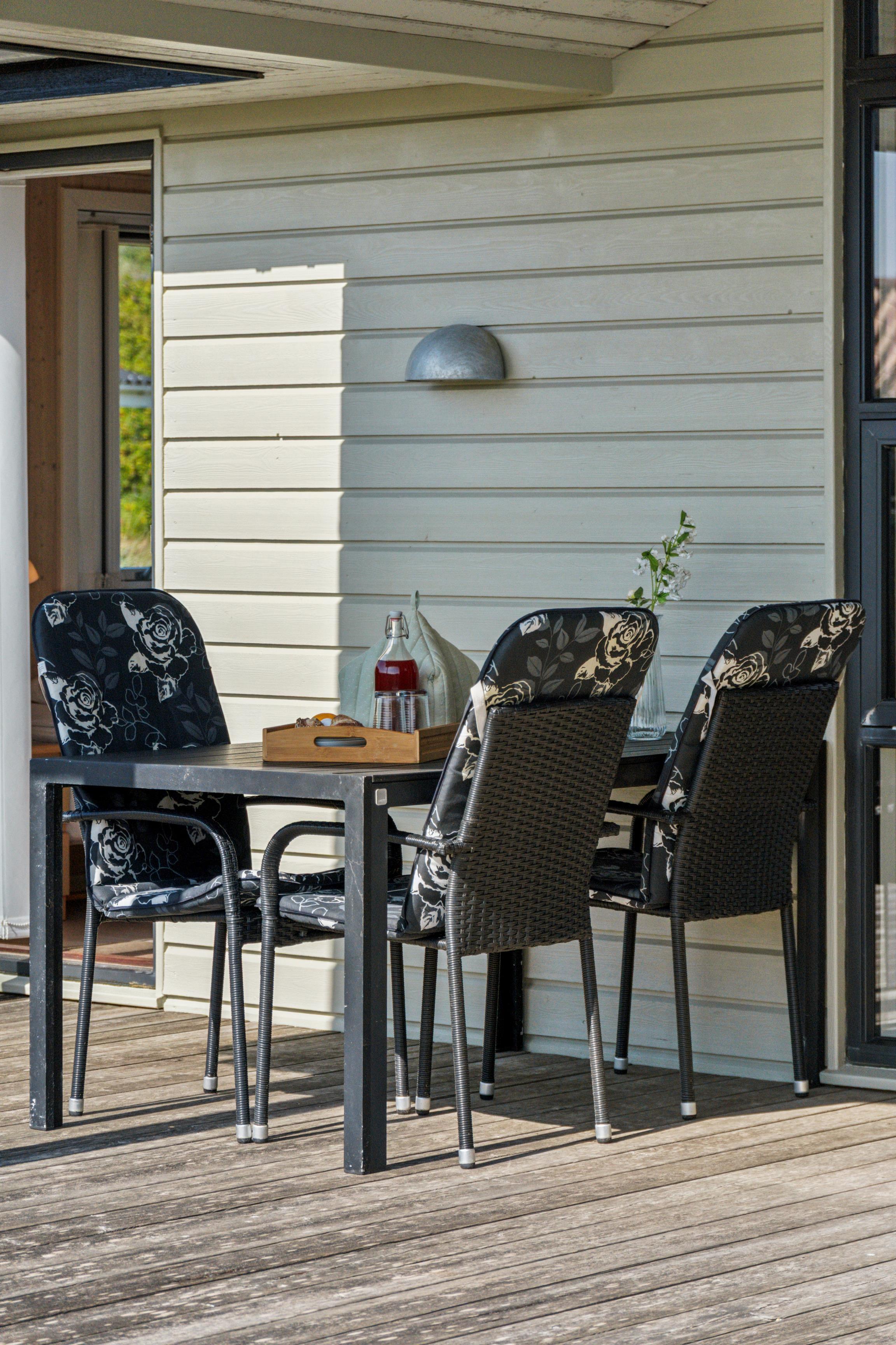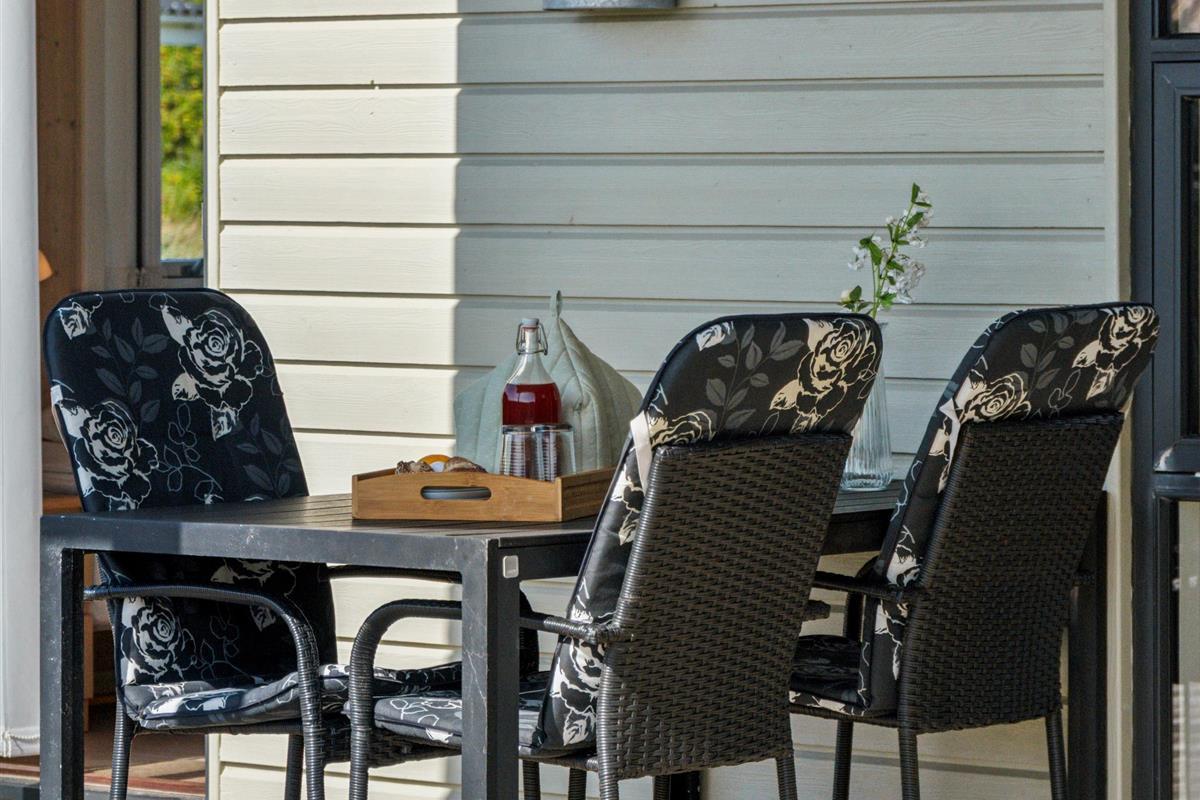 The holiday home accommodates up to six people, divided between three bedrooms with double beds. There are two elegant bathrooms, both with underfloor heating, and a bright living room with wooden floors, heat pump, electric heating, and a cozy wood-burning stove. For families with children, a high chair is also available. The kitchen is fully equipped with everything you need for cooking during your stay, including a fridge/freezer, oven, stovetop, microwave, coffee machine, electric kettle, and dishwasher. A washing machine is also provided, making everyday chores easy to handle during your holiday.