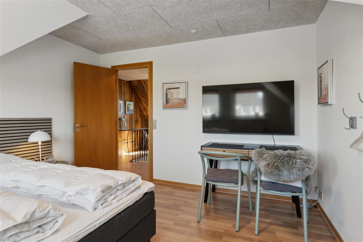 Upstairs, you'll find four bedrooms – all with double beds (140x200 cm) – as well as an additional bathroom and a private sauna, perfect after a long day at the sea or fjord.