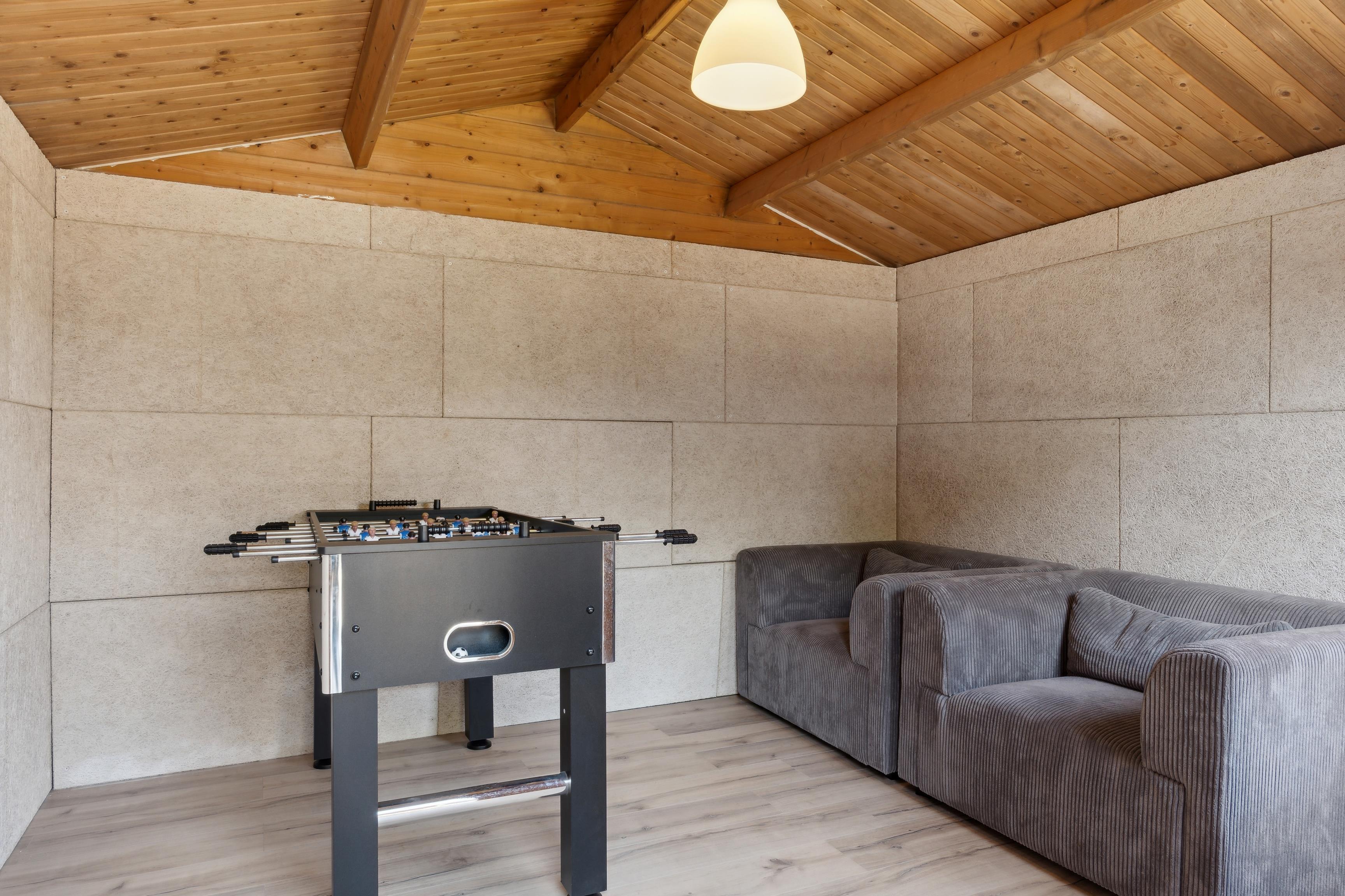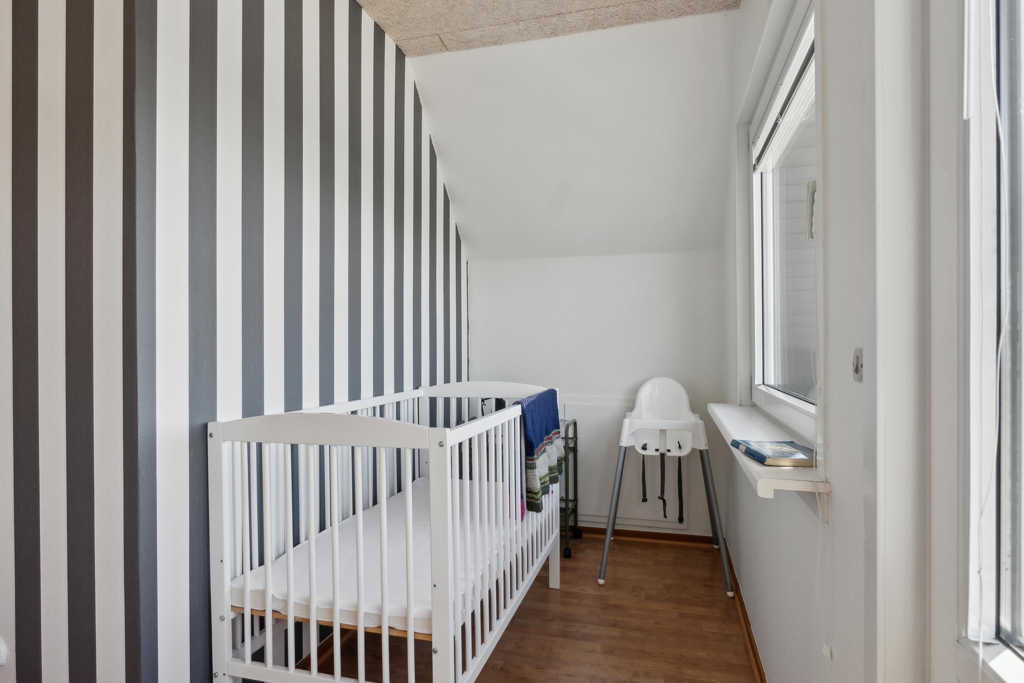 The bright and spacious living room offers space for both relaxation and social time. Here, you can enjoy meals together, watch movies, play games, or simply unwind. The adjoining dining area and kitchen are fully equipped with everything you need – including a dishwasher, oven, microwave, and large freezer. From the kitchen, there is access to a practical utility room with a washing machine and dryer.