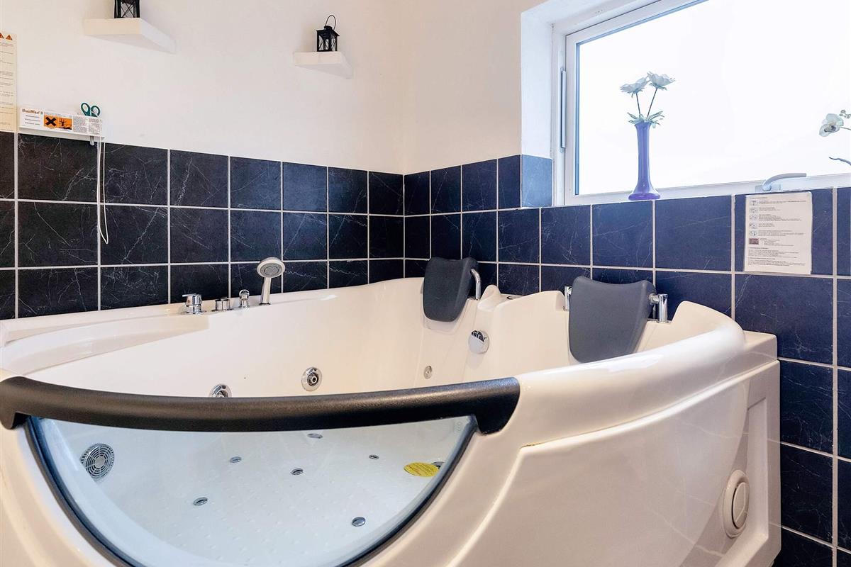 Das Ferienhaus verfügt über zwei Badezimmer, beide mit WC, Waschbecken, Dusche und Fußbodenheizung. Dazu ein Whirlpool in einem der Badezimmer.