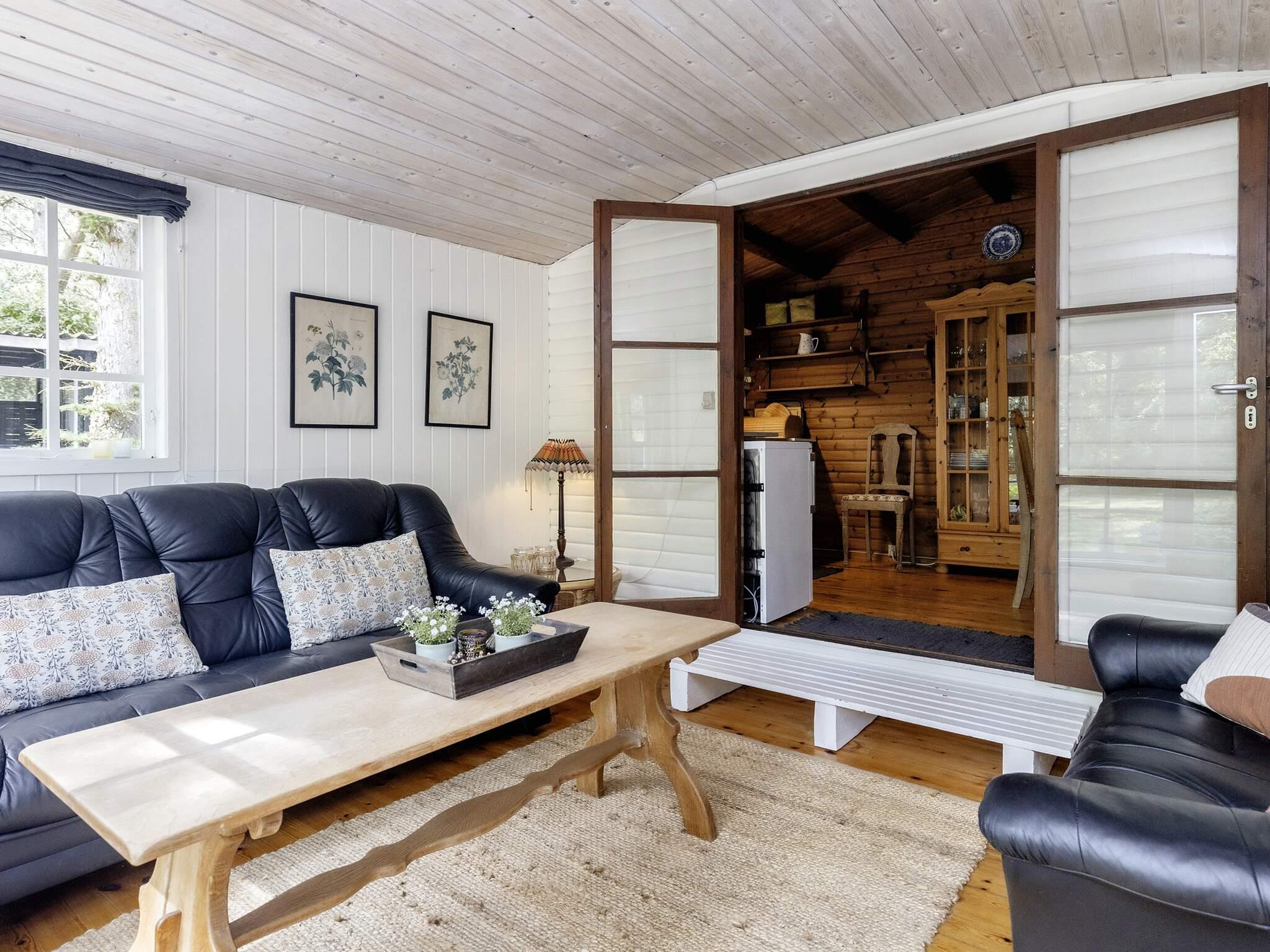 Das Wohnzimmer verfügt über große Fenster mit herrlichem Blick auf die umliegende Natur und die heimische Tierwelt. Hier können Sie Rehe, Fasane, Hasen und eine große Vogelvielfalt beobachten – ein idealer Rückzugsort für Naturliebhaber.