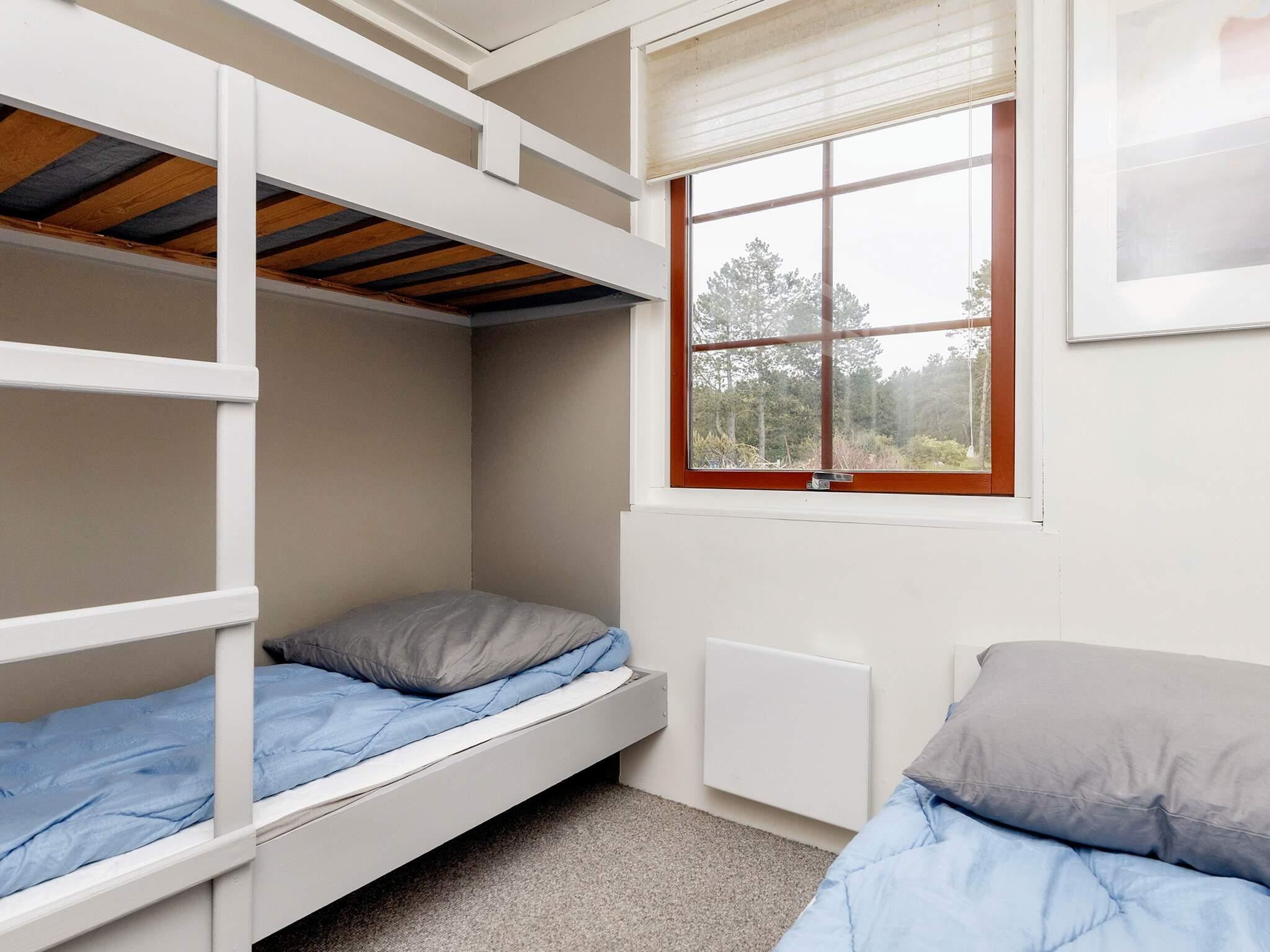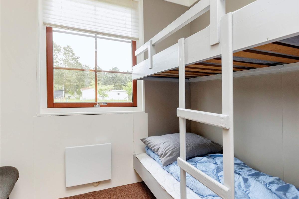 Die Schlafplätze sind verteilt auf ein Zimmer mit Doppelbett, zweites Zimmer mit zwei Kojen im Etagenbett sowie ein drittes Zimmer mit Einzelbett. Das kleine Badezimmer des Hauses ist mit Toilette, Waschbecken und Dusche ausgestattet. Der Wohnraum wird mit einer Luft/Luft-Wärmepumpe und die Zimmer mit Elektroheizkörpern beheizt.