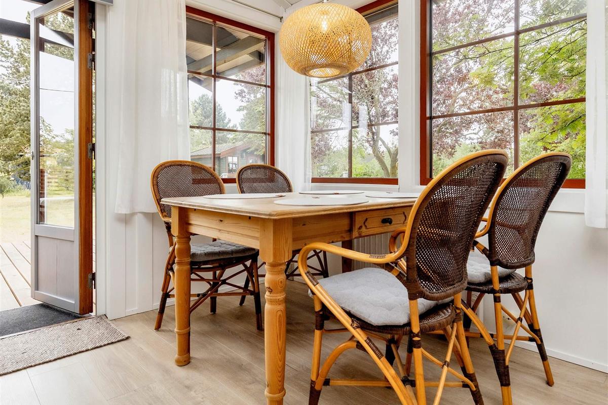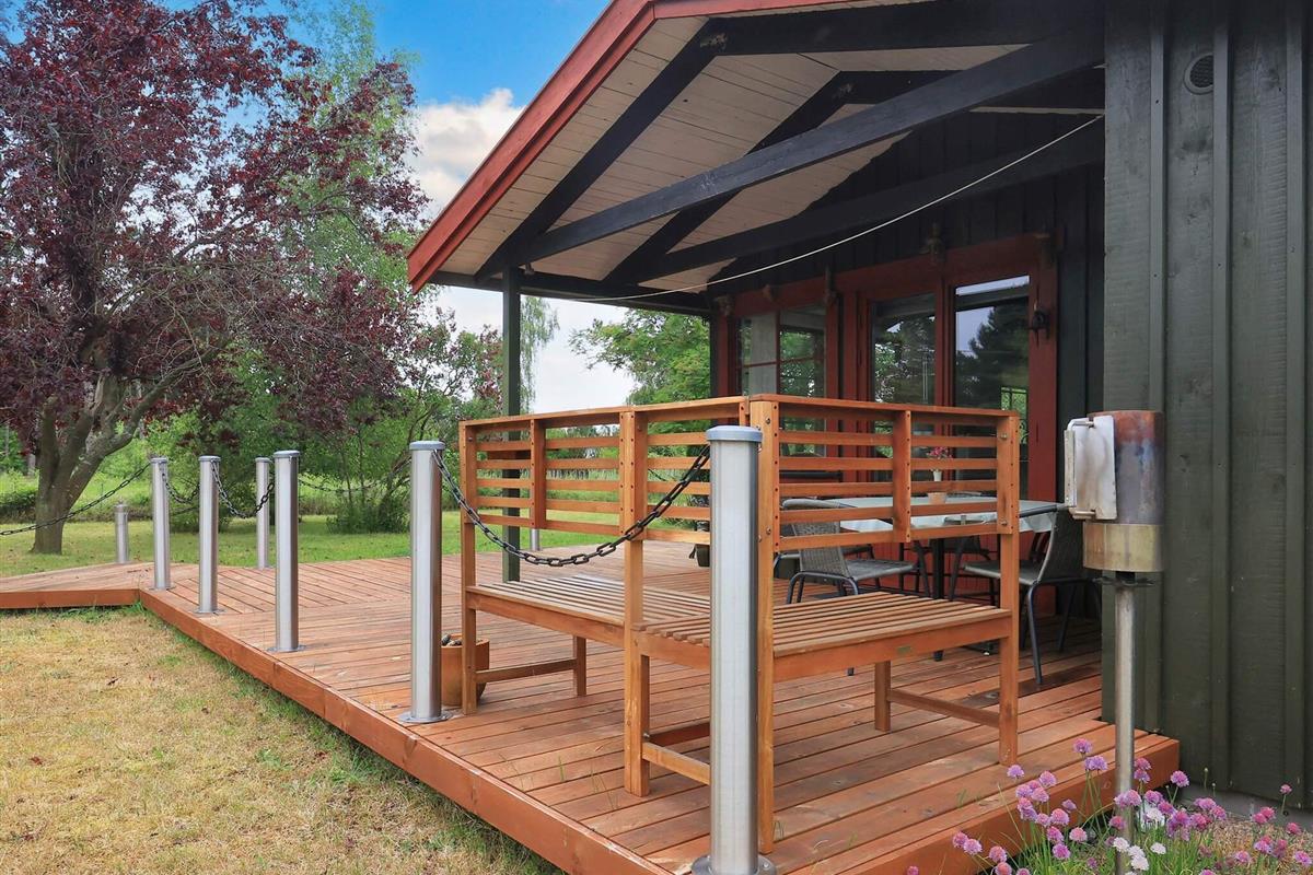 Nach einem langen Tag unterwegs auf Lolland und Falster oder am Strand, können Sie den Abend auf der halb überdachten Terrasse nach Süden genießen, auf der es Gartenmöbel und einen Holzkohlegrill gibt.