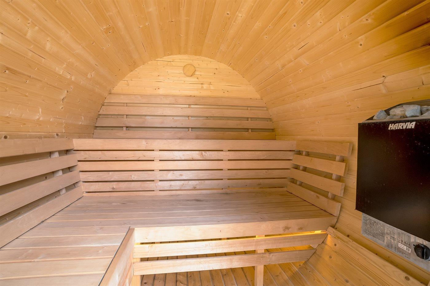 Het binnenbubbelbad (vulwater) biedt ontspanning aan 2 personen.